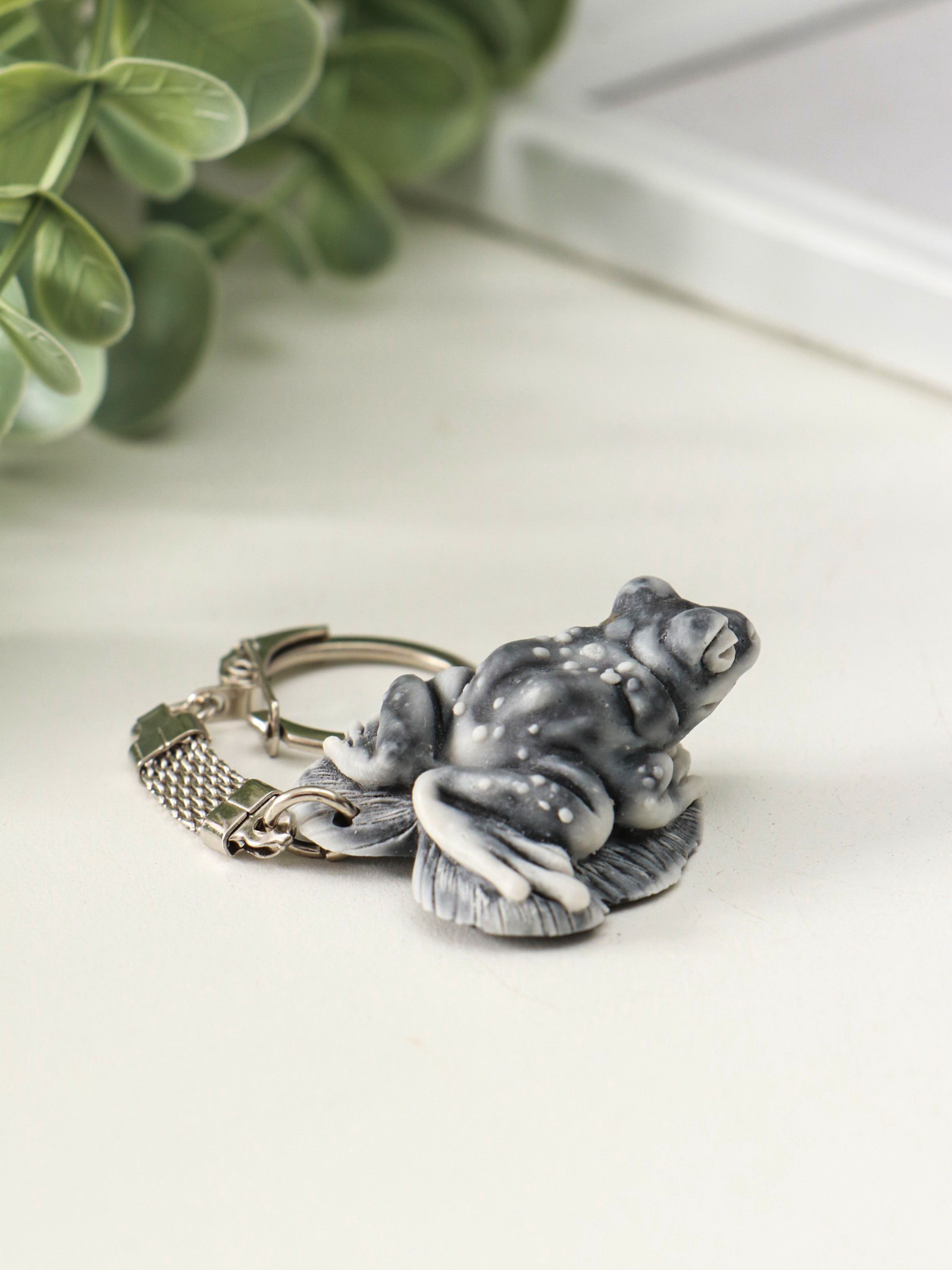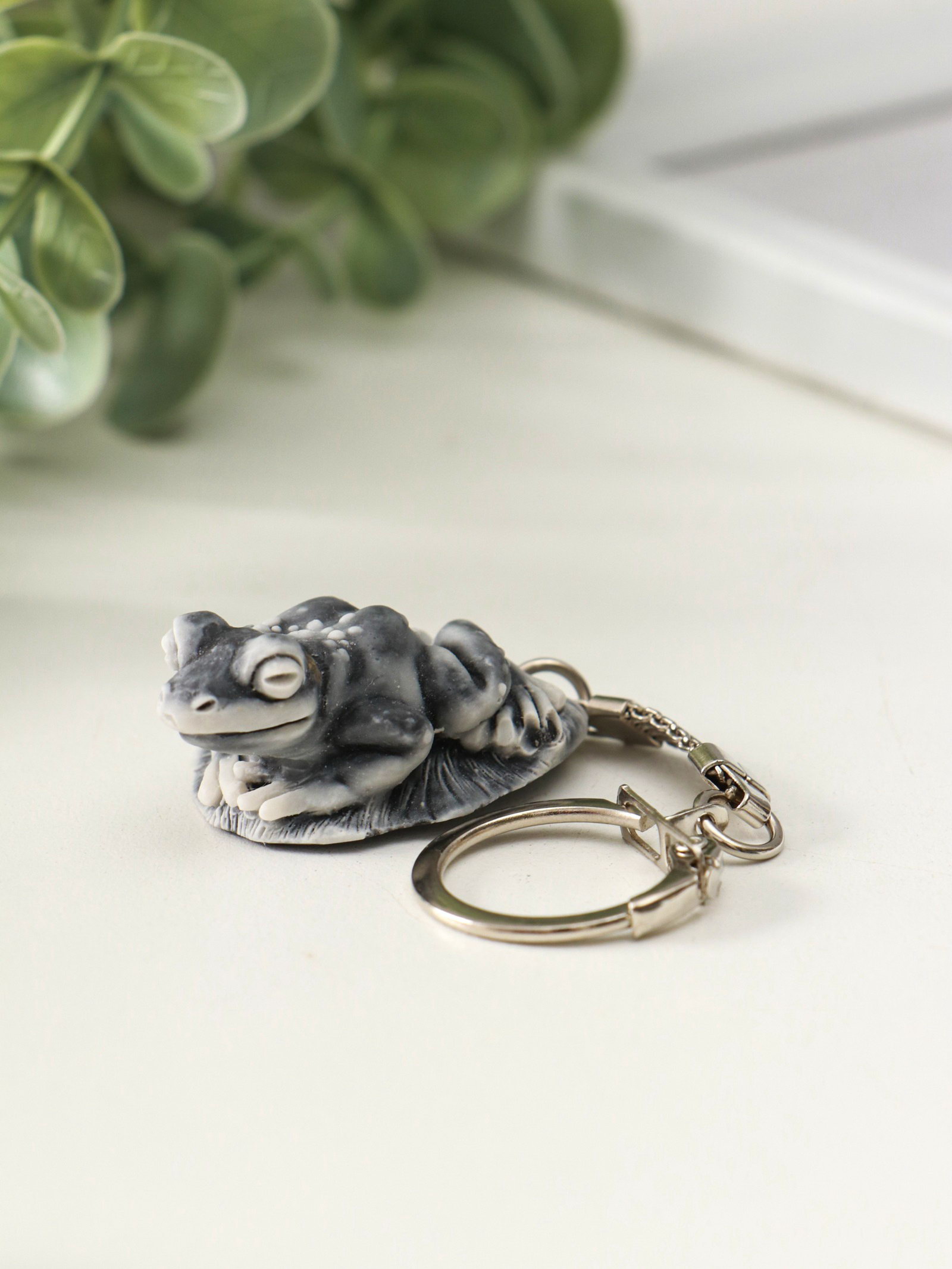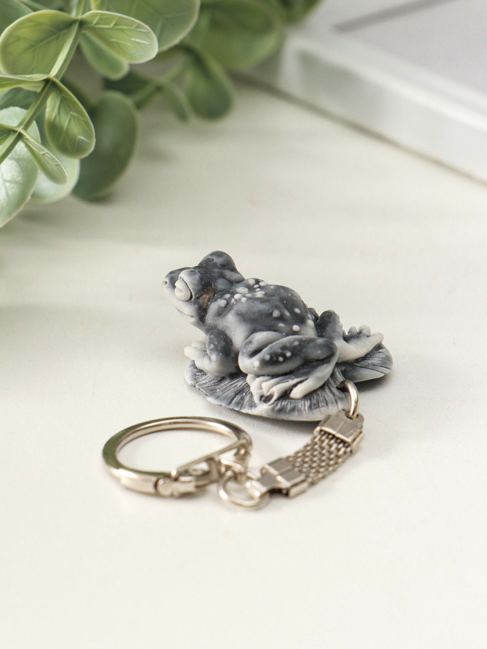 Брелок для ключей на кольце "Лягушка на листе маленькая", 2 см, Россия