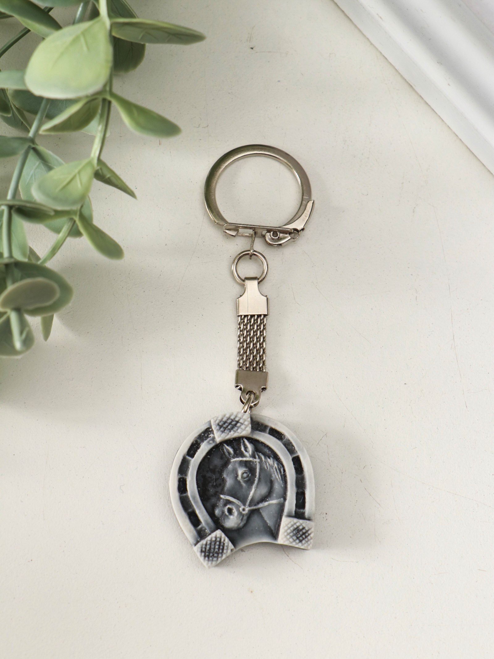 Брелок для ключей на кольце "Подкова с головой лошади", 3 см, Россия