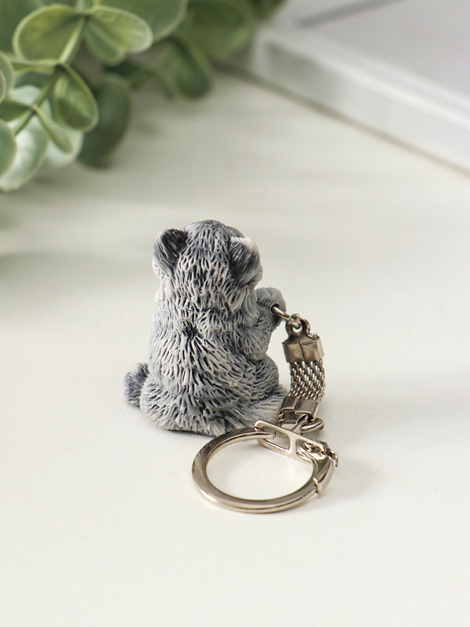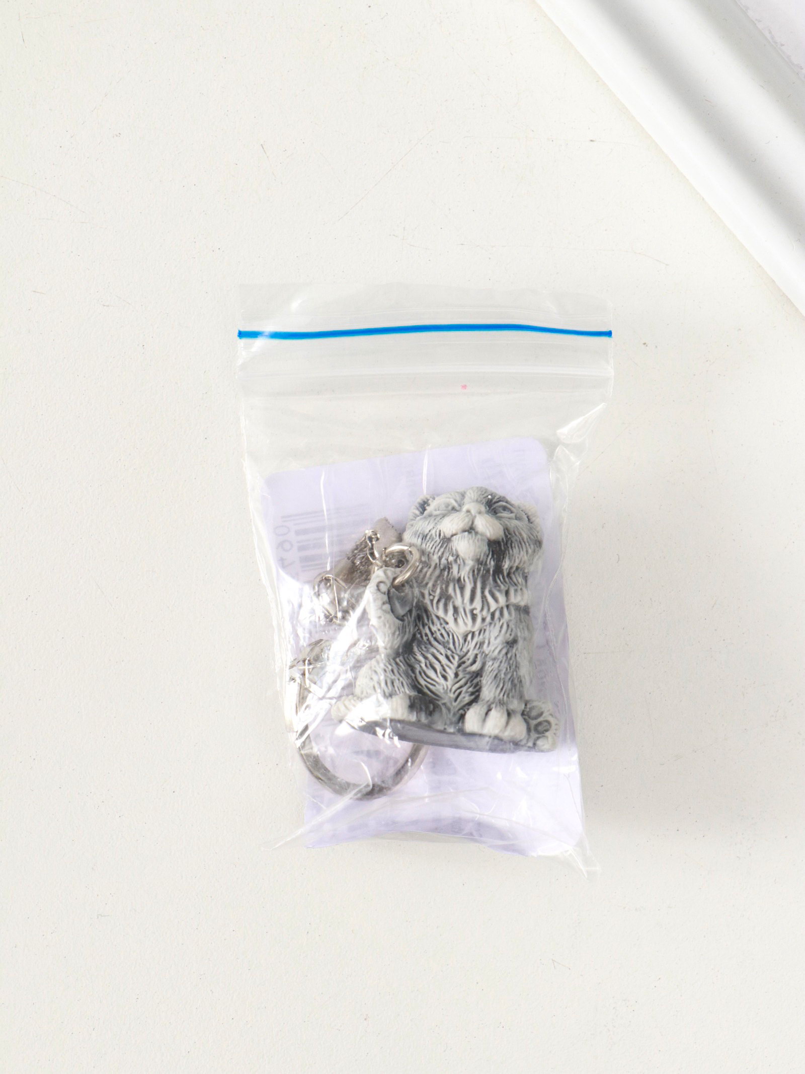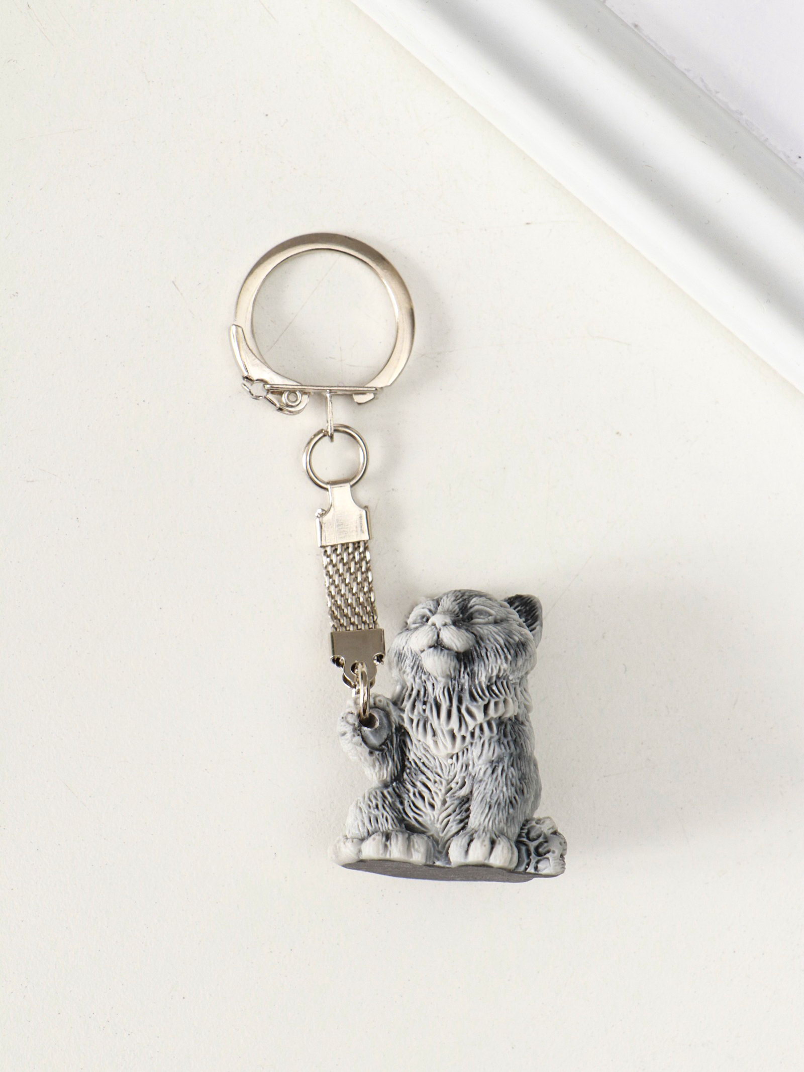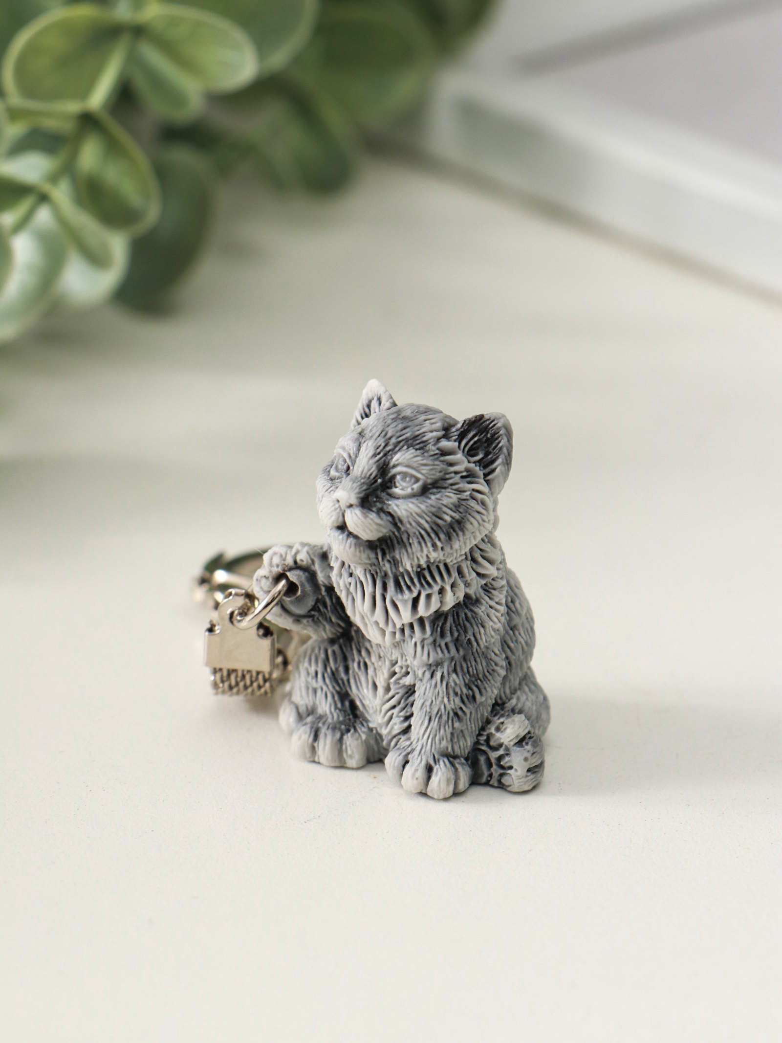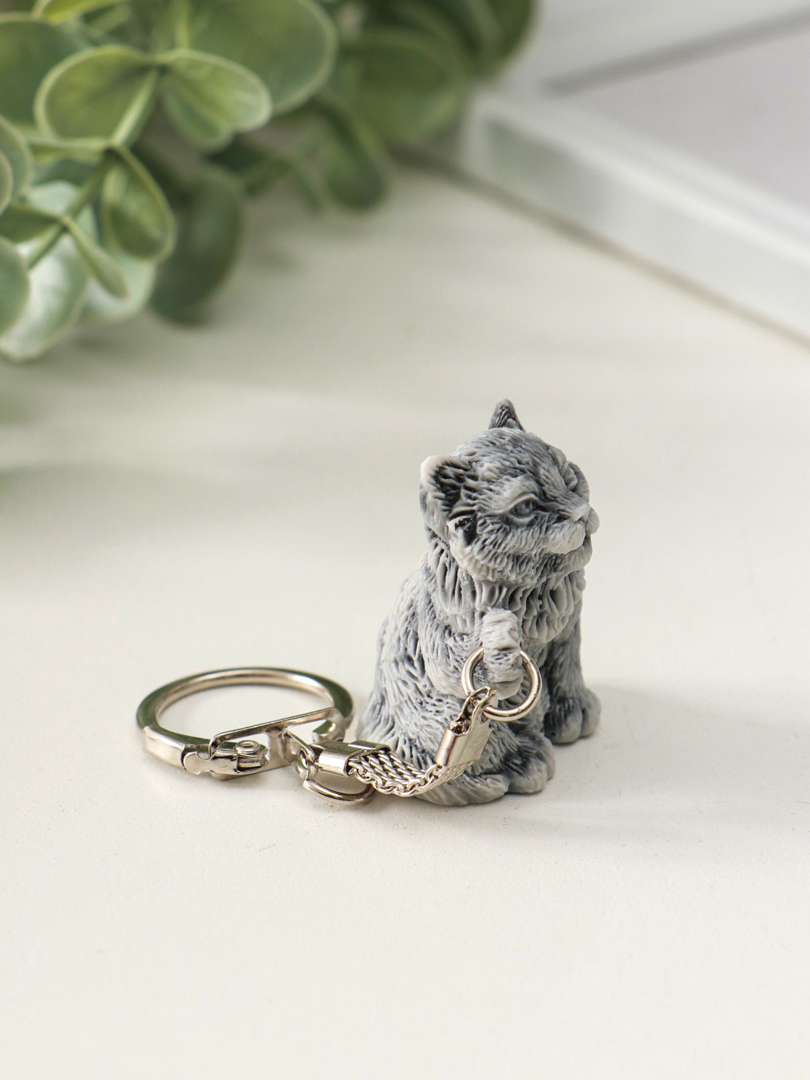 Брелок для ключей на кольце "Котенок с поднятой лапкой маленький", 3.5 см, Сувениры из мраморной крошки, Россия