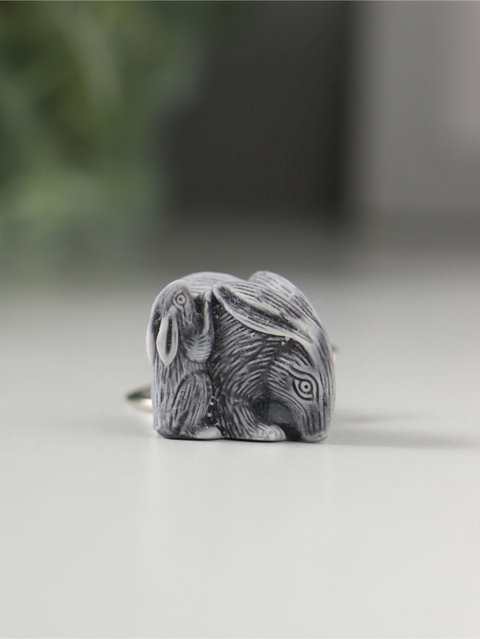 Брелок для ключей на кольце "Кролики", 2.3 см, Сувениры из мраморной крошки, Россия