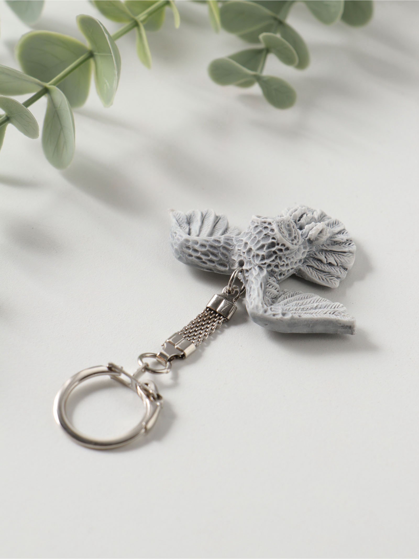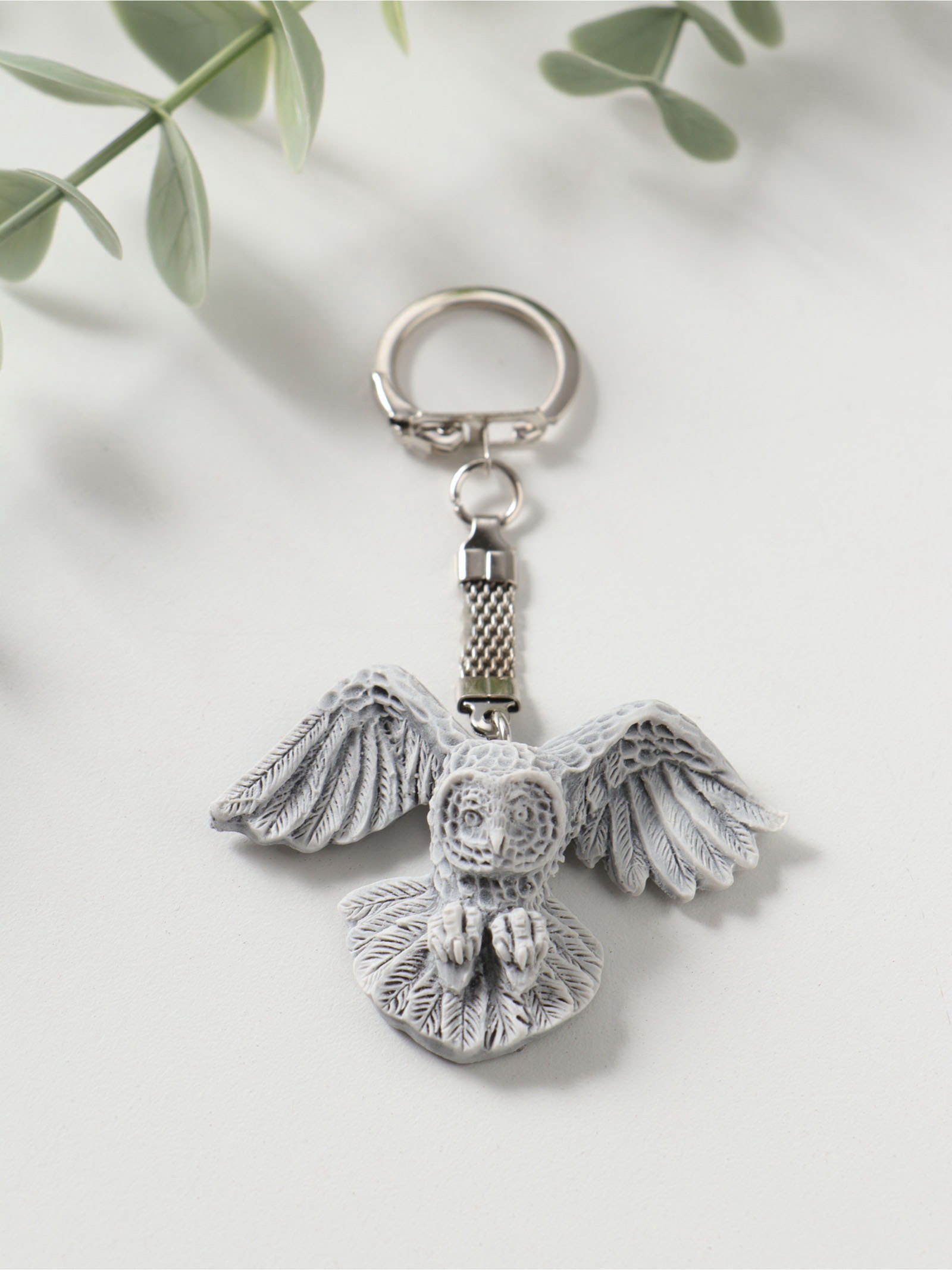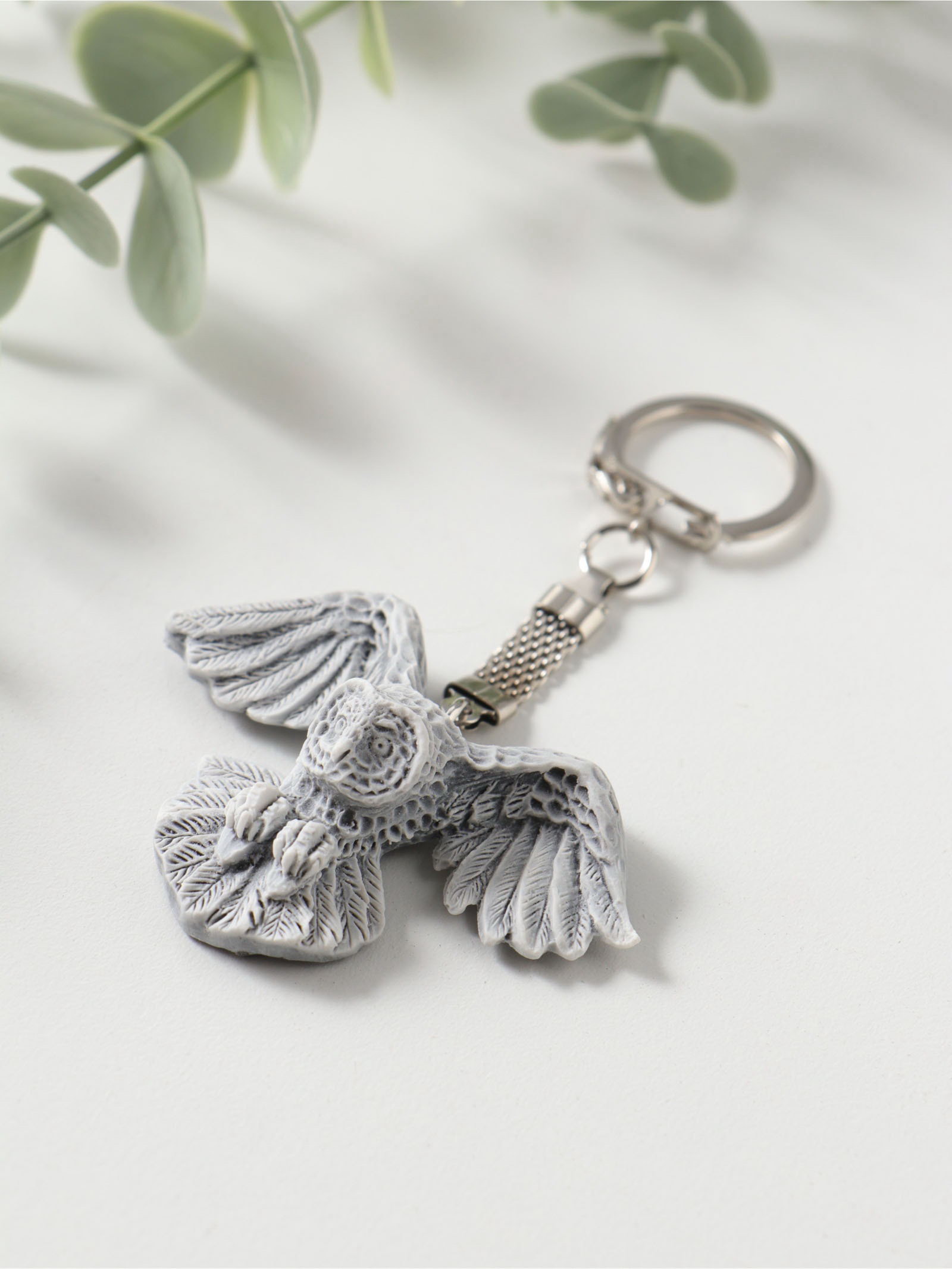 Брелок для ключей на кольце "Сова полярная с расправленными крыльями", барельеф, 4.1 см, Сувениры из мраморной крошки, Россия