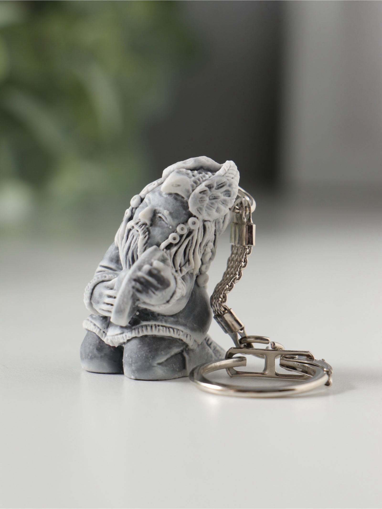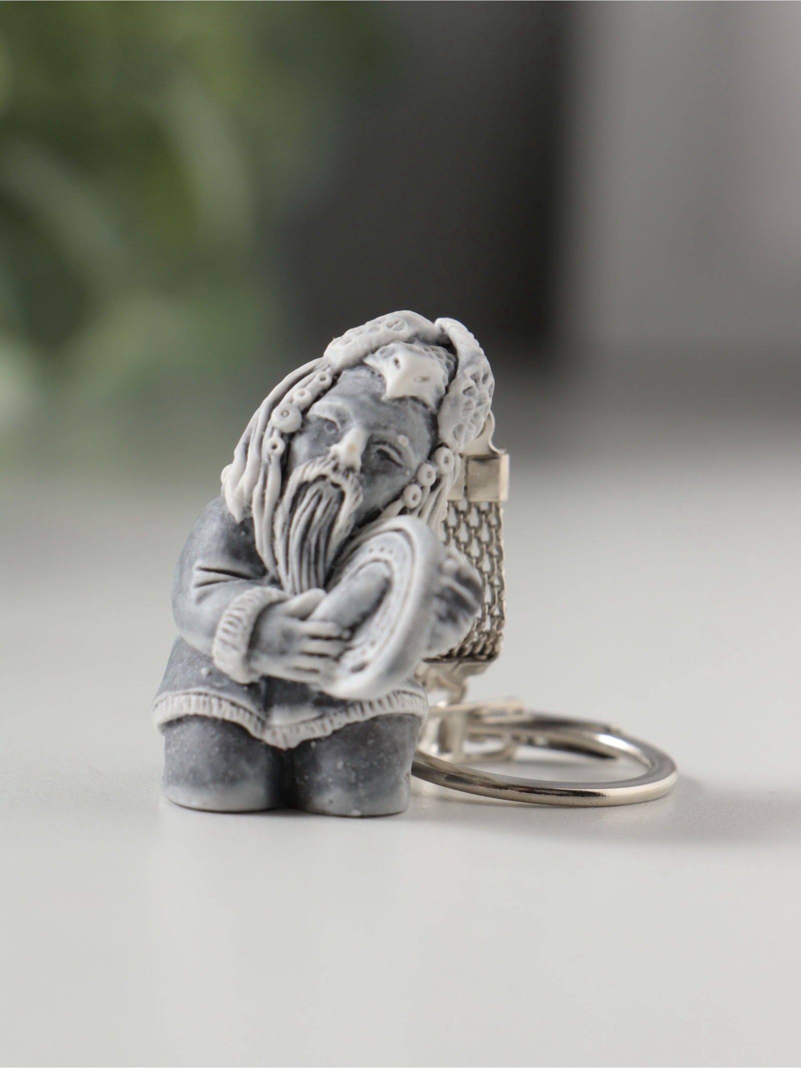 Брелок для ключей на кольце "Шаман сидит с бубном", 3.7 см, Сувениры из мраморной крошки, Россия