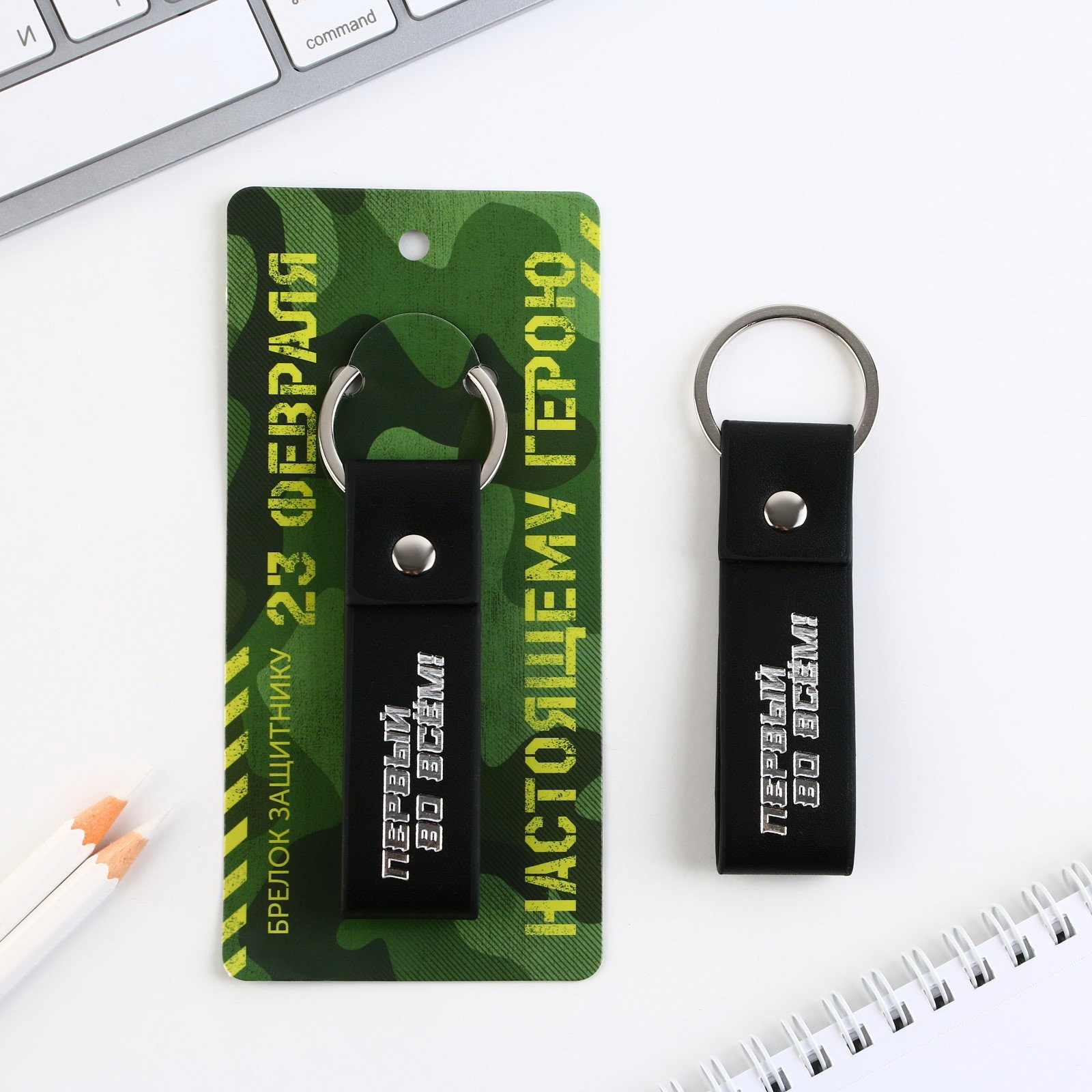 Брелок для ключей кожзам "23 февраля!", 11 x 2.5 см, 2.5x11x1 см., Сима-ленд, Китай