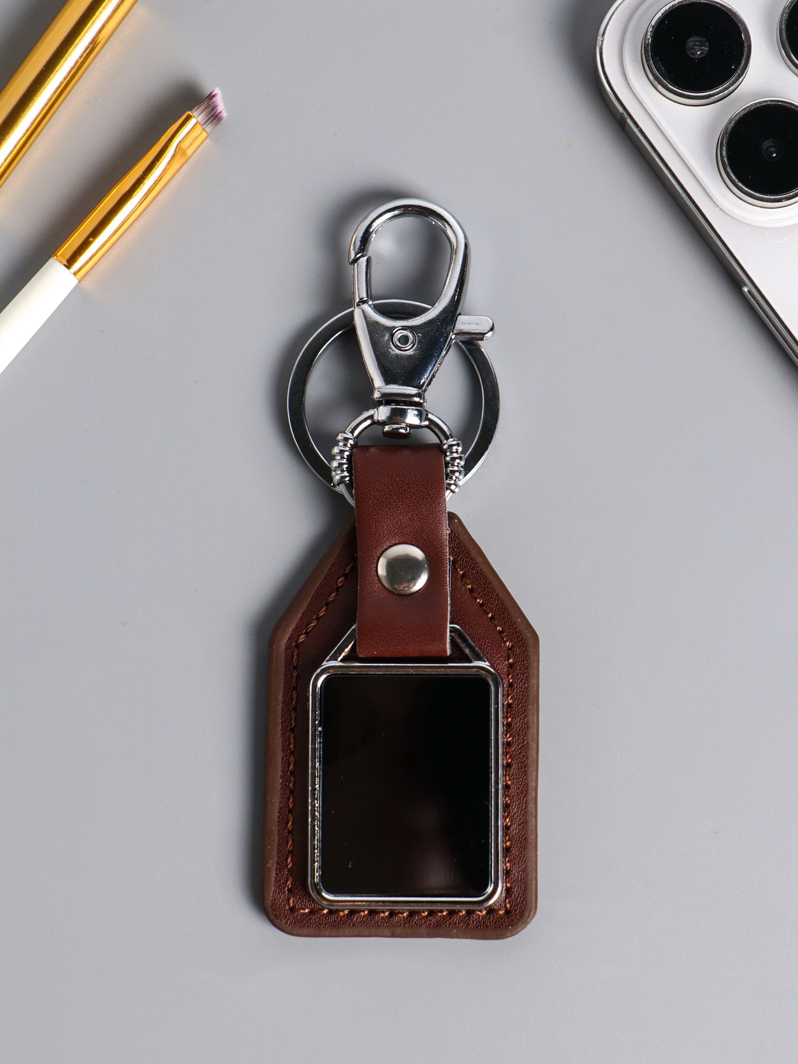 Практичность и стиль: Компактный размер 11x4x0.7 см делает брелок удобным для ношения в кармане или на связке ключей. Аксессуар не занимает много места, но всегда находится под рукой. С ним ваши ключи или пропуск приобретают целостный и солидный вид. Это простой способ персонализировать обычную вещь и сделать ее по-настоящему вашей. | ||