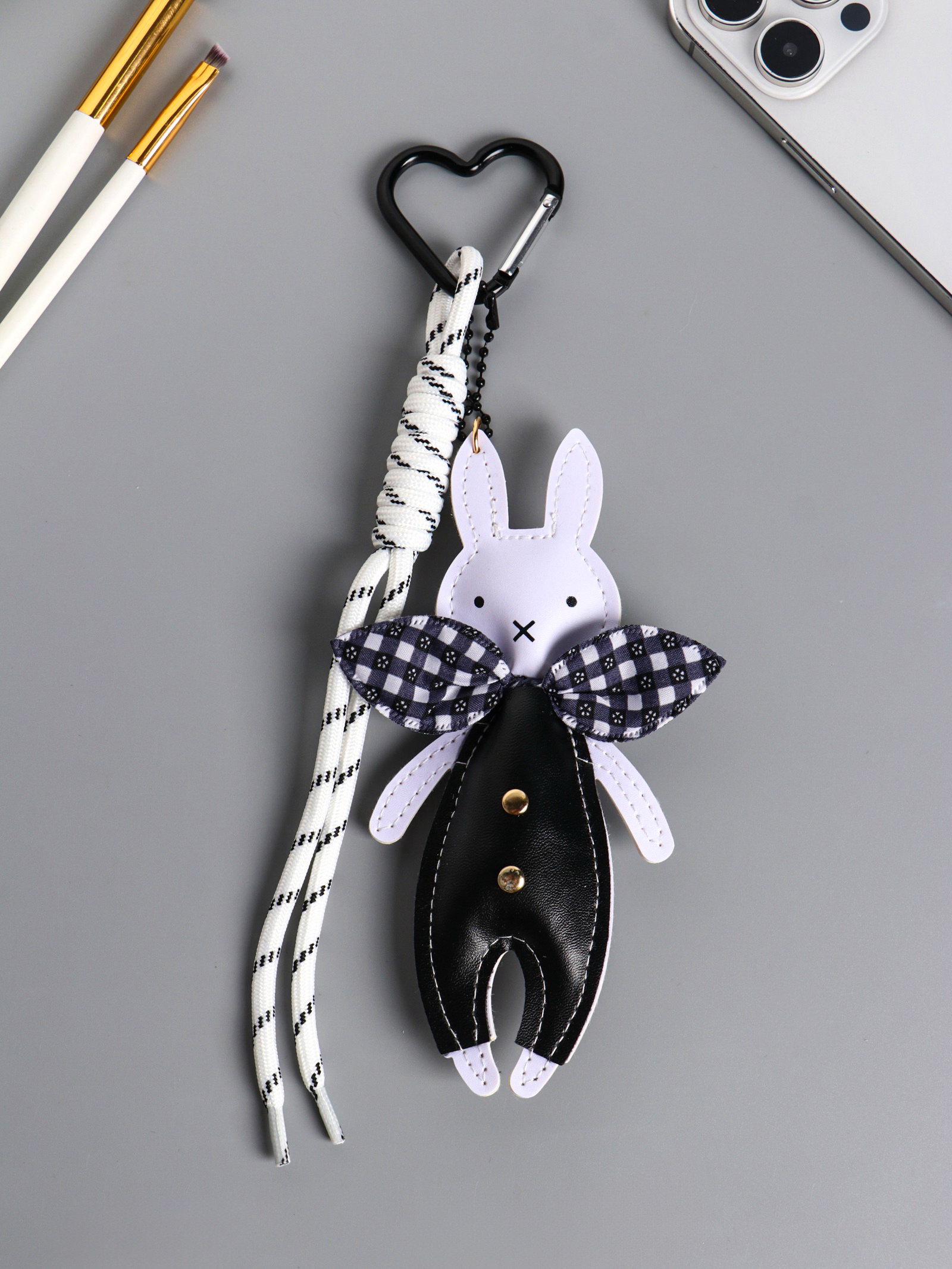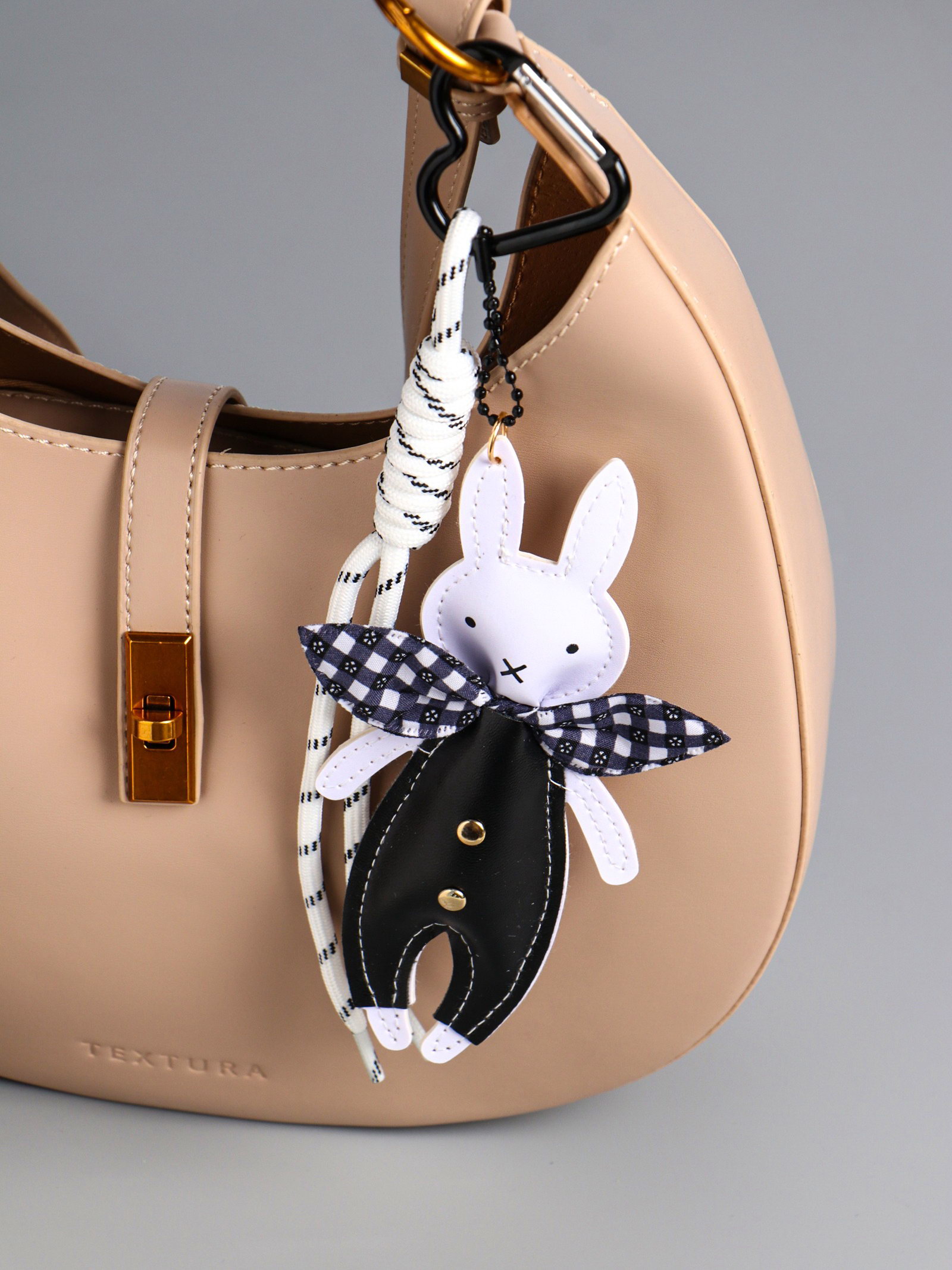 Брелок для ключей на карабине "Зайчик с косынкой", на сумку, рюкзак, чёрно-белый, с узлом, 22.5x7x1.7 см, 7x22.5x1.7 см., Китай