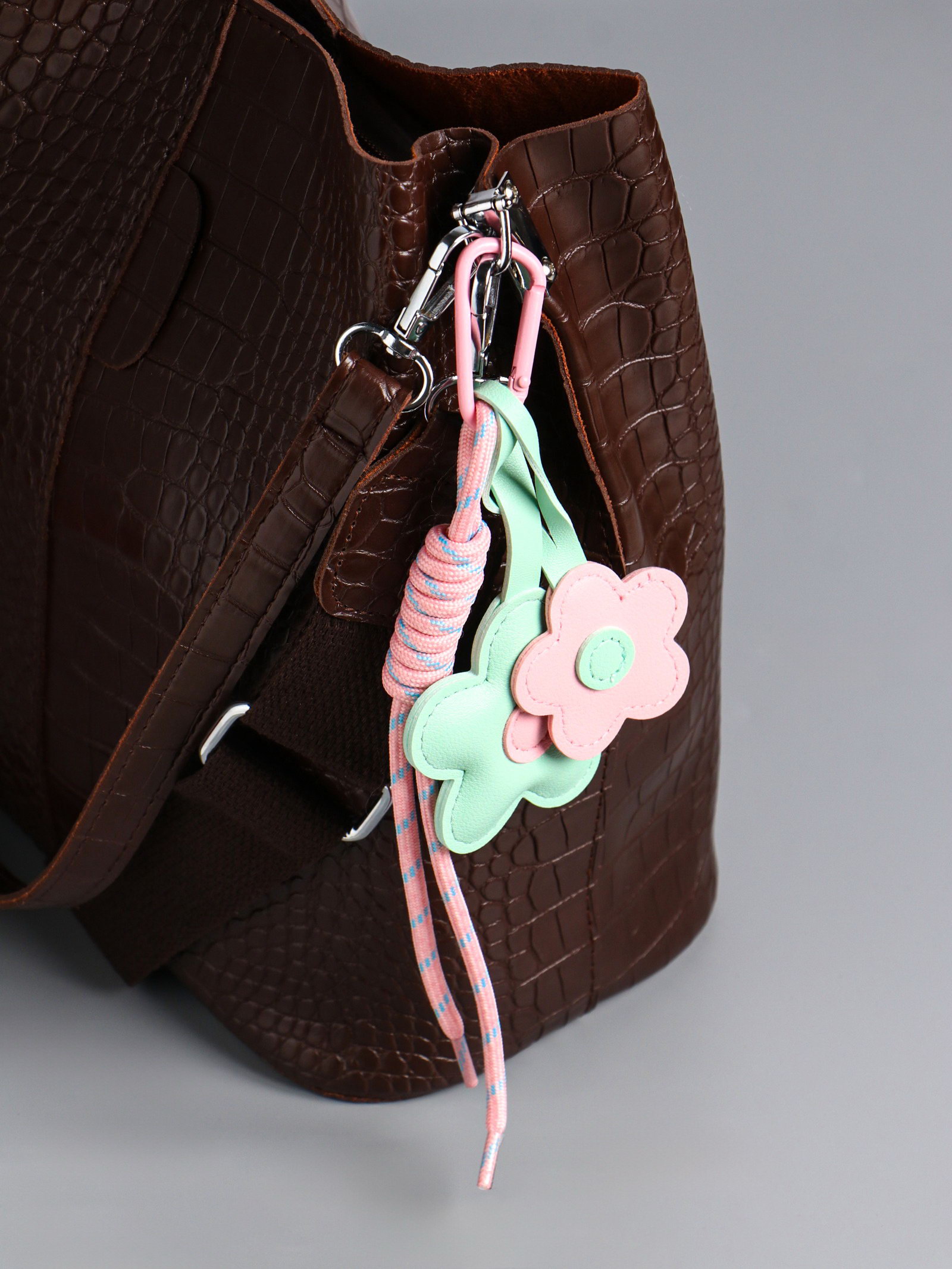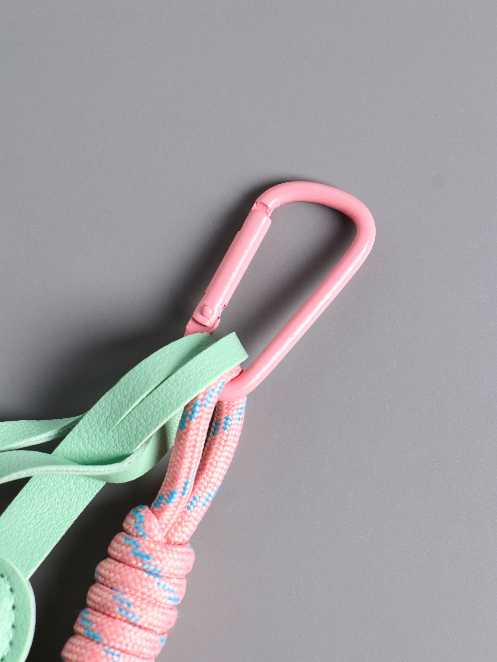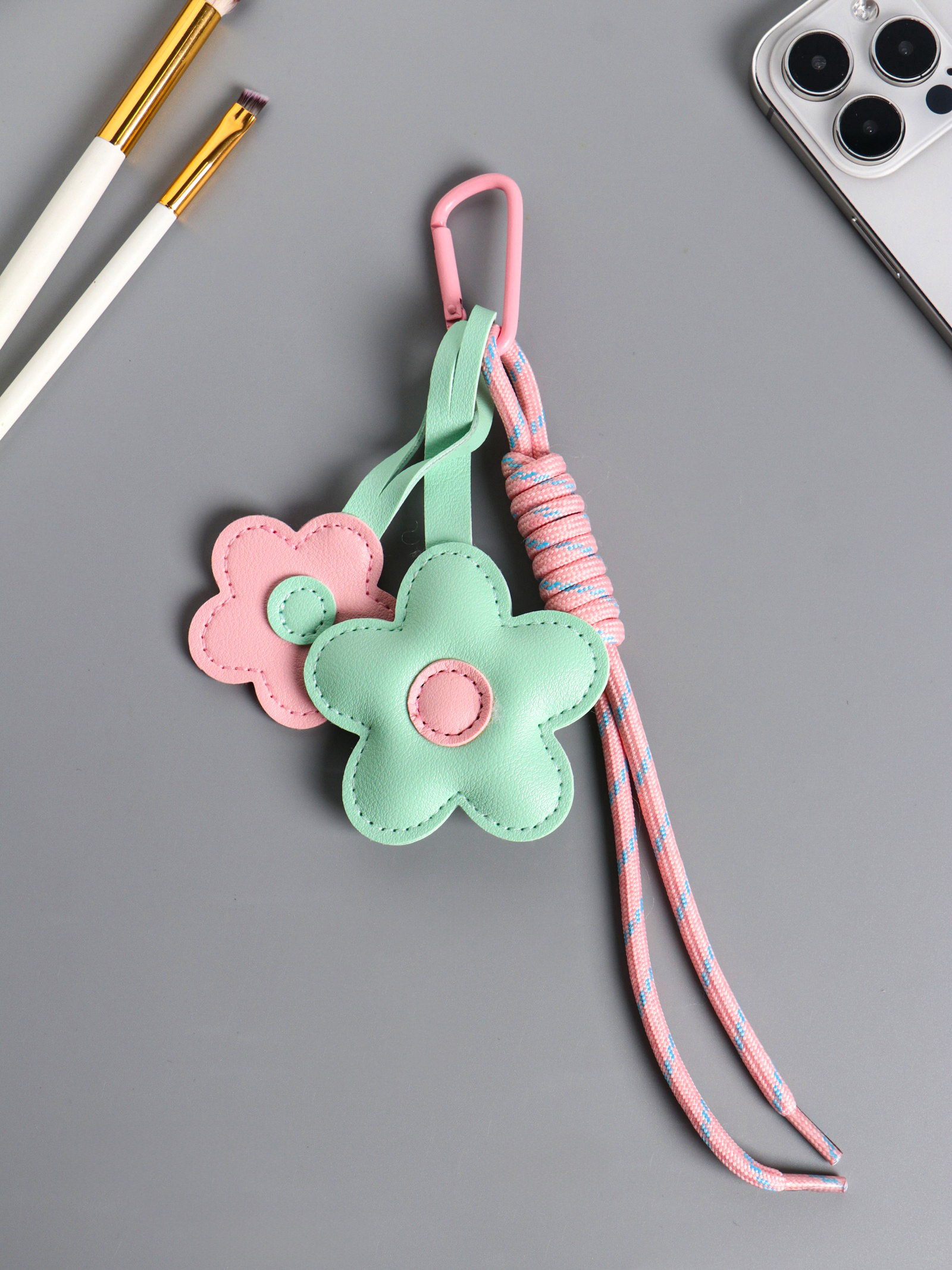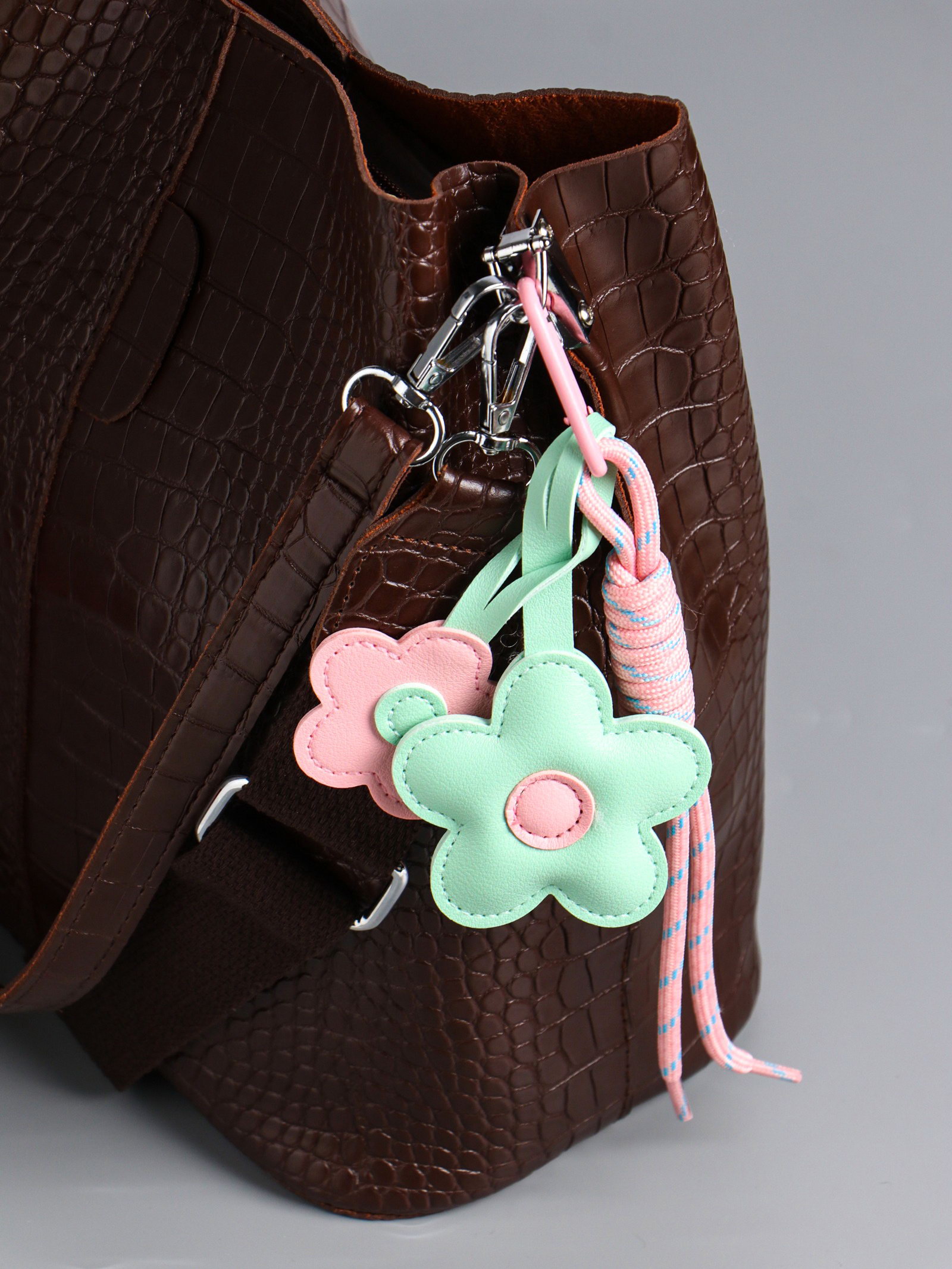 Брелок для ключей на карабине "Цветочки", на сумку, рюкзак, мятно-розовый, с узлом, 25x7x1.5 см, 7x25x1.5 см., Китай