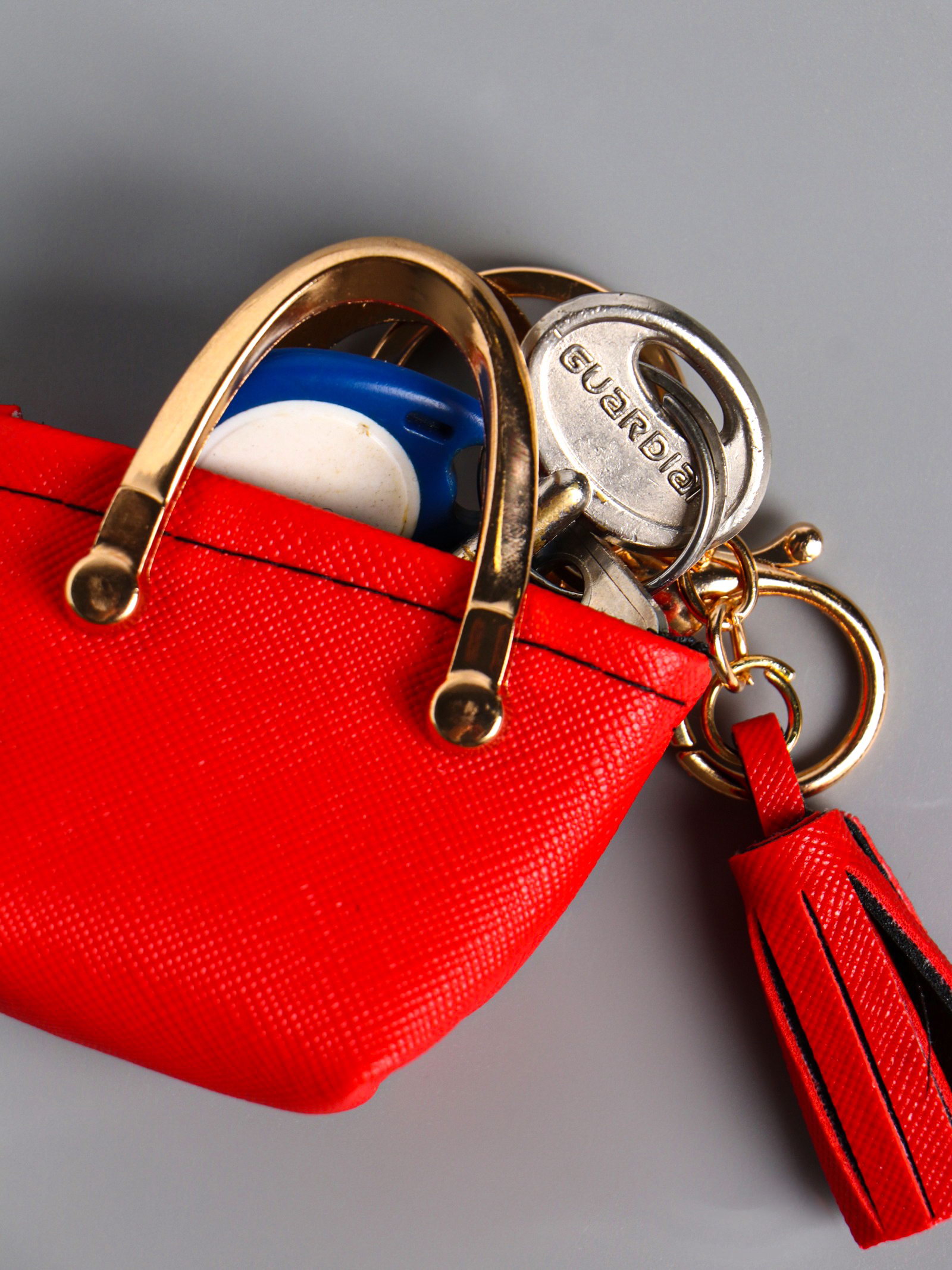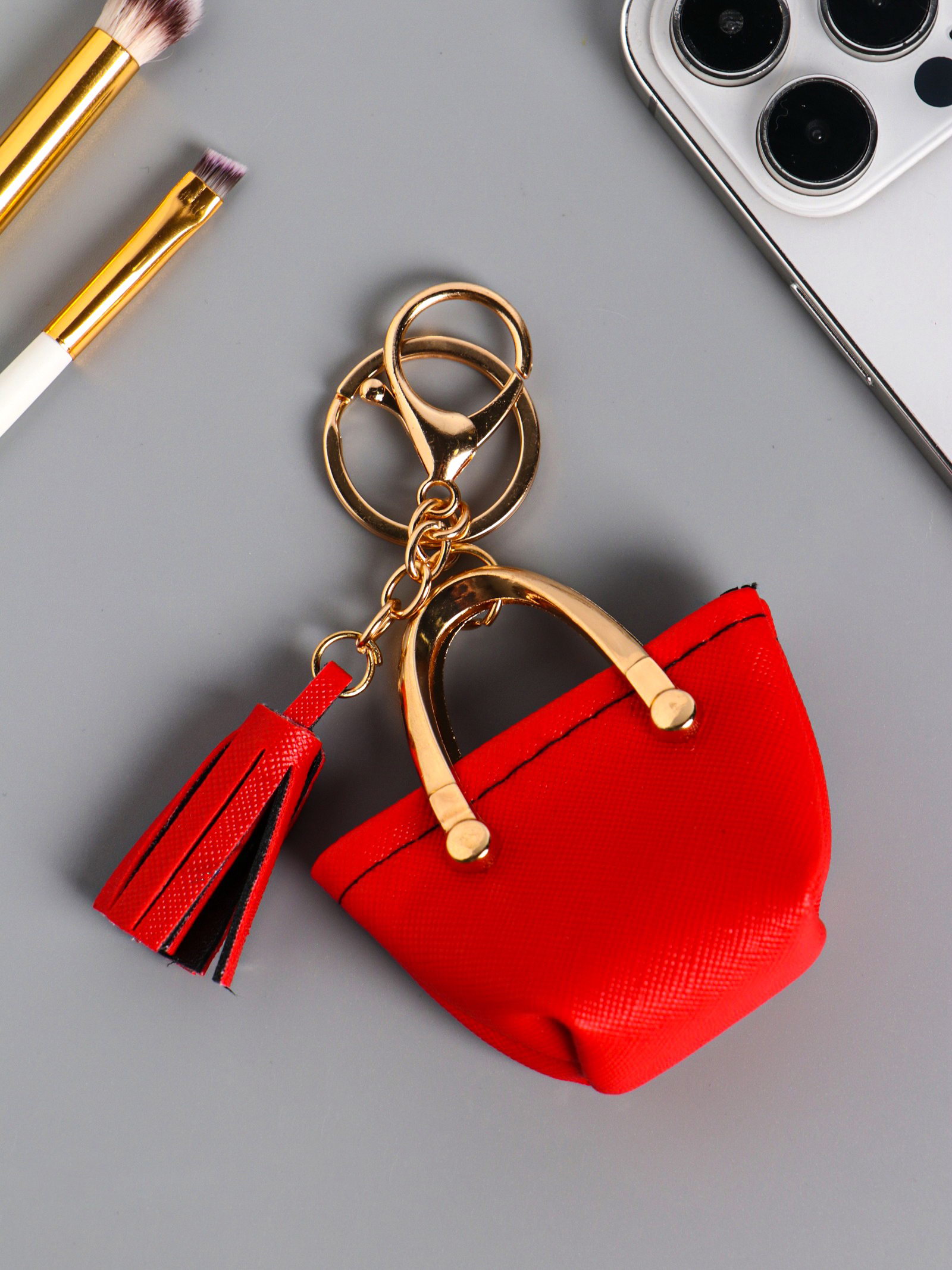 Брелок для ключей с карабином, с кистью "Сумка тоут", на сумку, рюкзак, красная, 6.5x3x7 см, 3x6.5x7 см., Китай