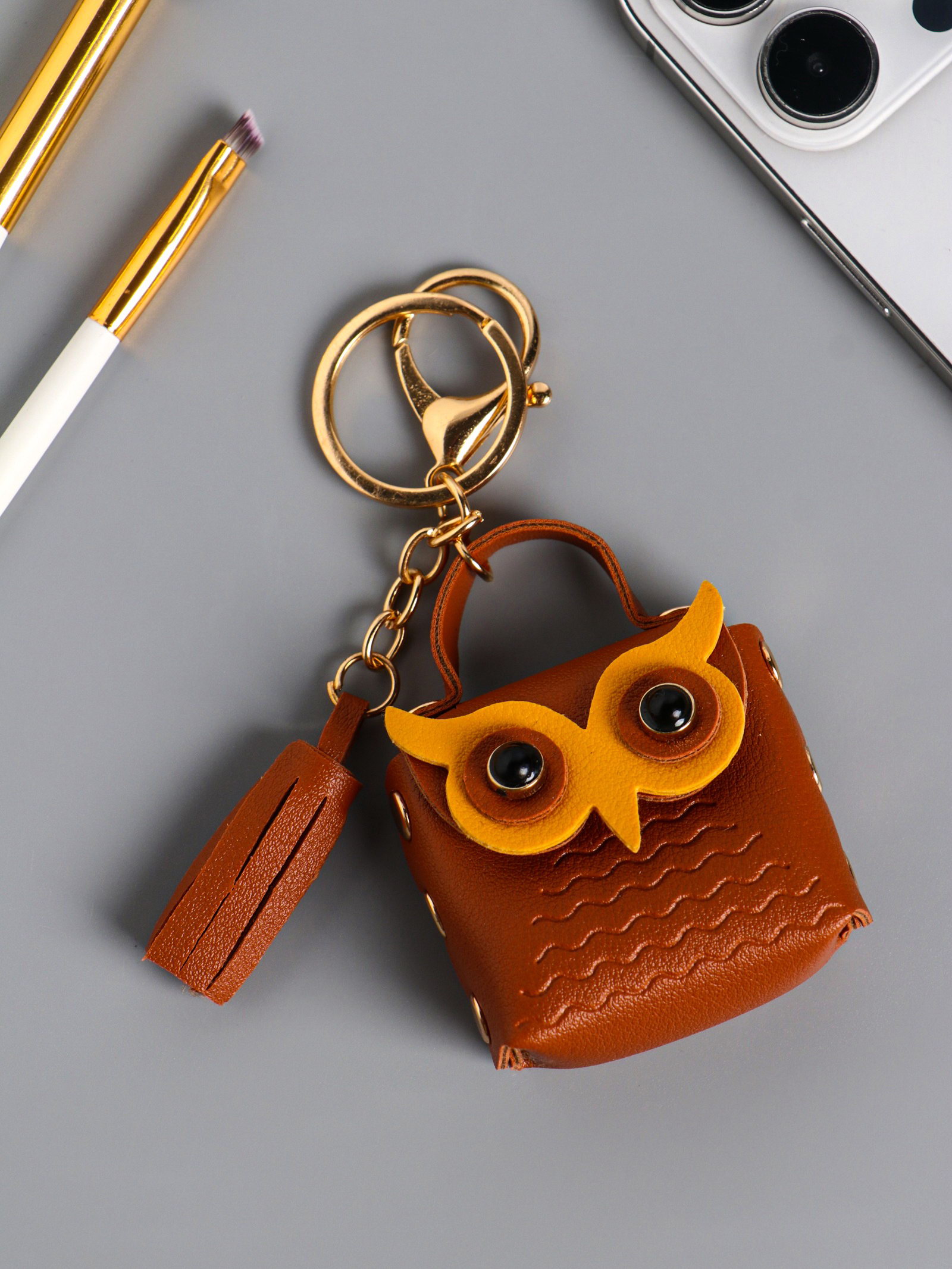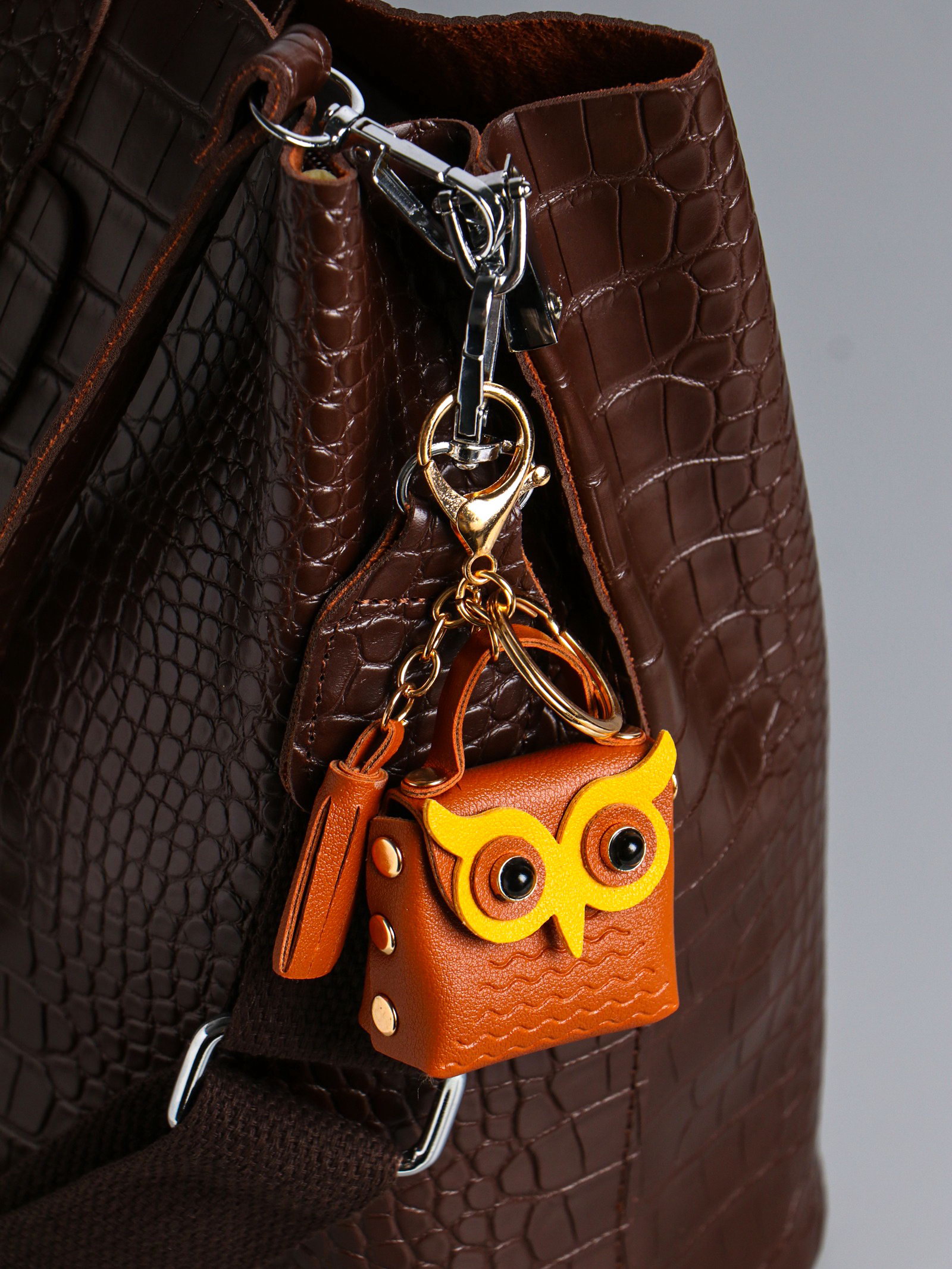 Брелок для ключей с карабином, с кистью "Сумочка. Сова", на сумку, рюкзак, карамель, 5.2x2.5x6 см, 2.5x5.2x6 см., Китай