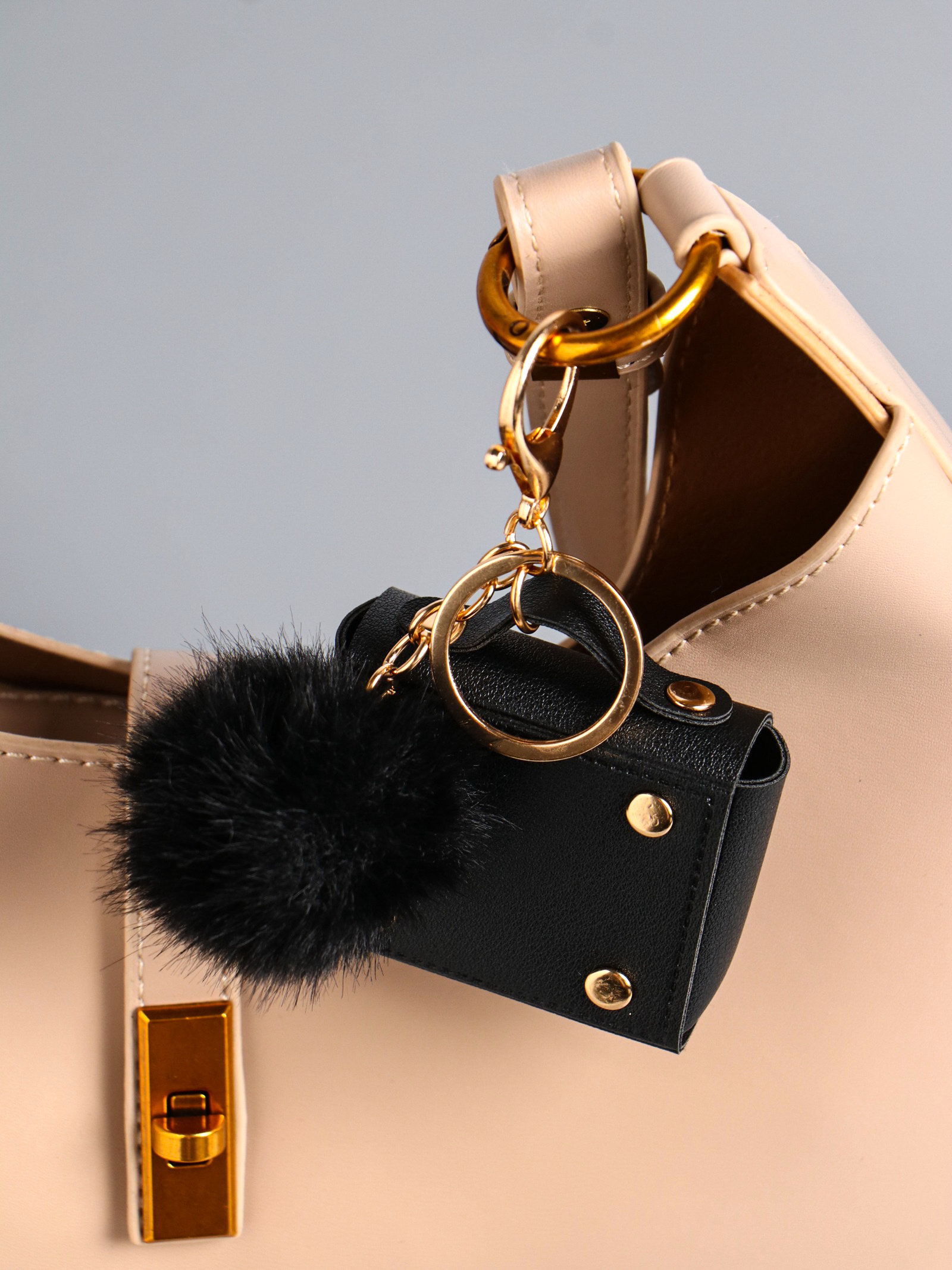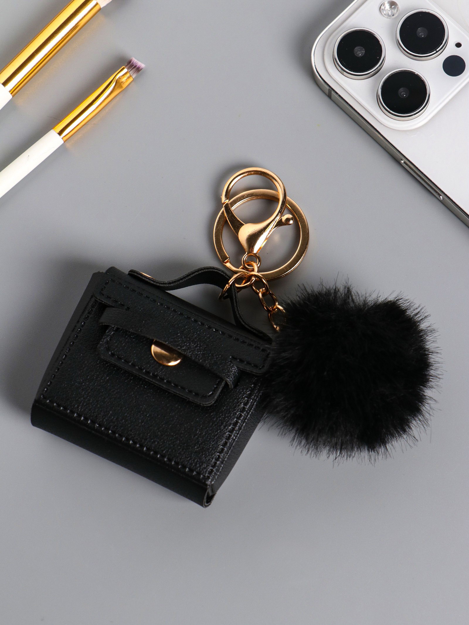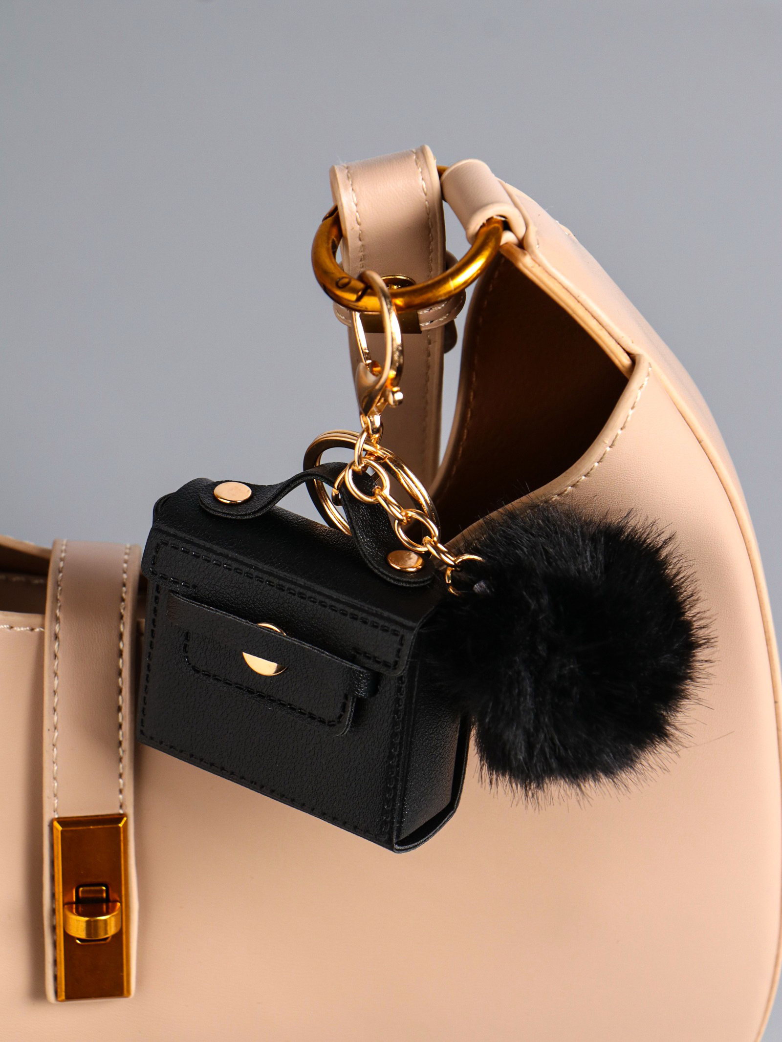 Брелок для ключей с карабином, с пушистиком "Сумочка", на сумку, рюкзак, чёрный, 5.8x2.4x5 см, 2.4x5.8x5 см., Китай