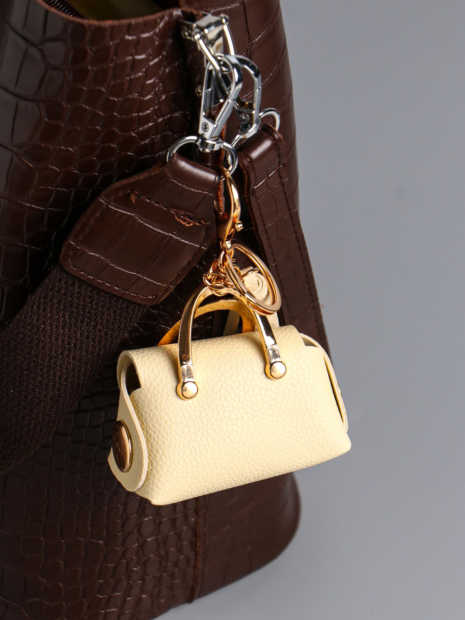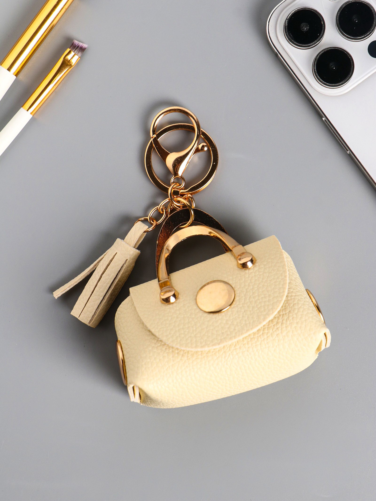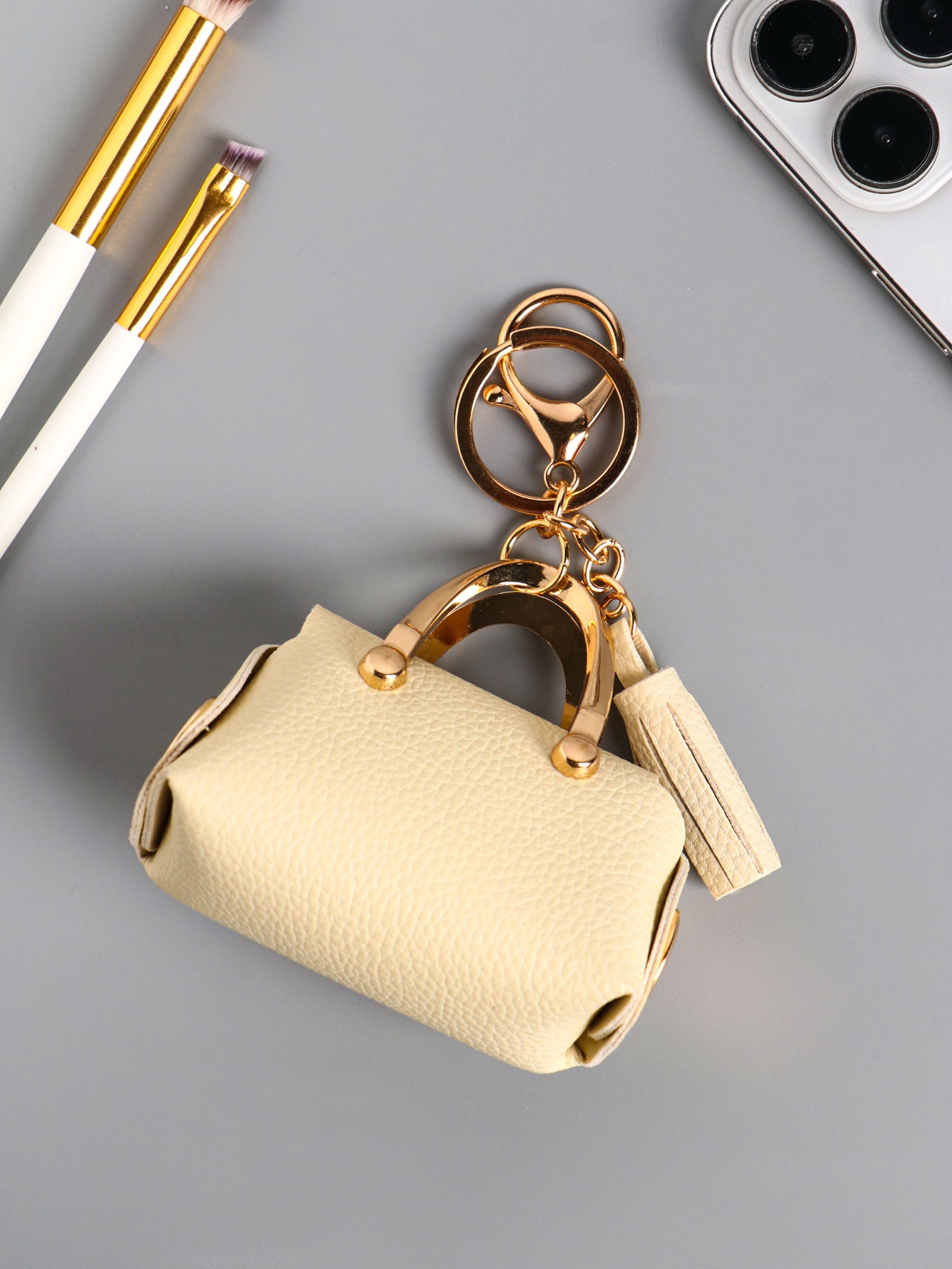 Брелок для ключей с карабином, с кистью "Саквояж", на сумку, рюкзак, сливочный 7.5x4x7 см, 4x7.5x7 см., Китай