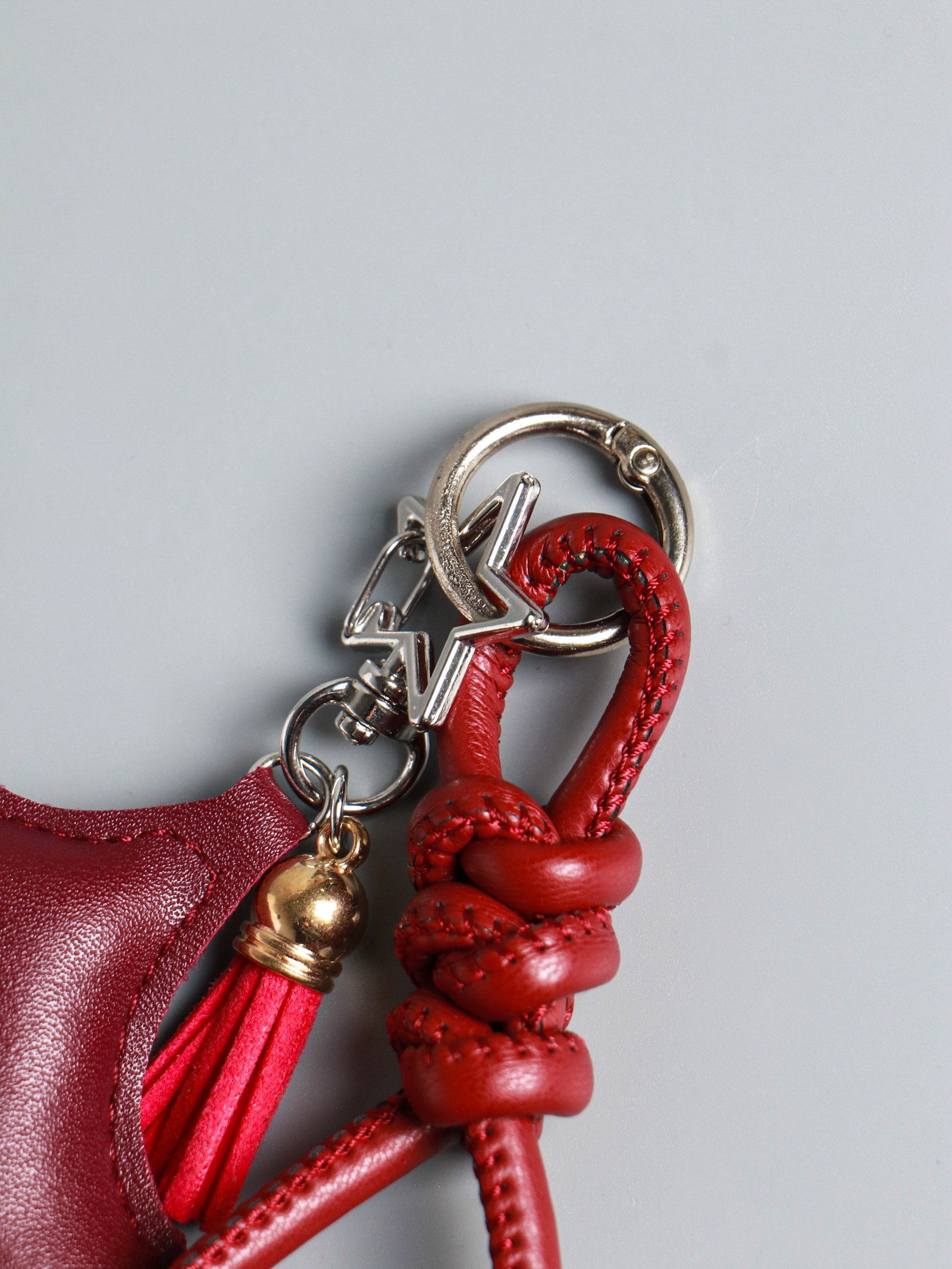 Брелок для ключей на карабине кожзам "Терьер", с узлом, винный, на сумку, рюкзак, 14x8x1.2 см, 8x14x1.2 см., Китай