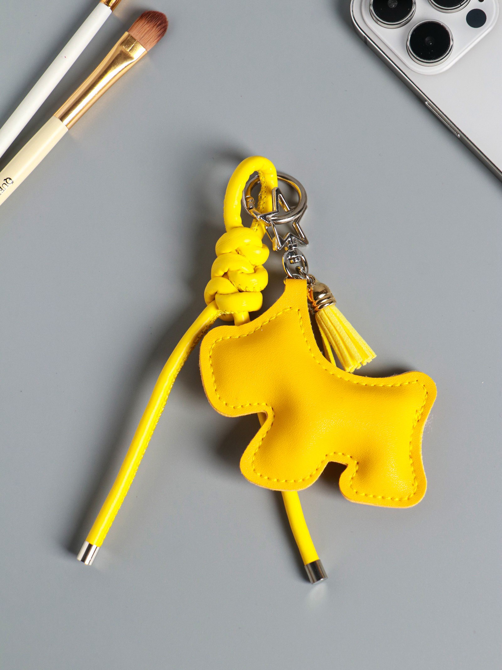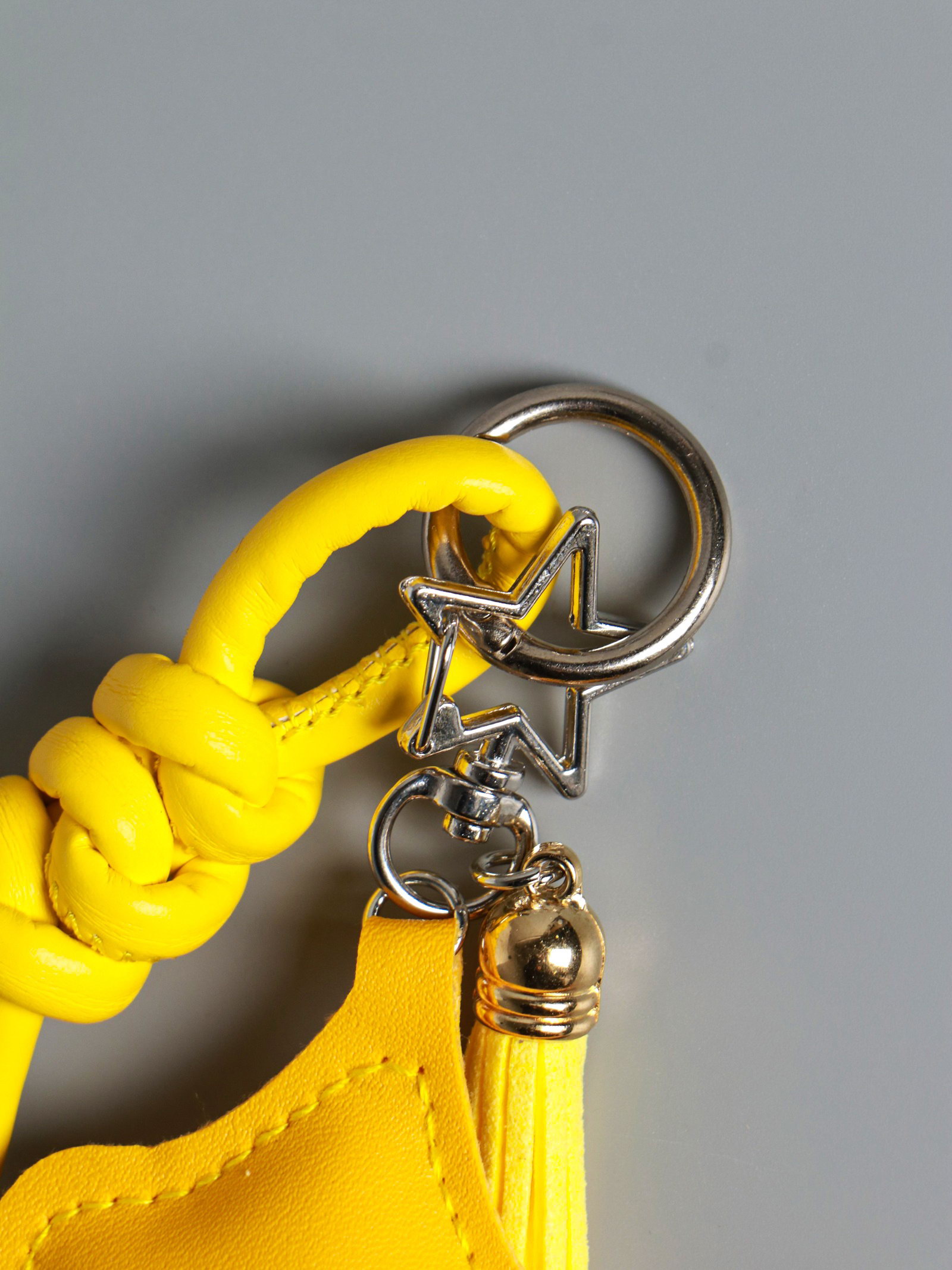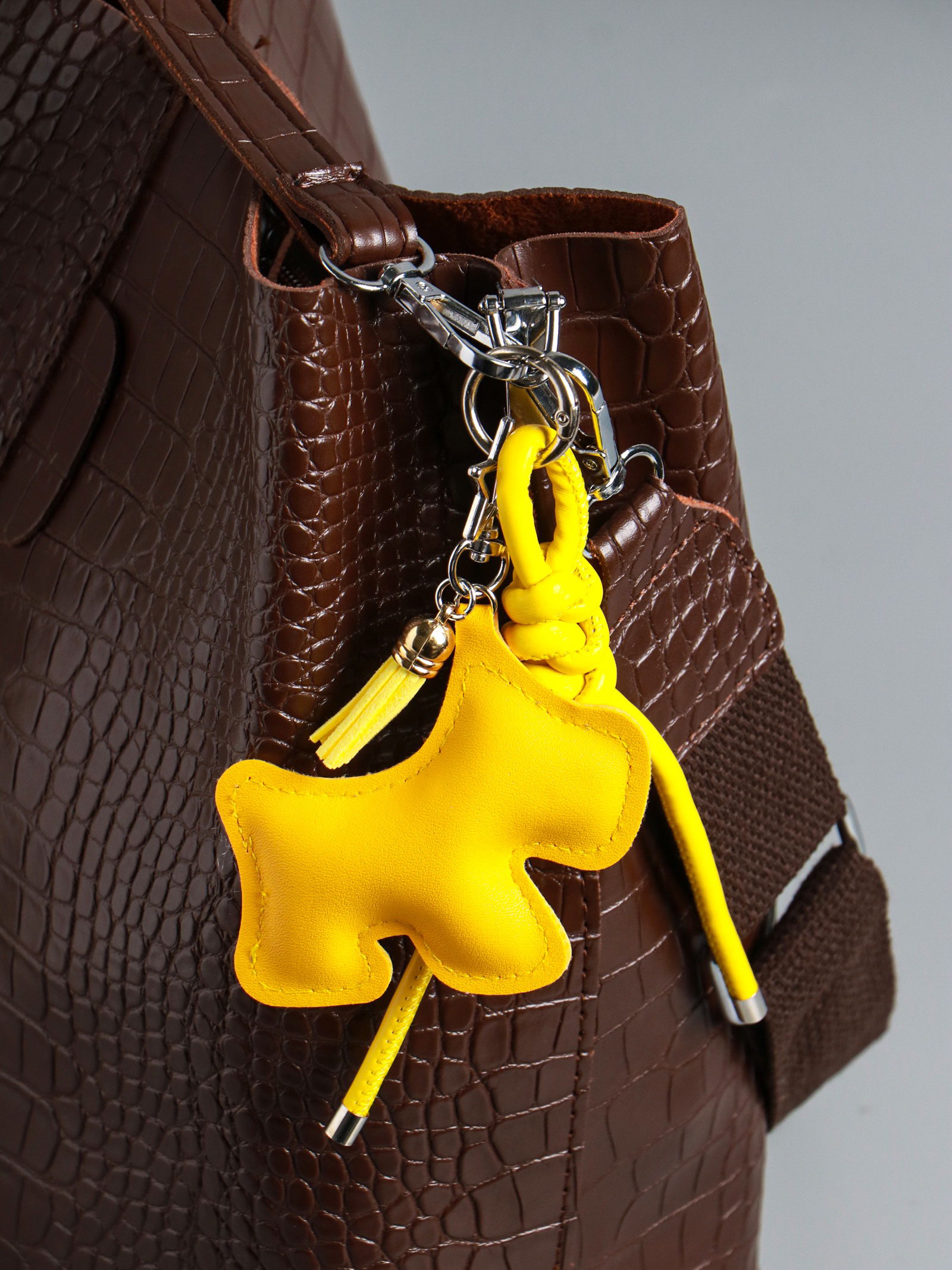 Брелок для ключей на карабине кожзам "Терьер", с узлом, жёлтый, на сумку, рюкзак, 14x8x1.2 см, 8x14x1.2 см., Китай