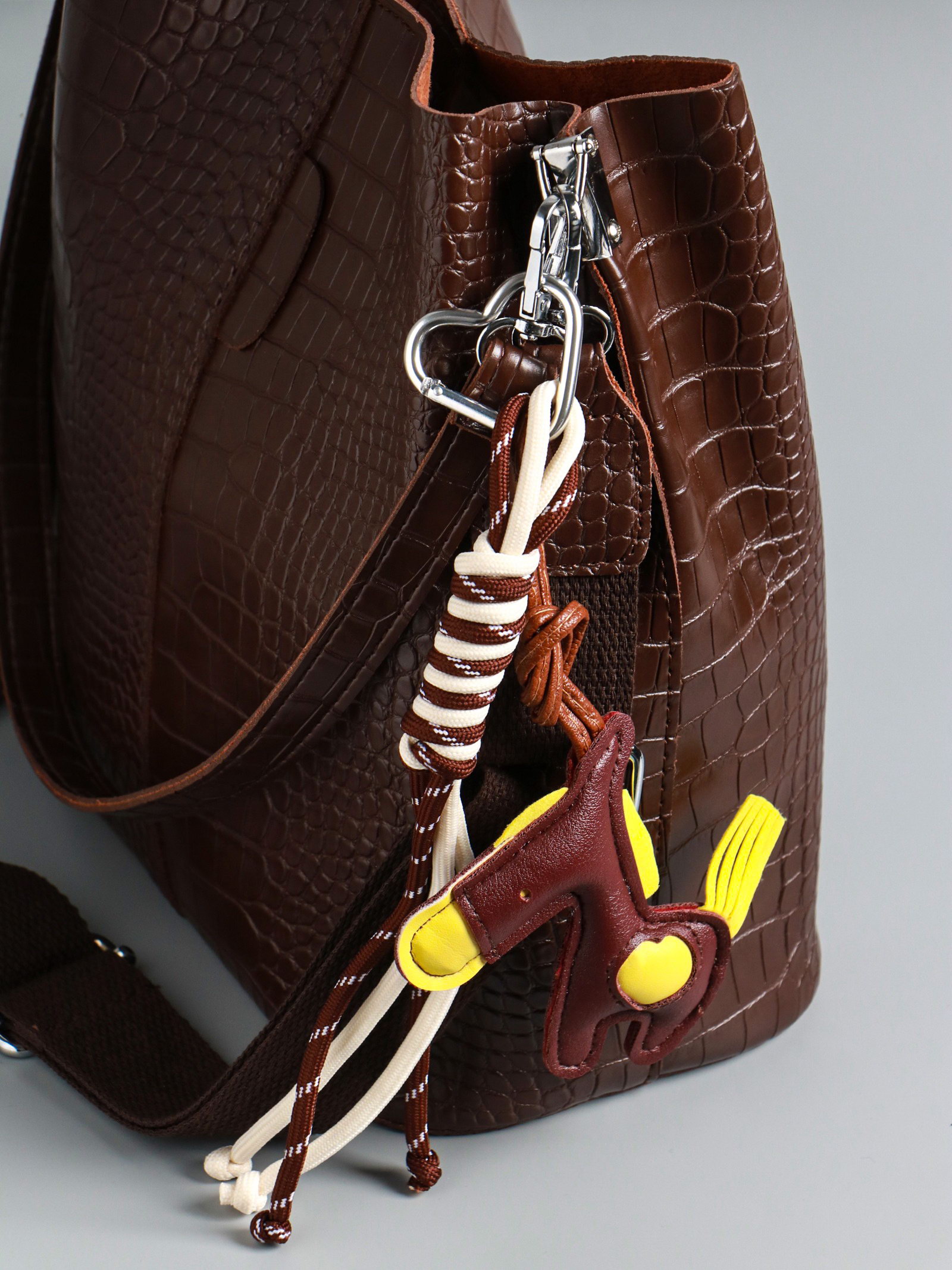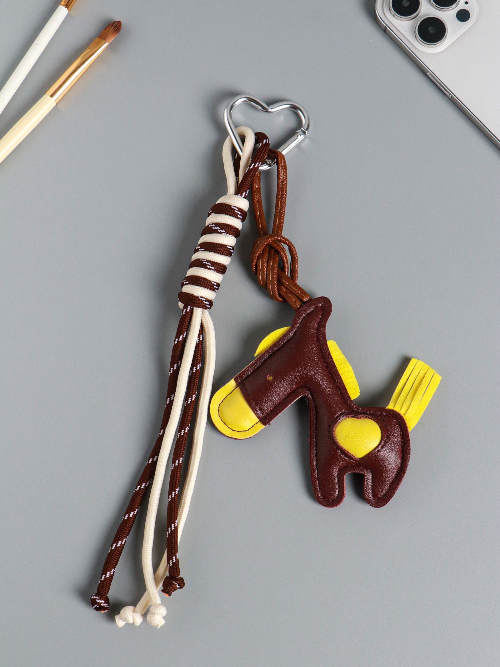 Брелок для ключей на карабине кожзам, текстиль "Лошадка с сердечком", с узлом, на сумку, рюкзак, 26x10x1.5 см, 10x26x1.5 см., Китай