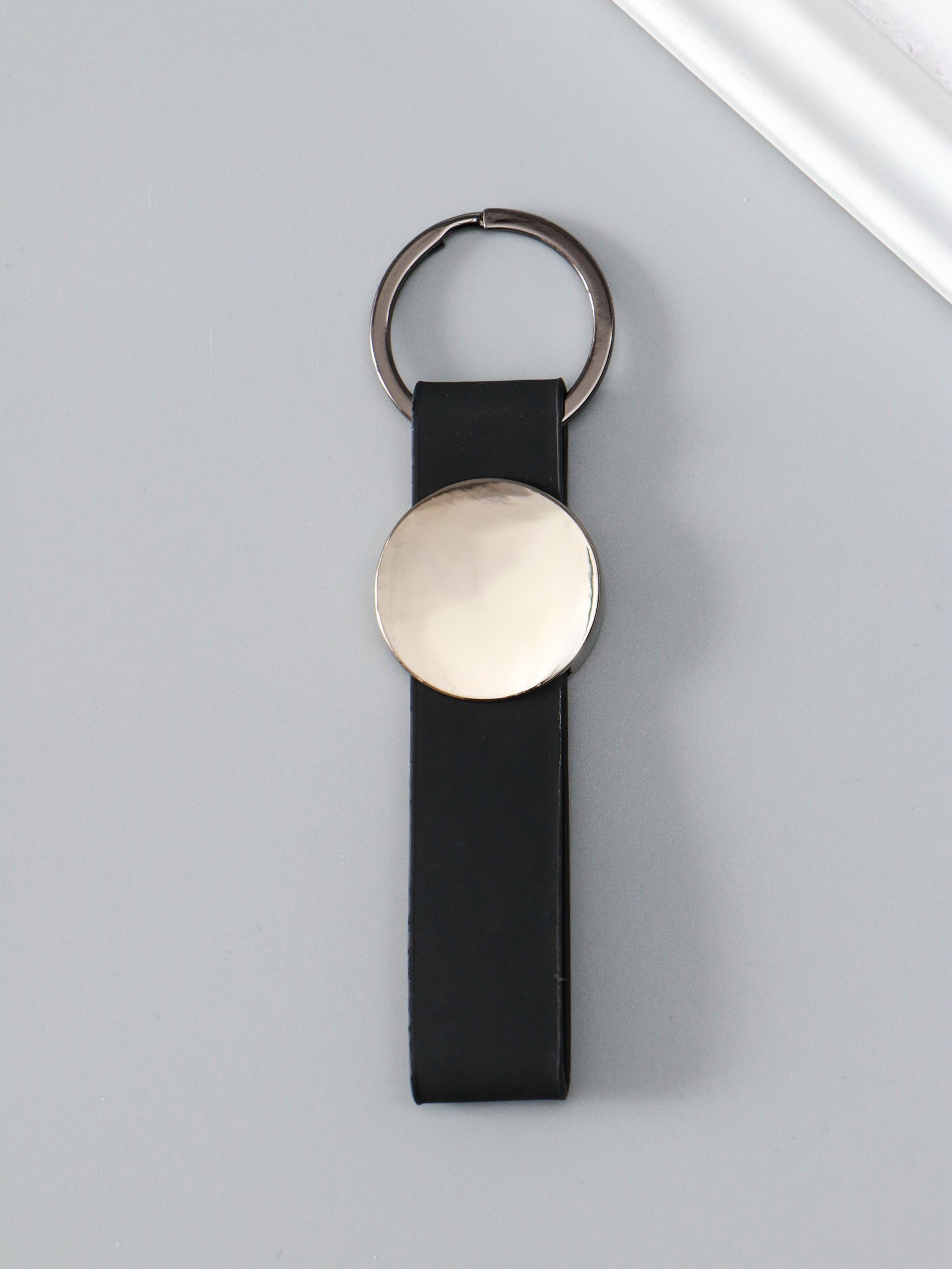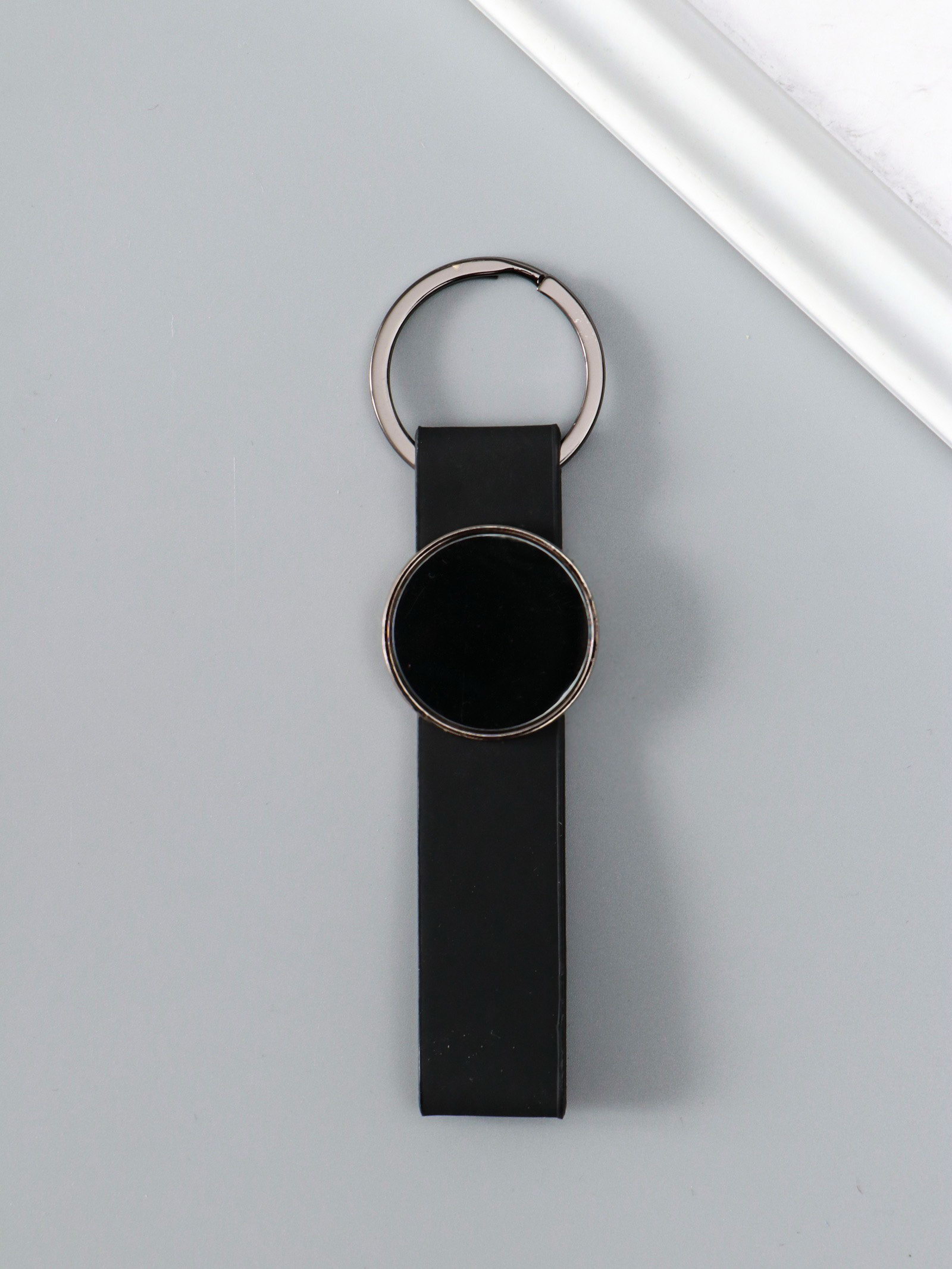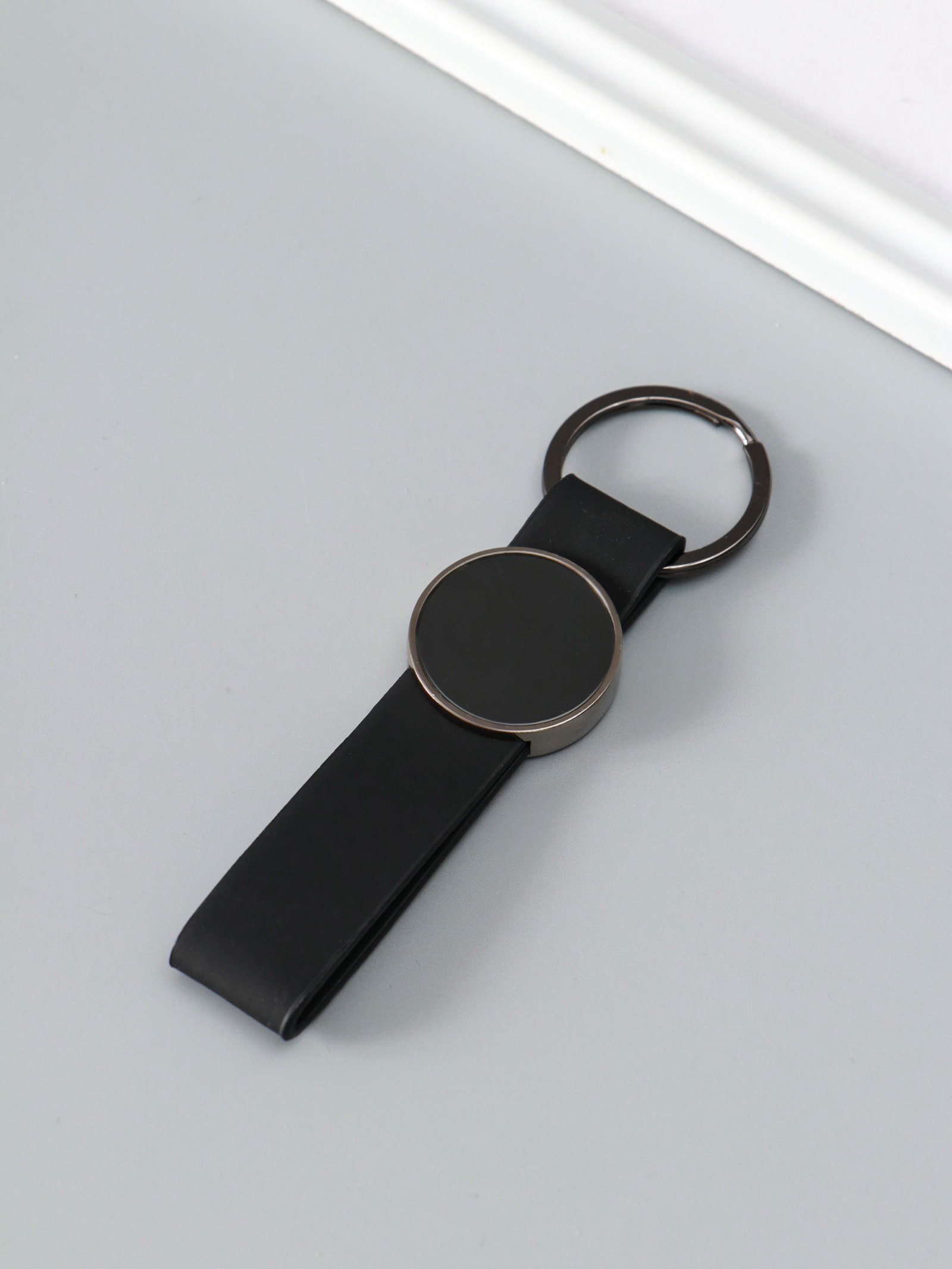 Брелок для ключей на кольце под нанесение "Ремешок", размер окна d=2.7 см, кожзам, чёрный, 11.3x3x0.7 см, 3x11.3x0.7 см., Китай