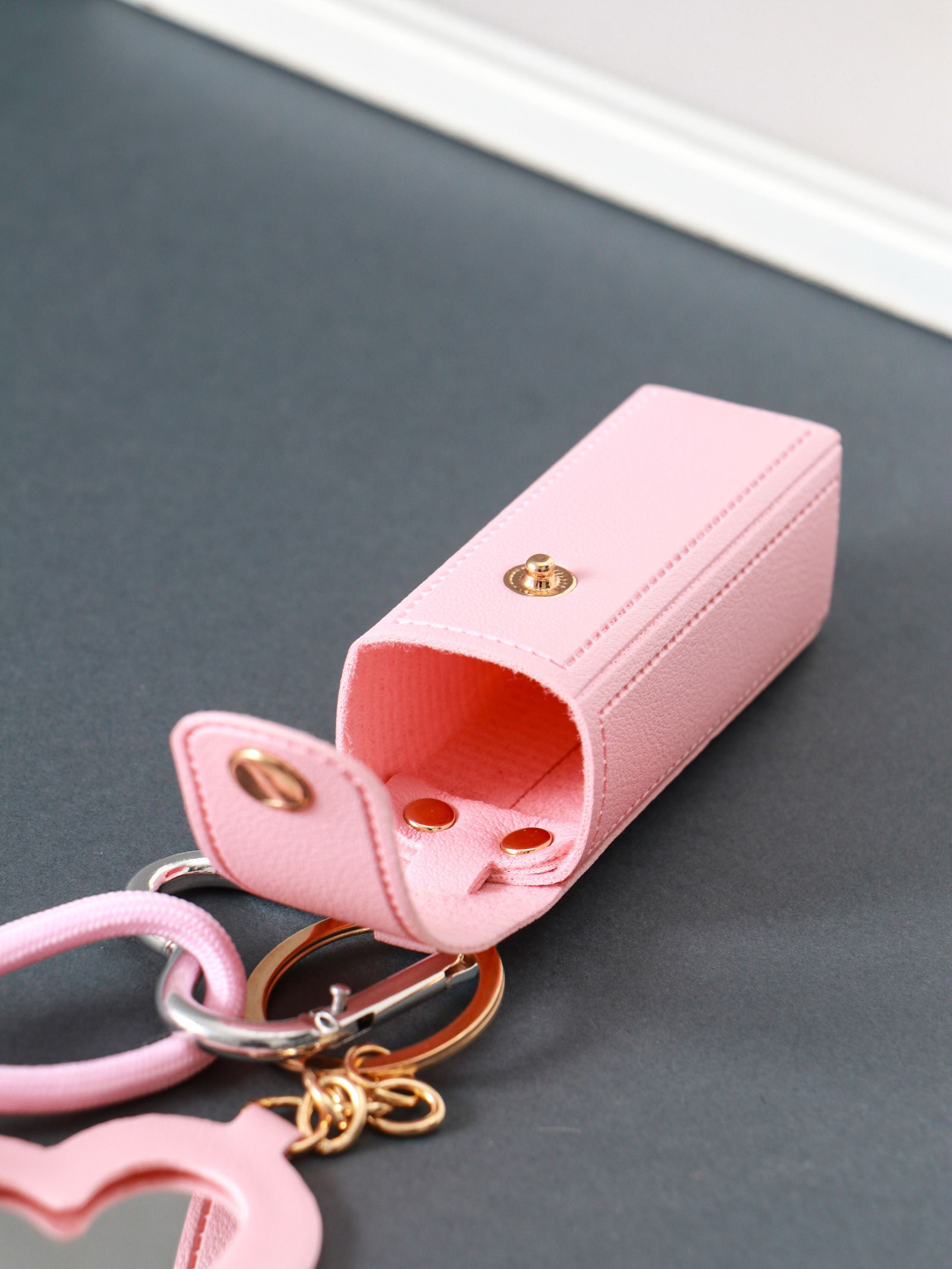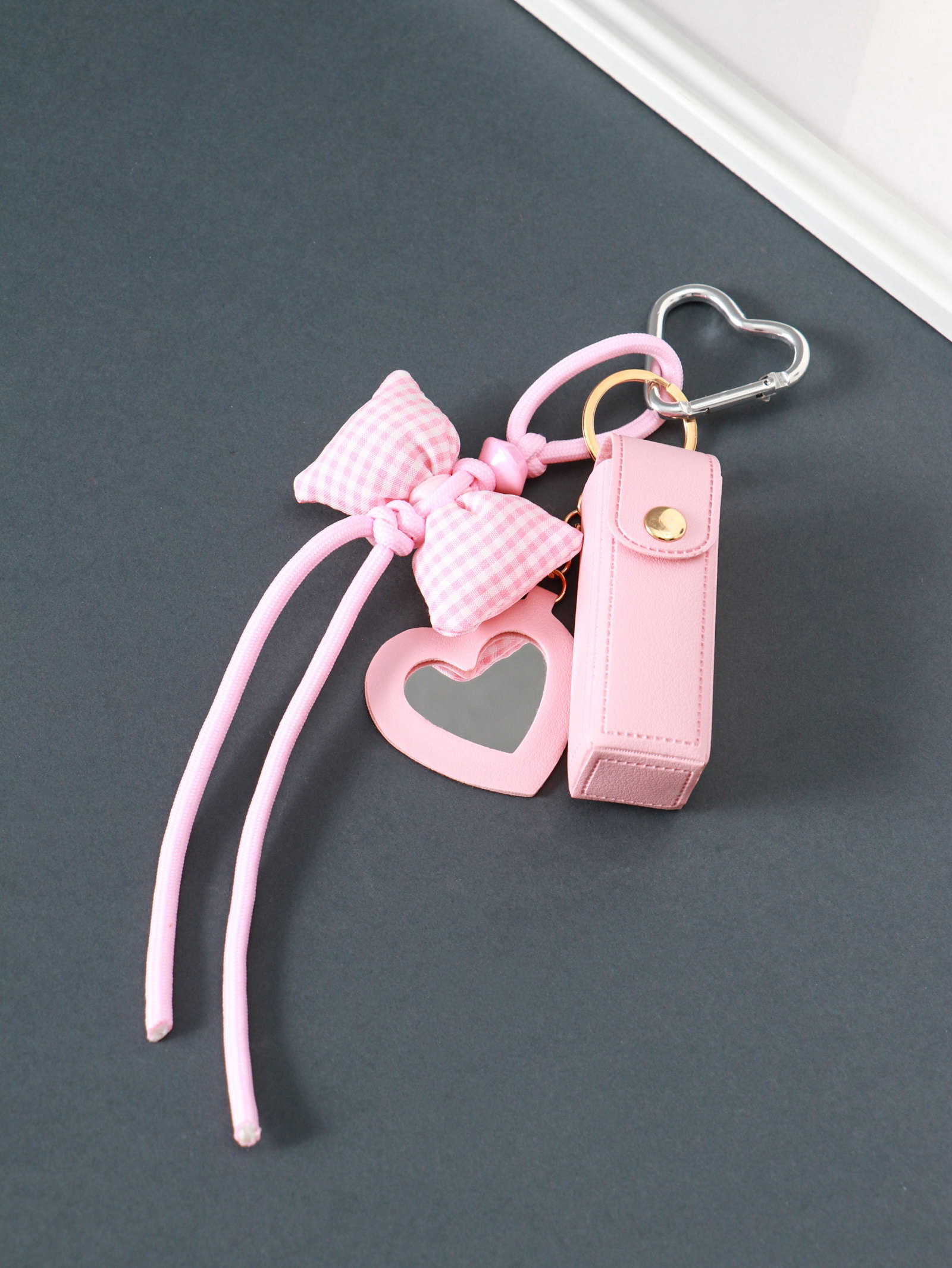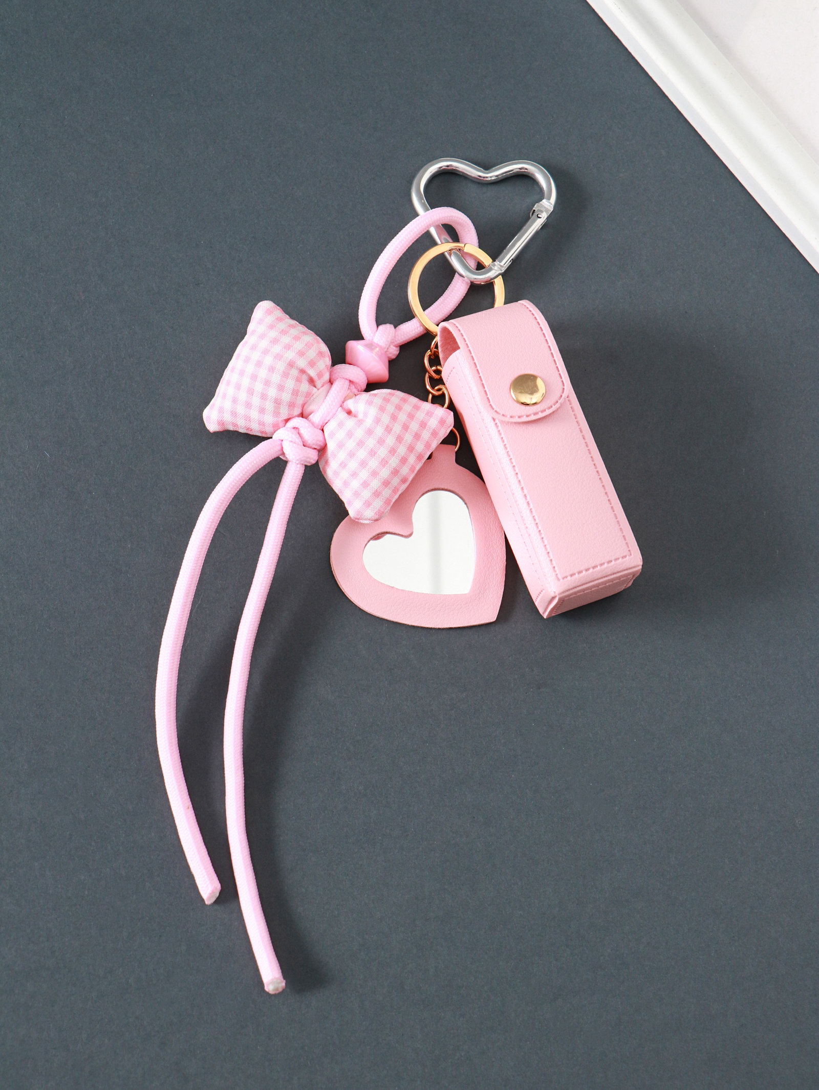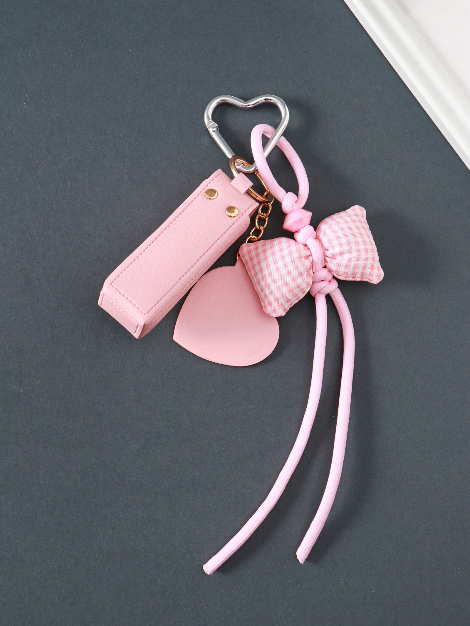 Брелок для ключей на кольце с карабином, с зеркалом "Для помады. Бант", на рюкзак, сумку, кожзам, розовый, 23x3x3.5 см, 3x23x3.5 см., Китай