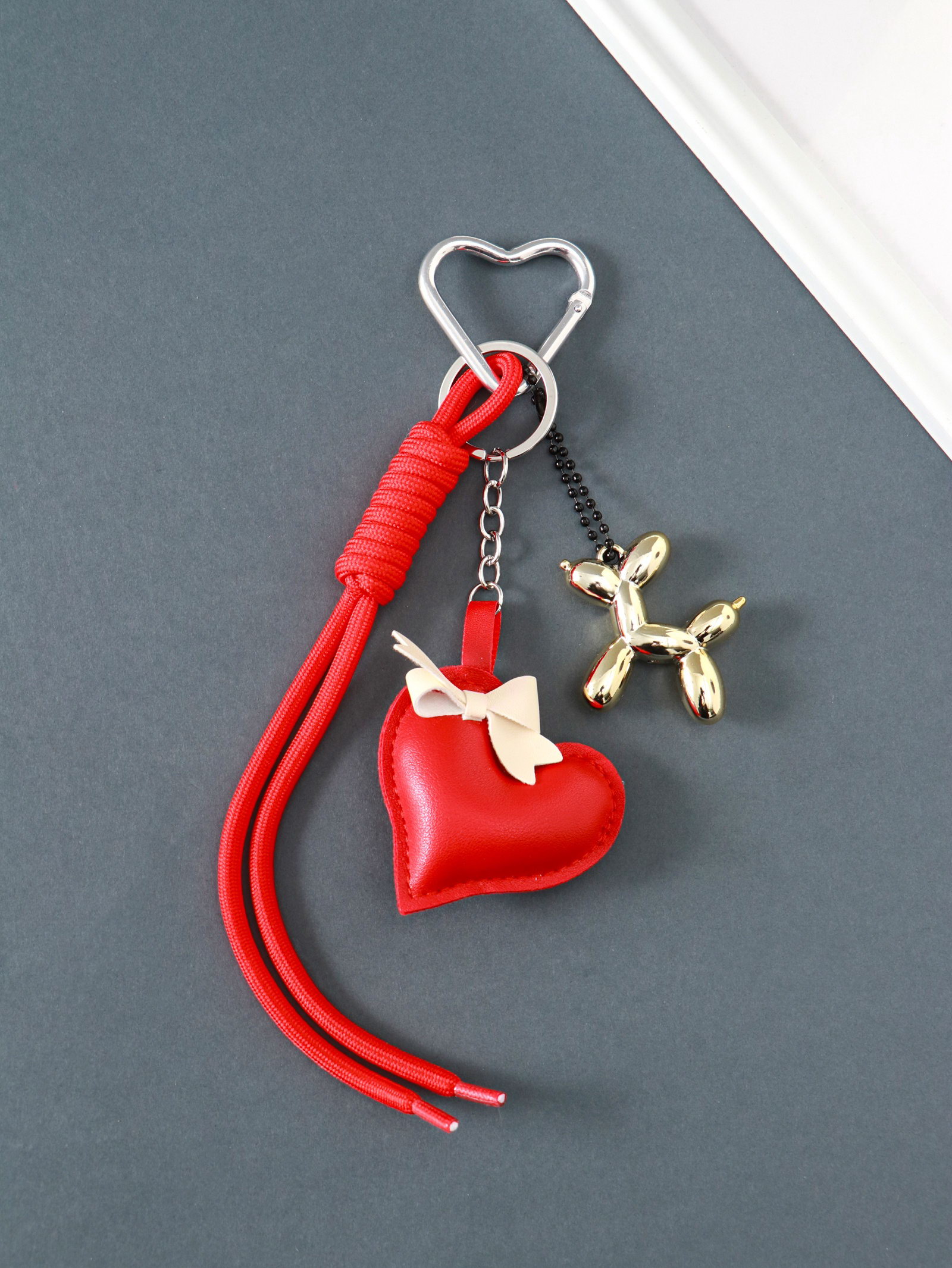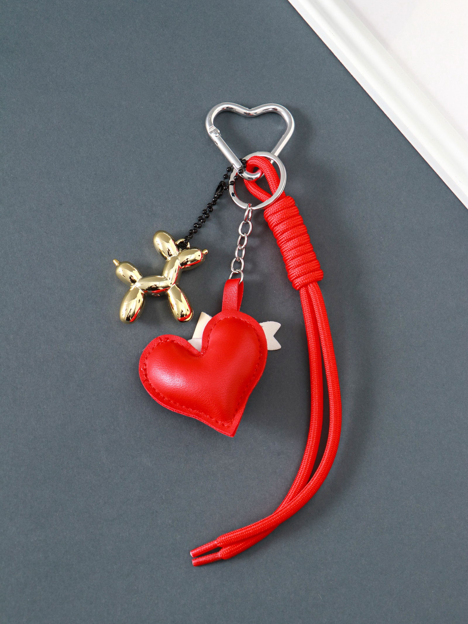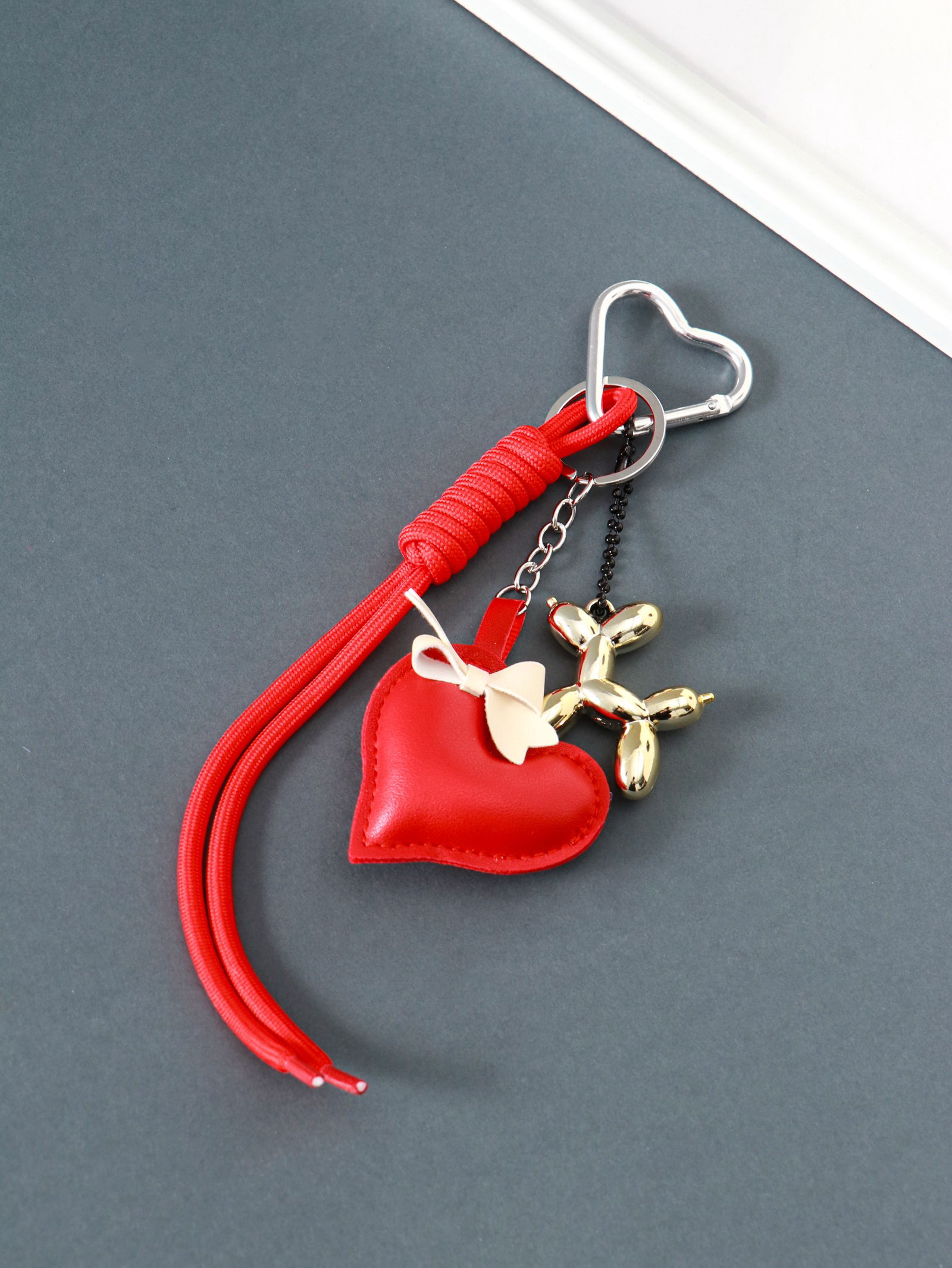 Брелок для ключей на карабине "Сердце и собачка", с узлом, кожзам, текстиль, 21x6.8x2.5 см, 6.8x21x2.5 см., Китай