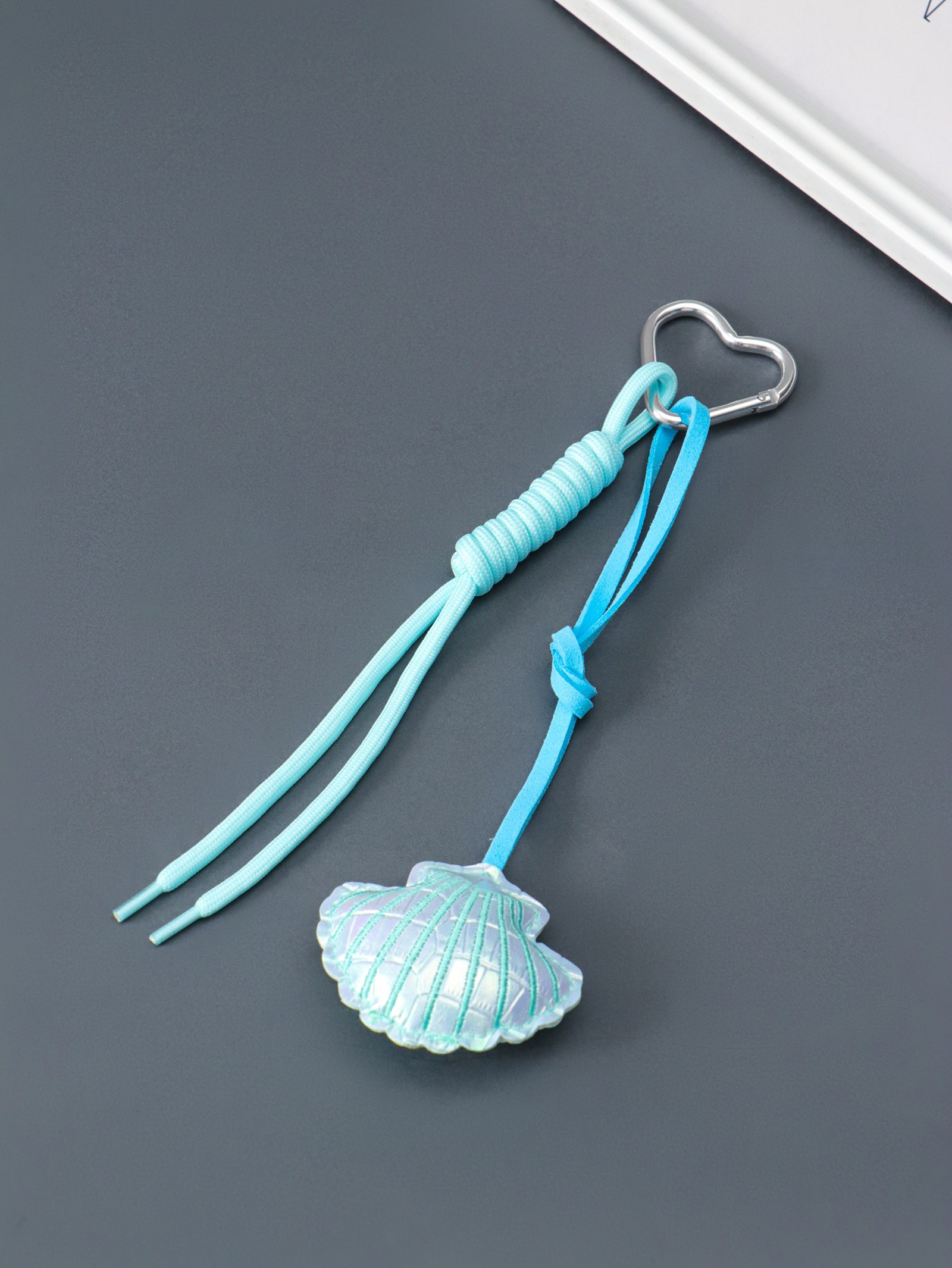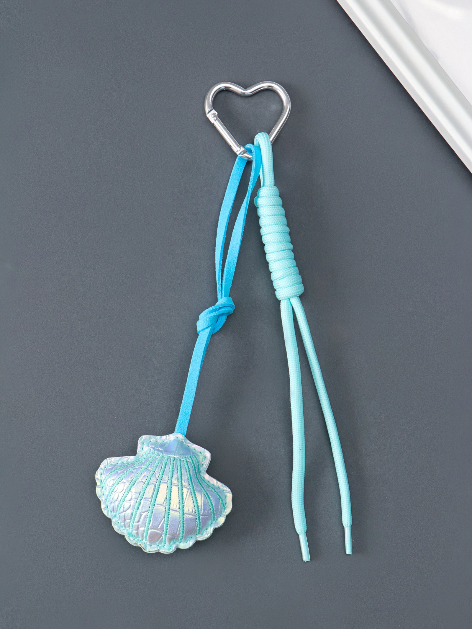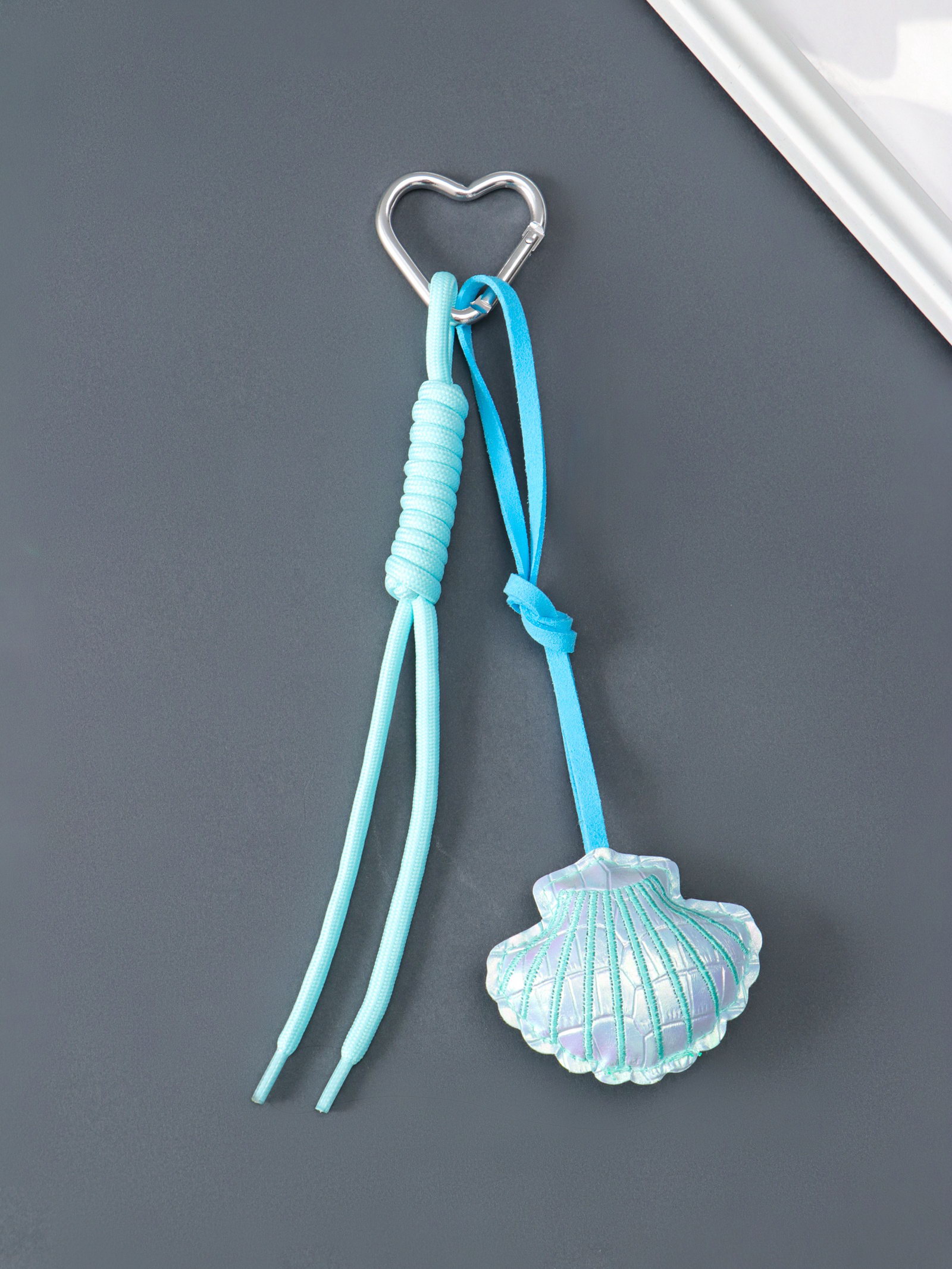 Брелок для ключей на карабине "Морская ракушка", голубой, с узлом, кожзам, текстиль, 22x7x2.3 см, 7x22x2.3 см., Китай