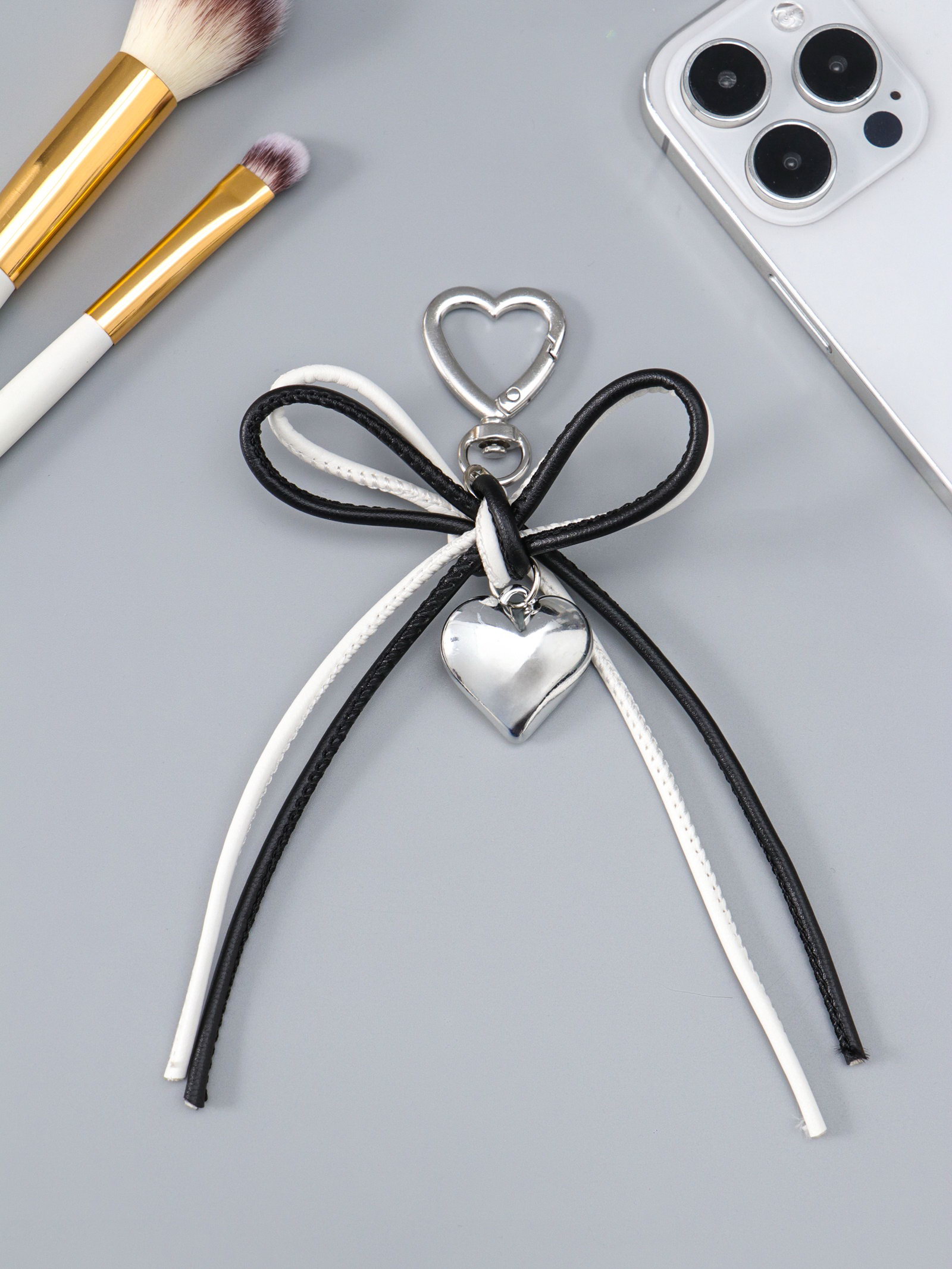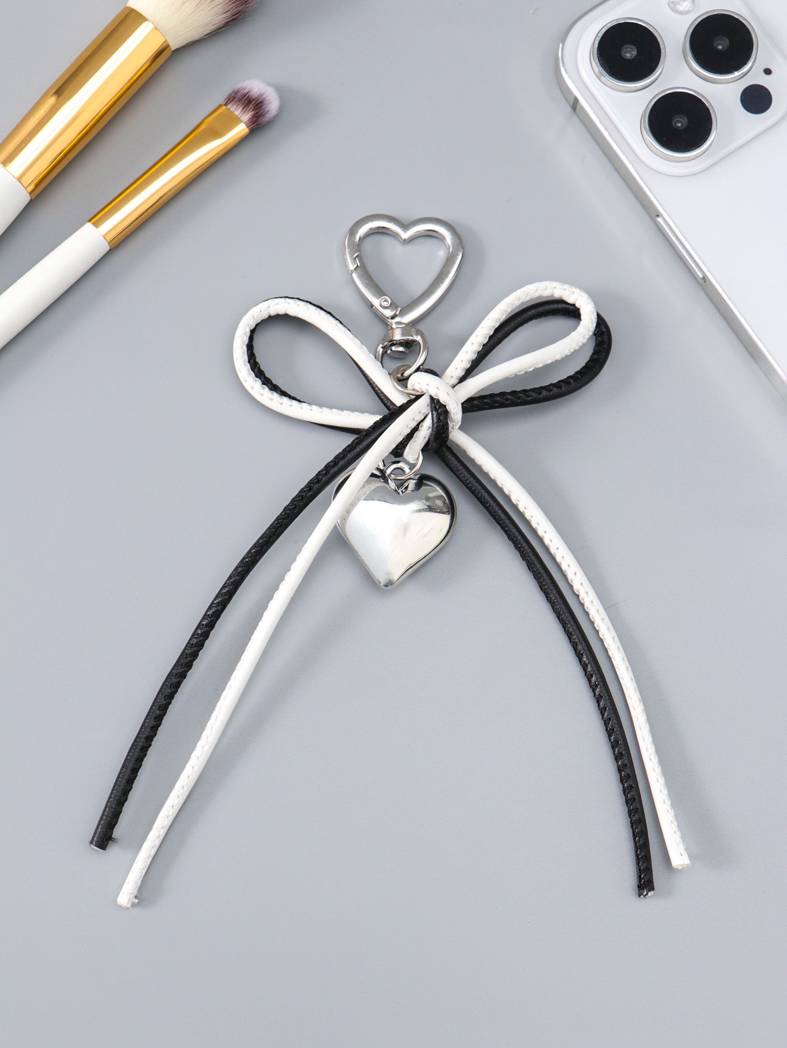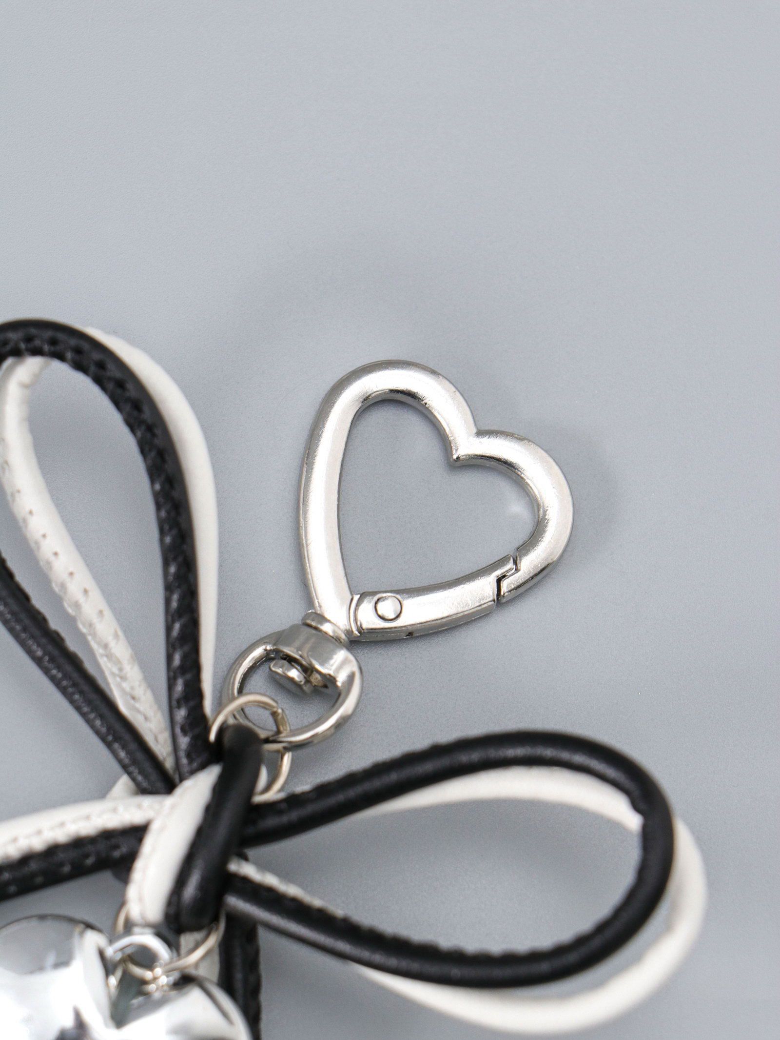 Брелок для ключей на карабине "Двойной бант с сердцем", на сумку, рюкзак, бело-чёрный, 14x9x1.5 см, 9x14x1.5 см., Китай