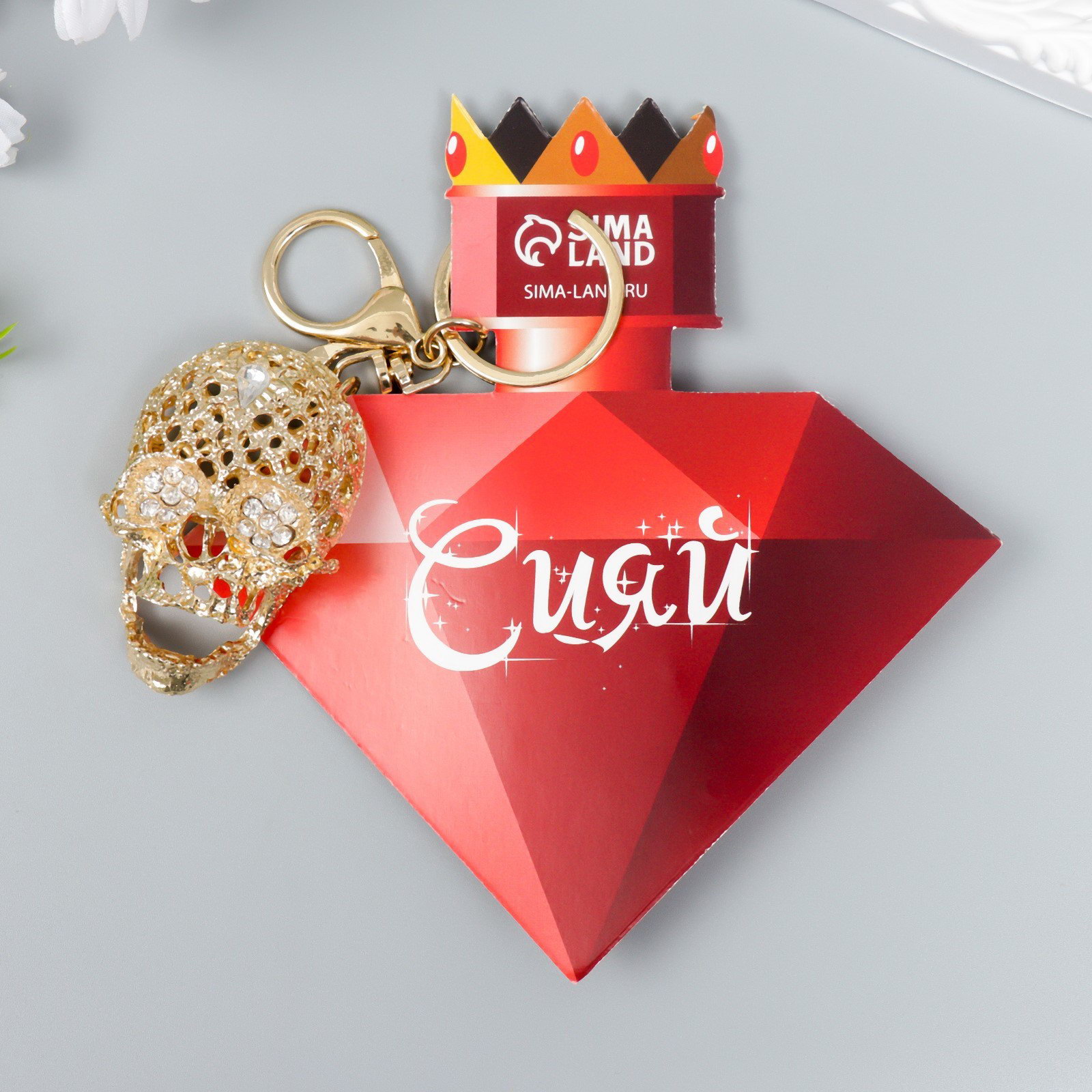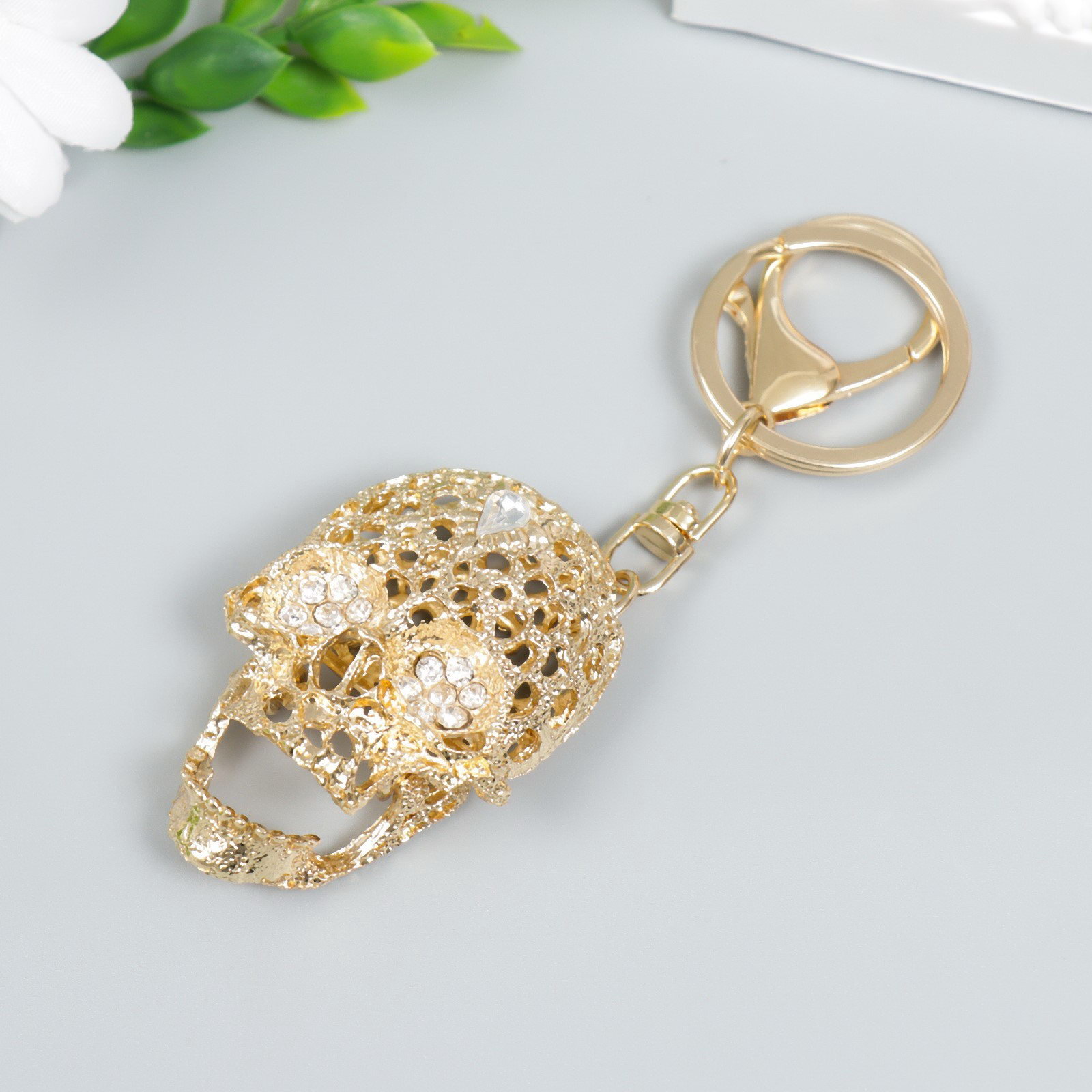 Брелок для ключей на кольце с карабином "Ажурный череп", металл, эмаль, стразы, 11.6x3.7 см, 3.7x11.6 см., Китай
