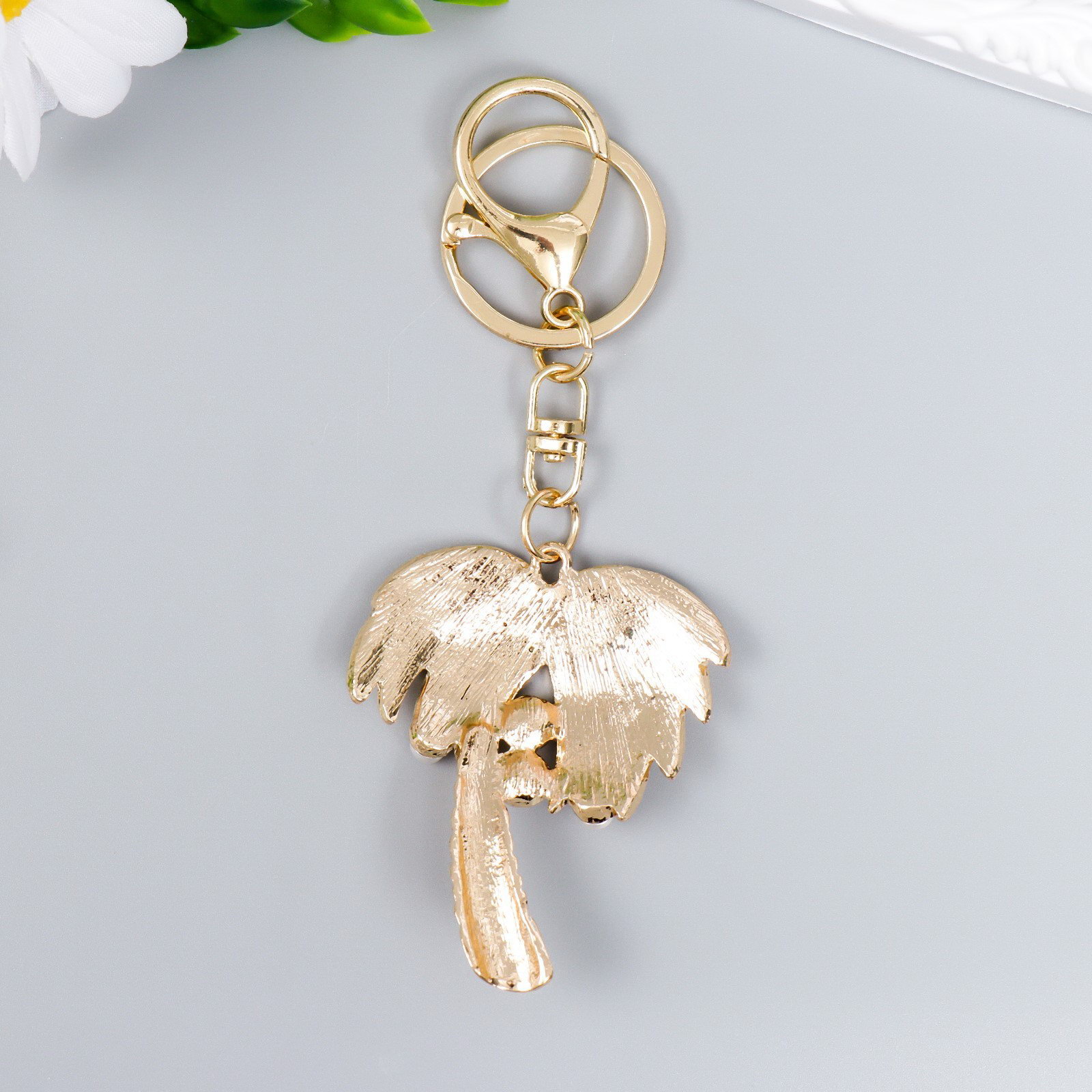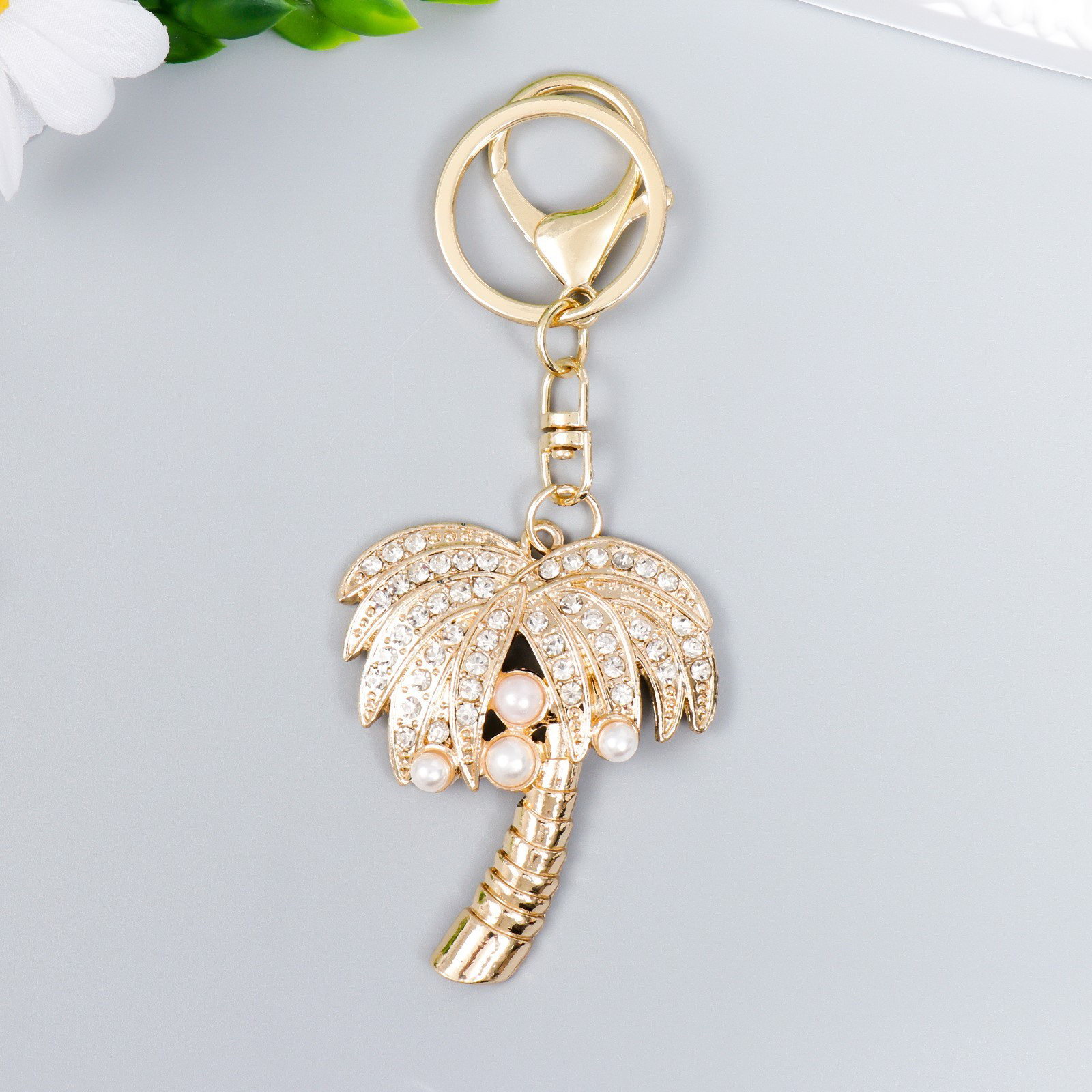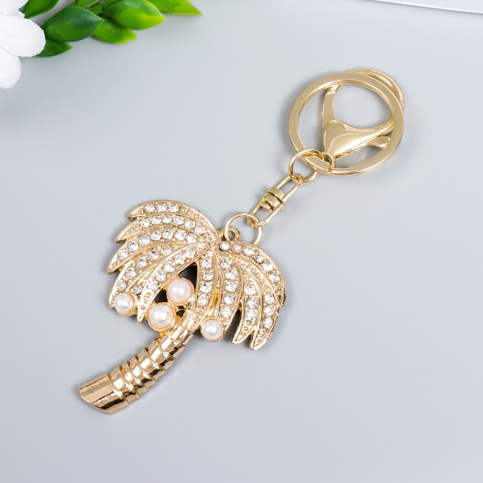 Брелок металл с карабином, эмаль, стразы "Пальма с жемчугом" 13х4.4 см, 4.4x13 см., Китай