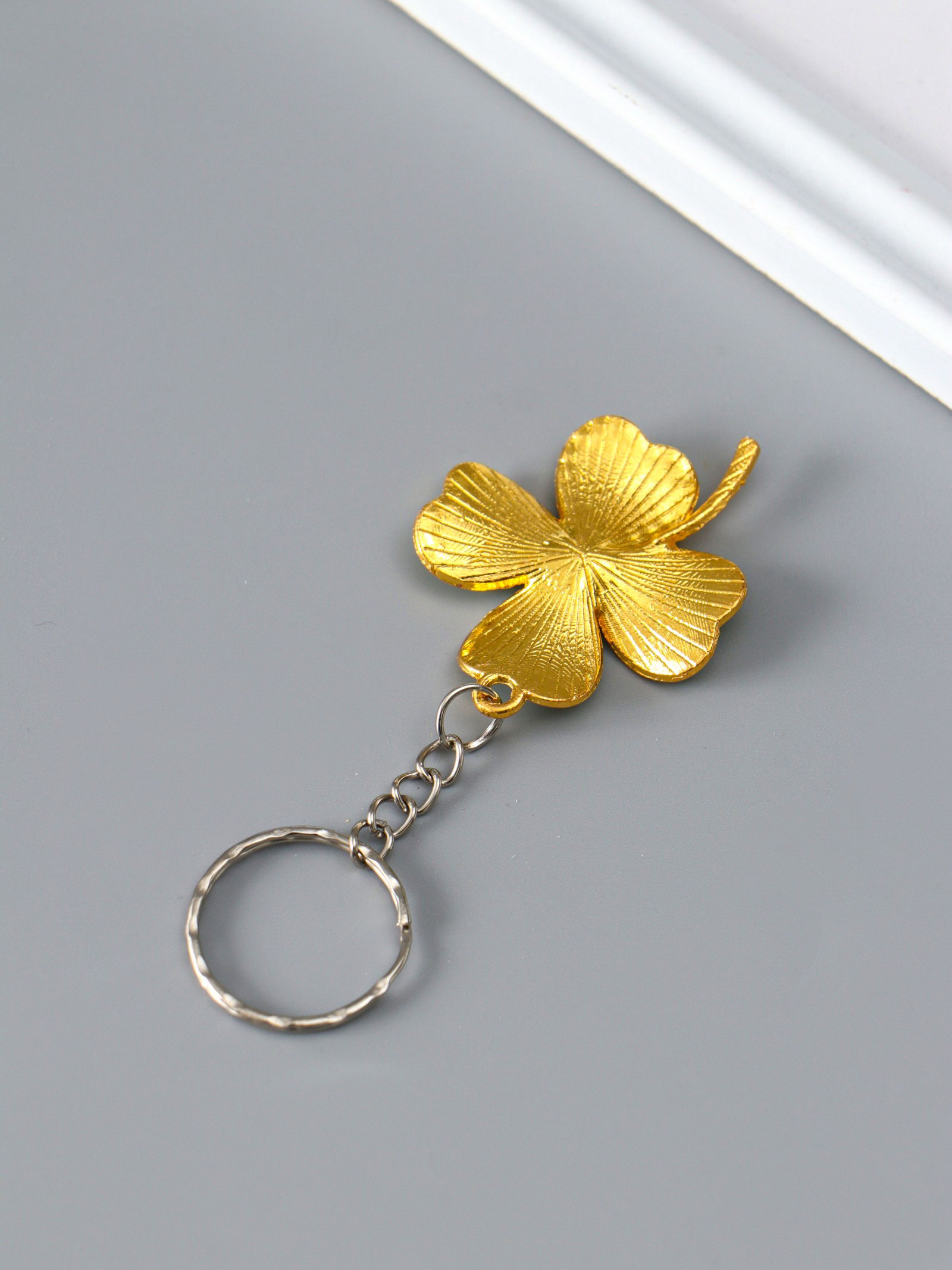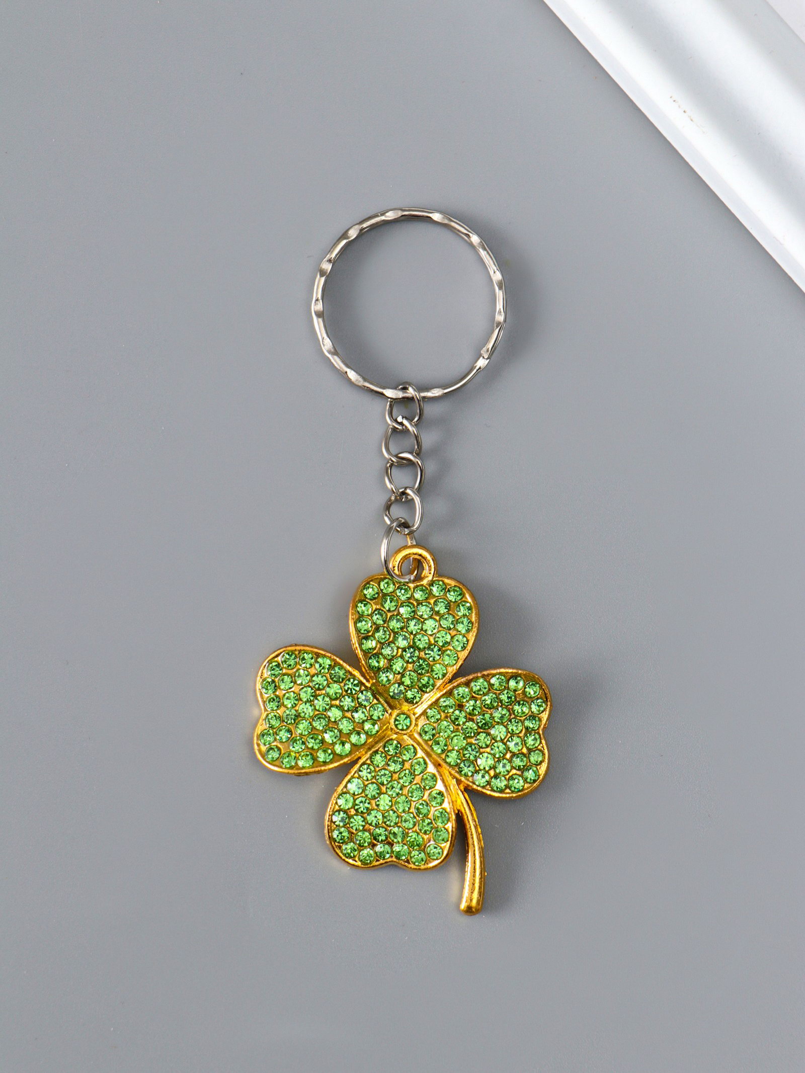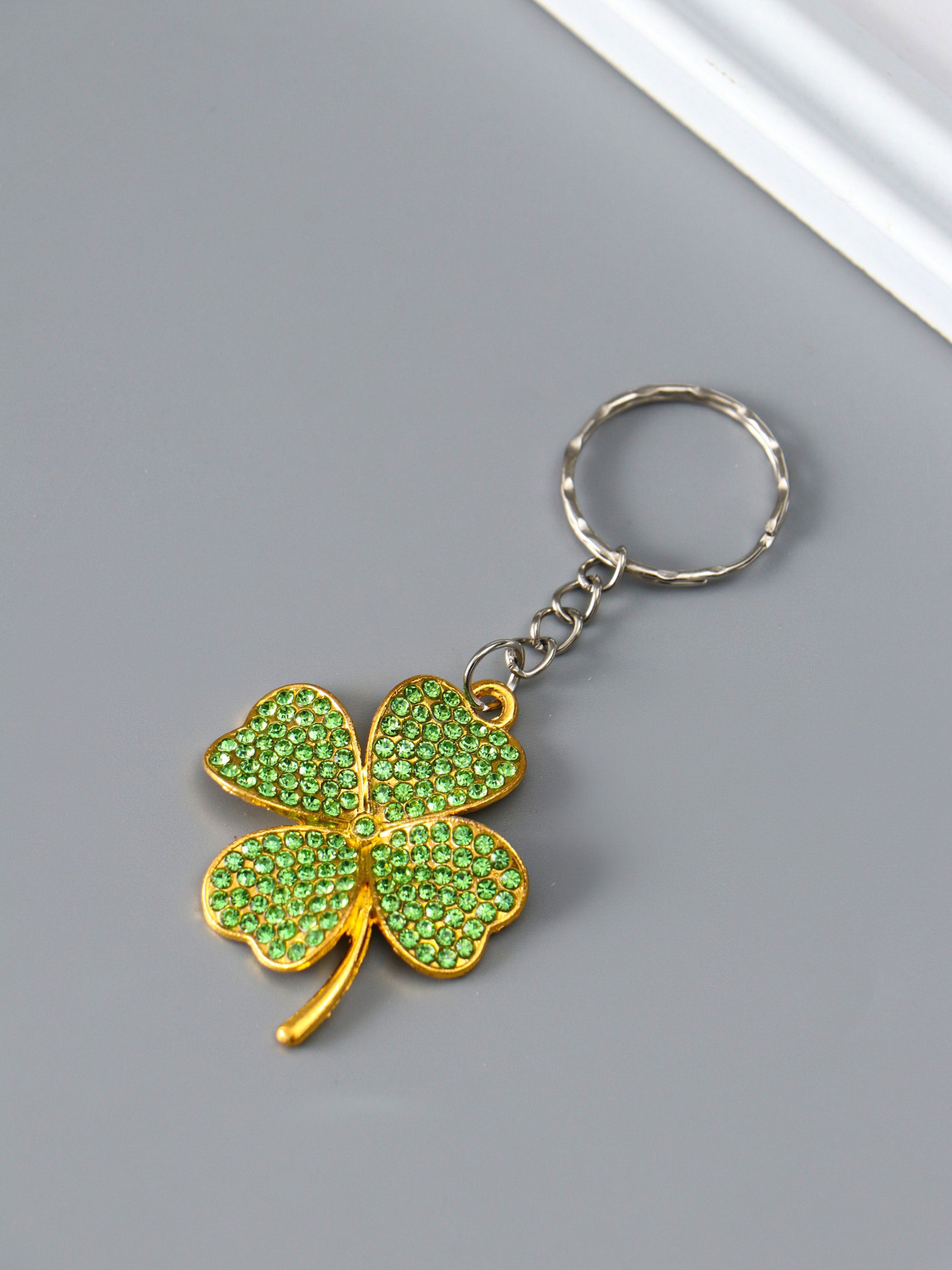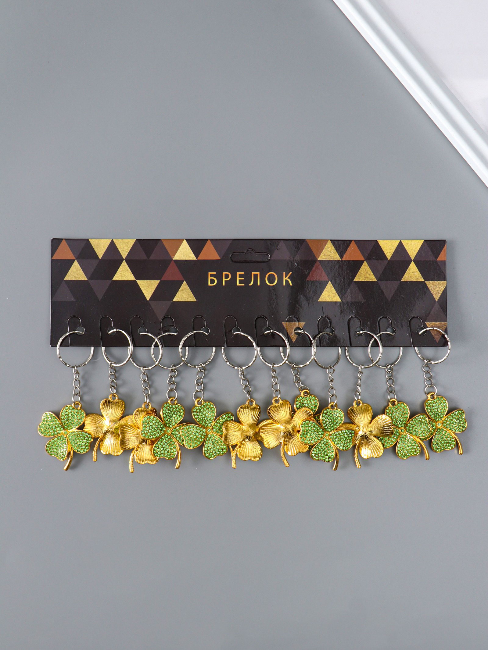 Брелок металл со стразами "Клевер" золото 3.8х3.8х0.3 см, 3.8x3.8x0.3 см., Китай