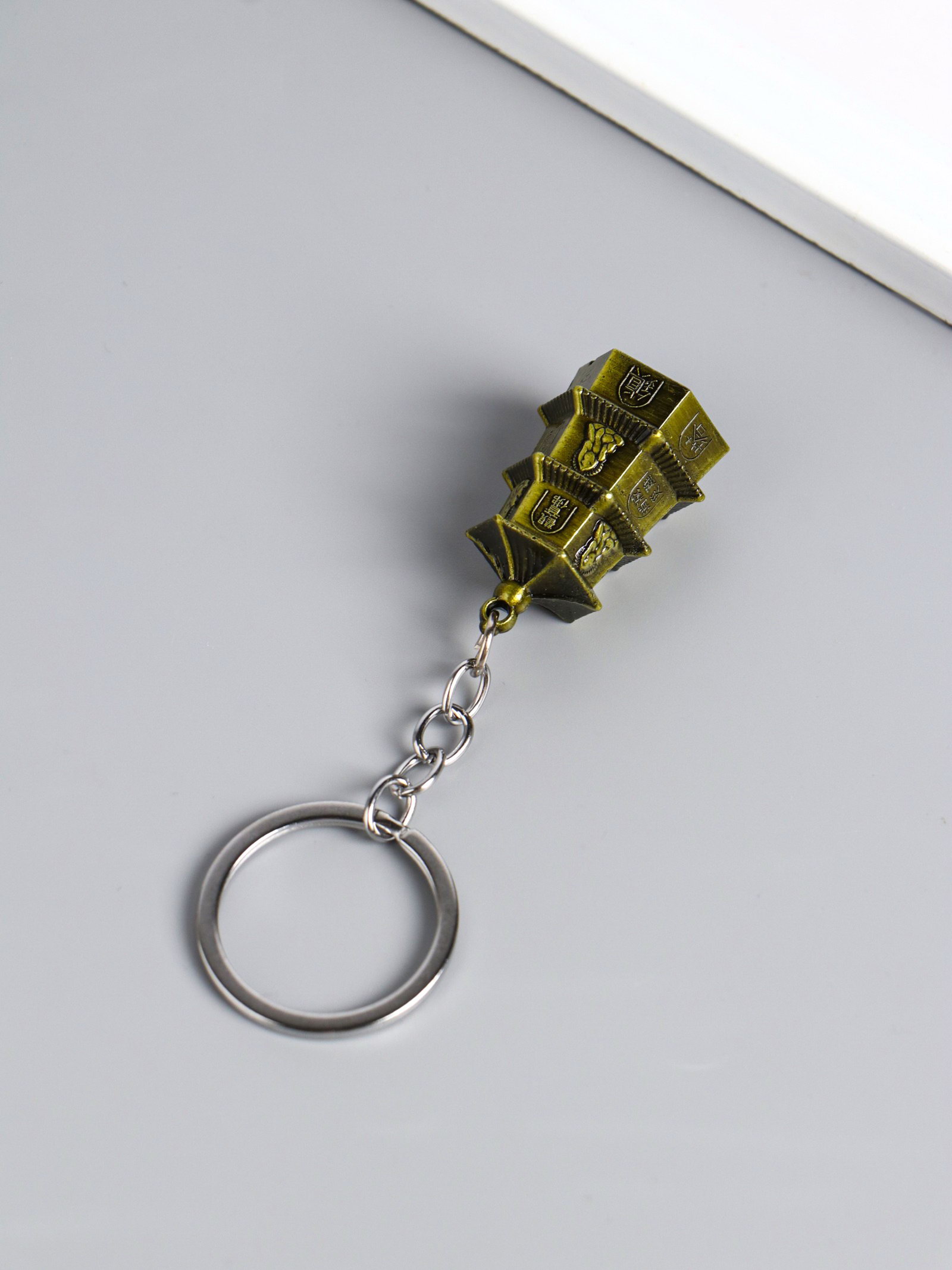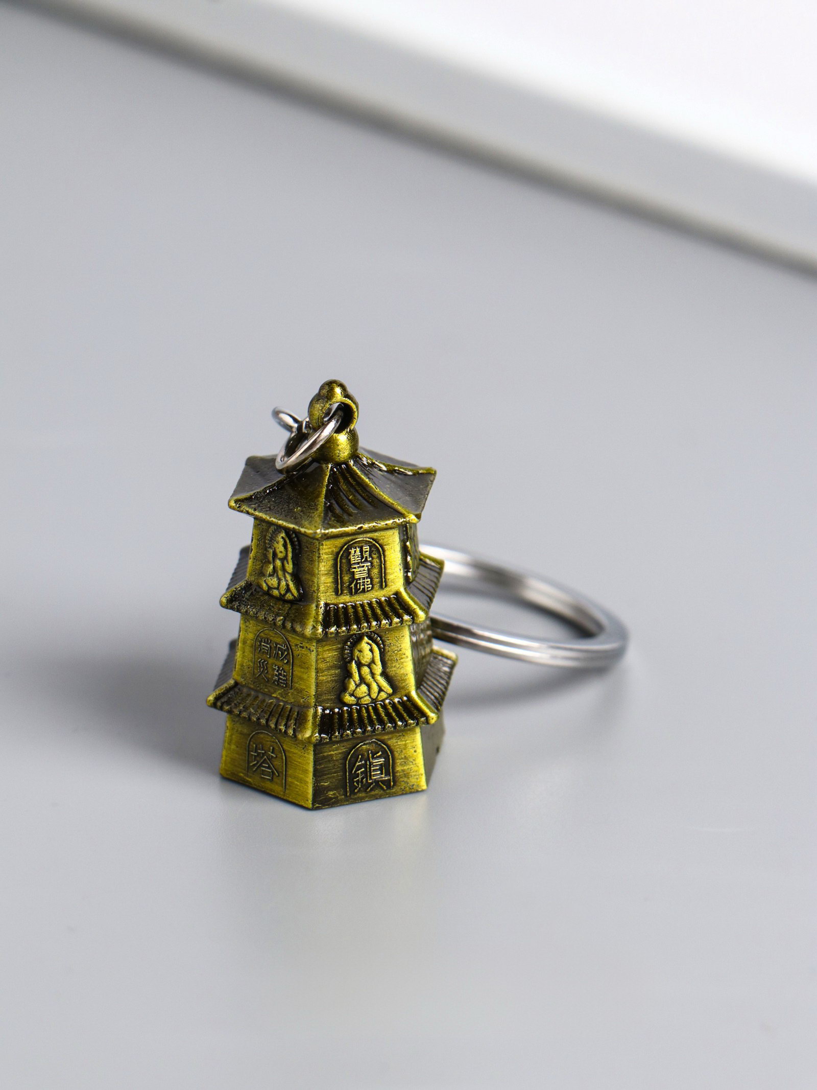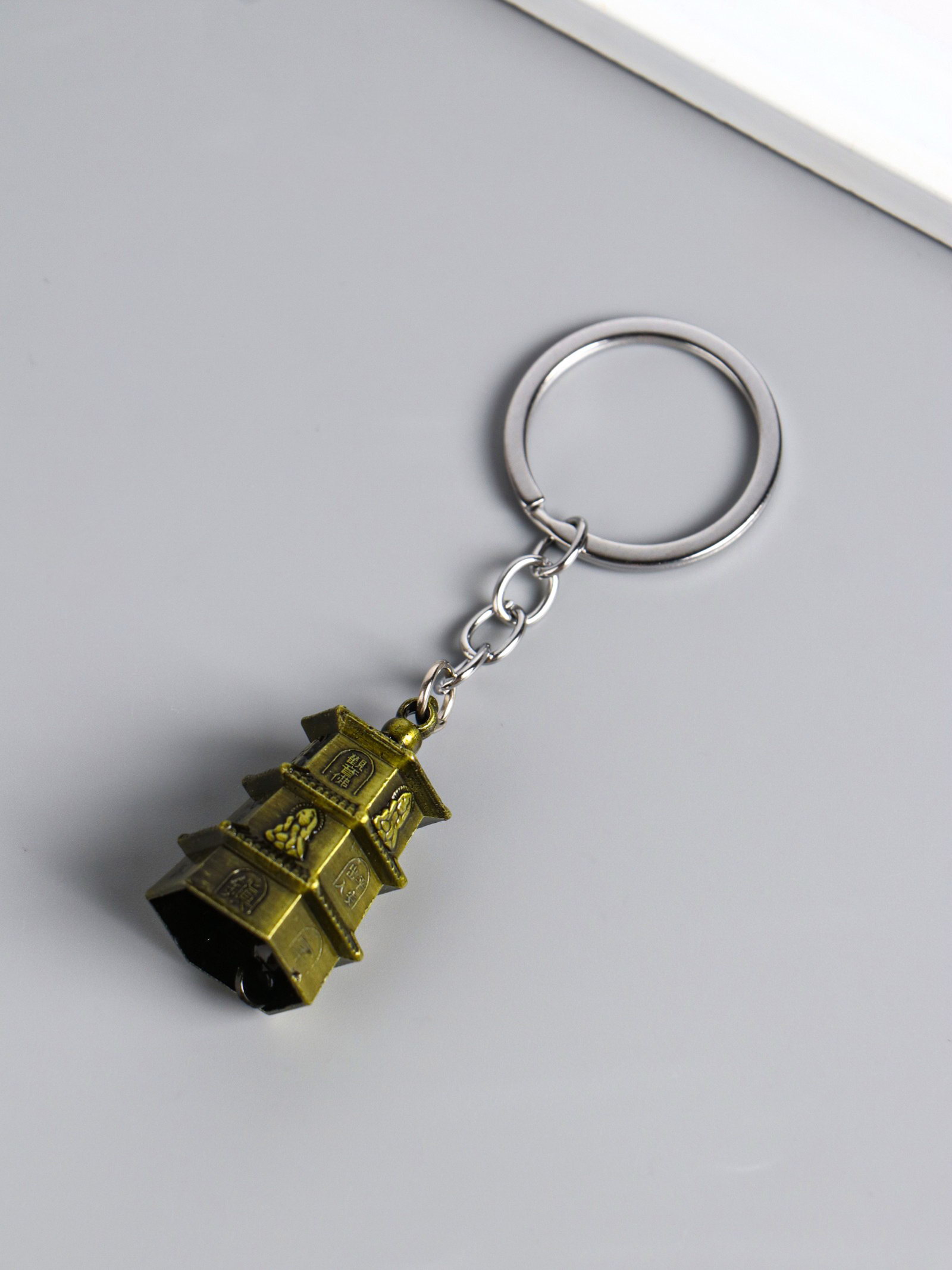 Брелок для ключей на кольце "Нэцкэ: Пагода 3 яруса", металл под бронзу, 3.8x2.5x2.2 см, 2.5x3.8x2.2 см., Китай