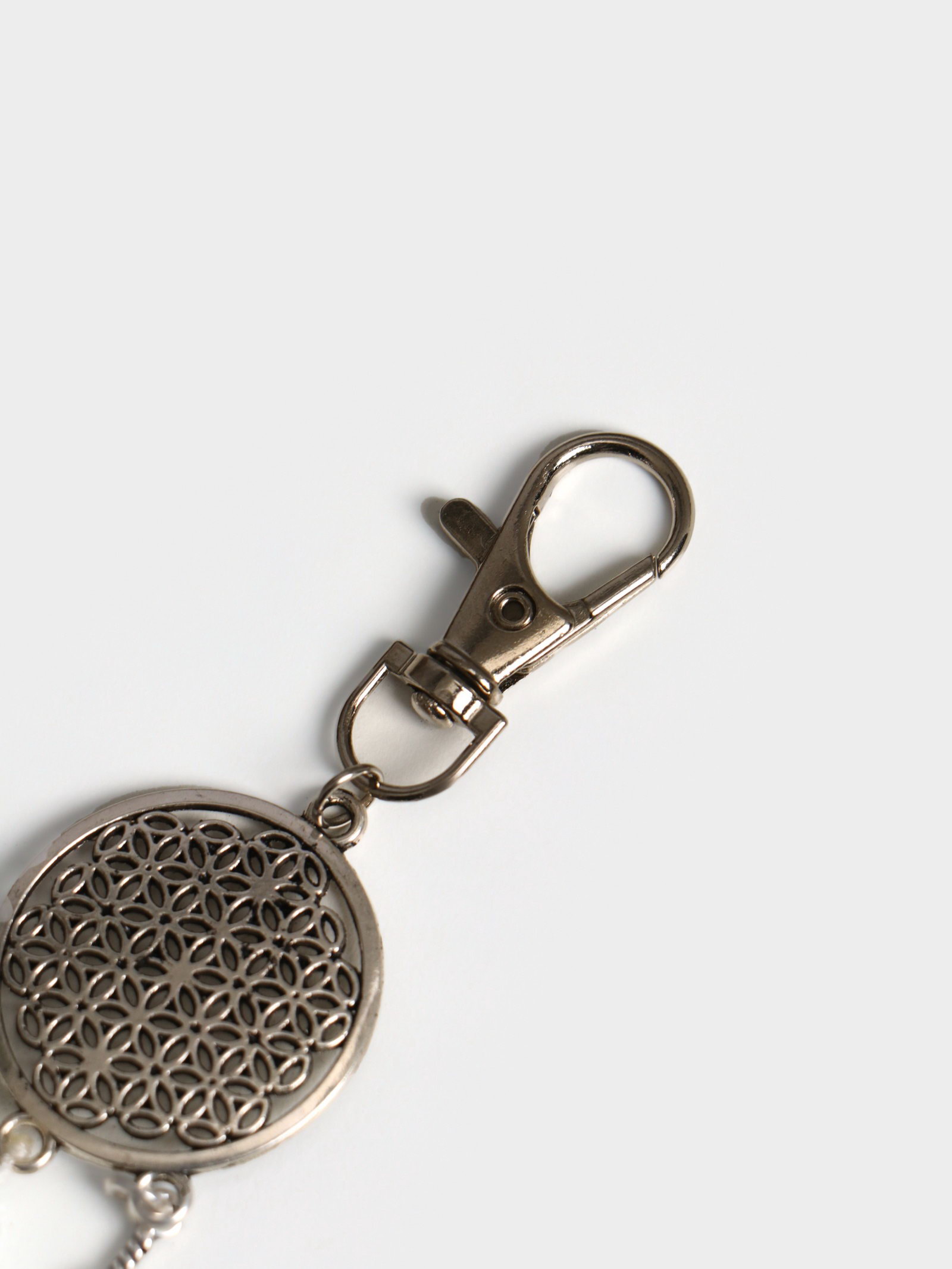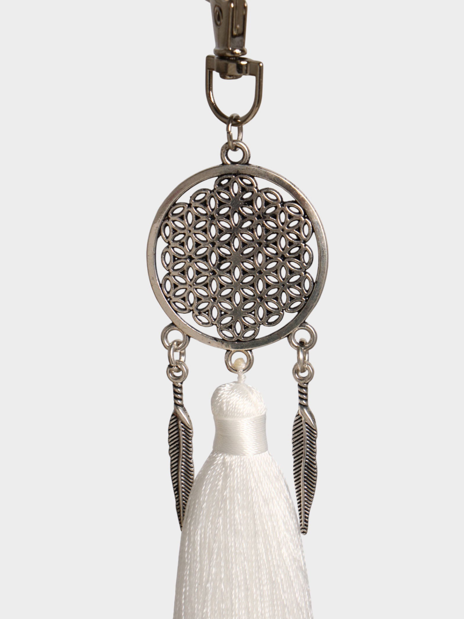 Брелок-кисточка "Ловец снов" 17 см, цв. белый, серебристый, 3x17x1 см., Индонезия