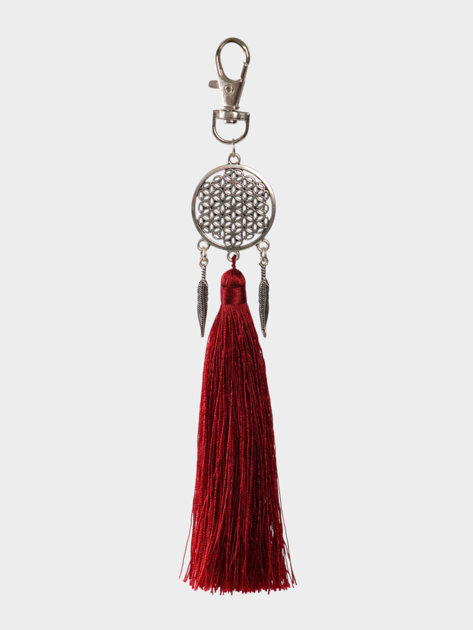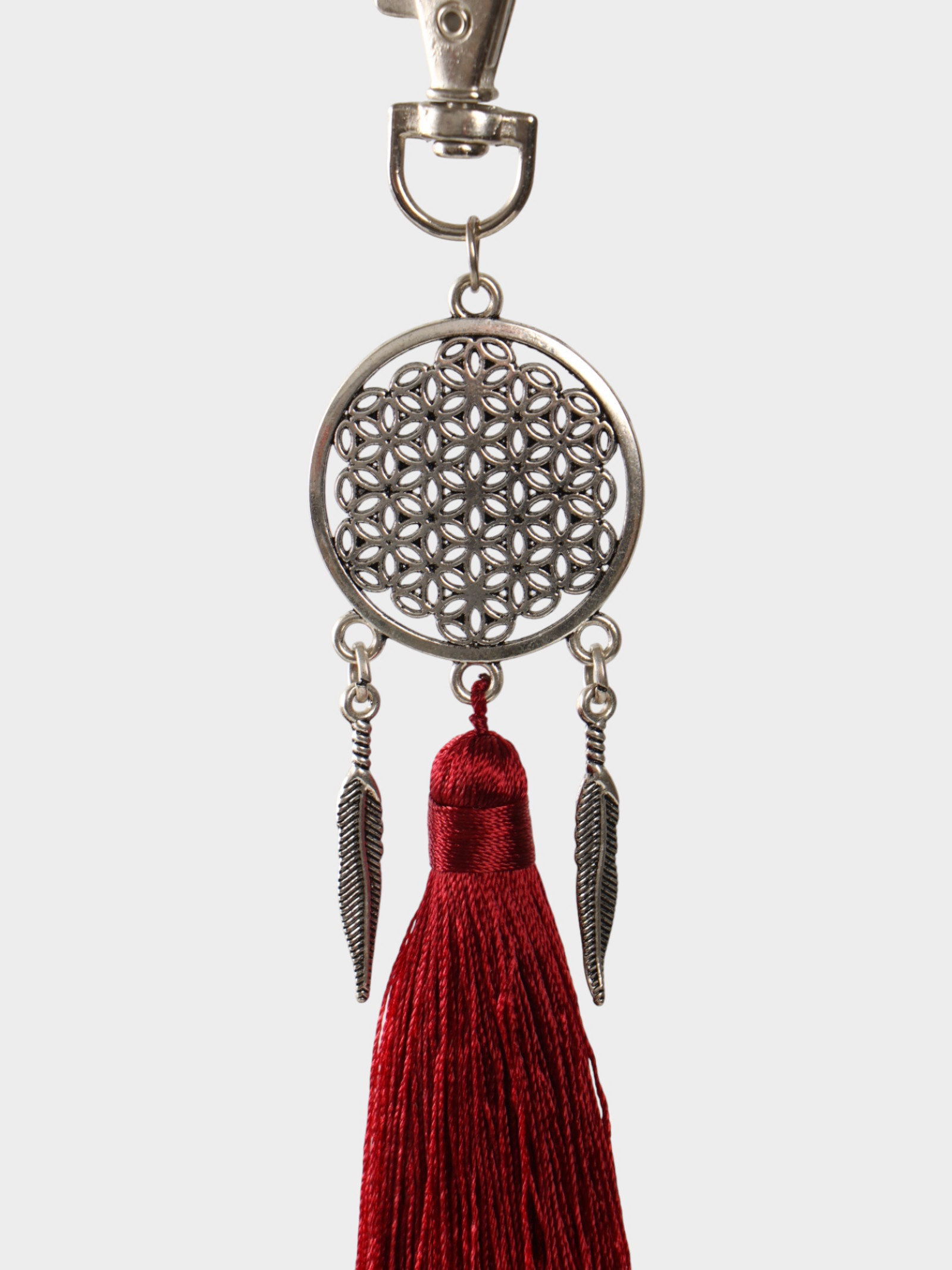 Брелок-кисточка "Ловец снов" 17 см, цв. бордовый, серебристый, 3x17x1 см., Индонезия