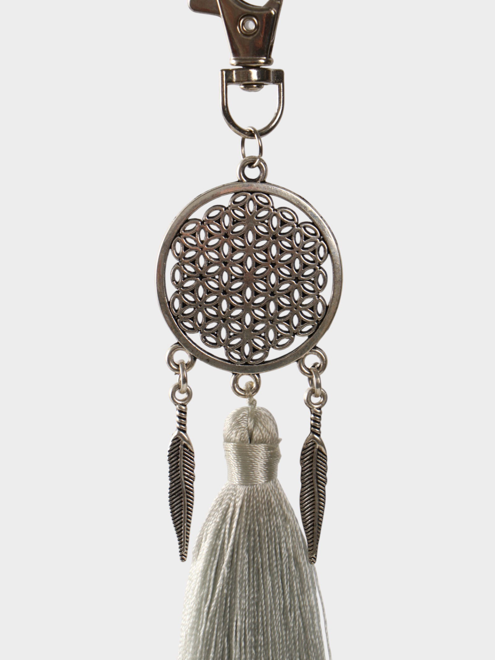 Брелок-кисточка "Ловец снов" 17 см, цв. серебристый, 3x17x1 см., Индонезия