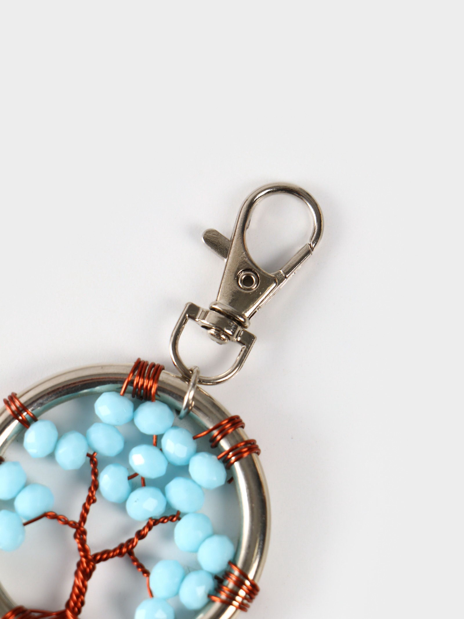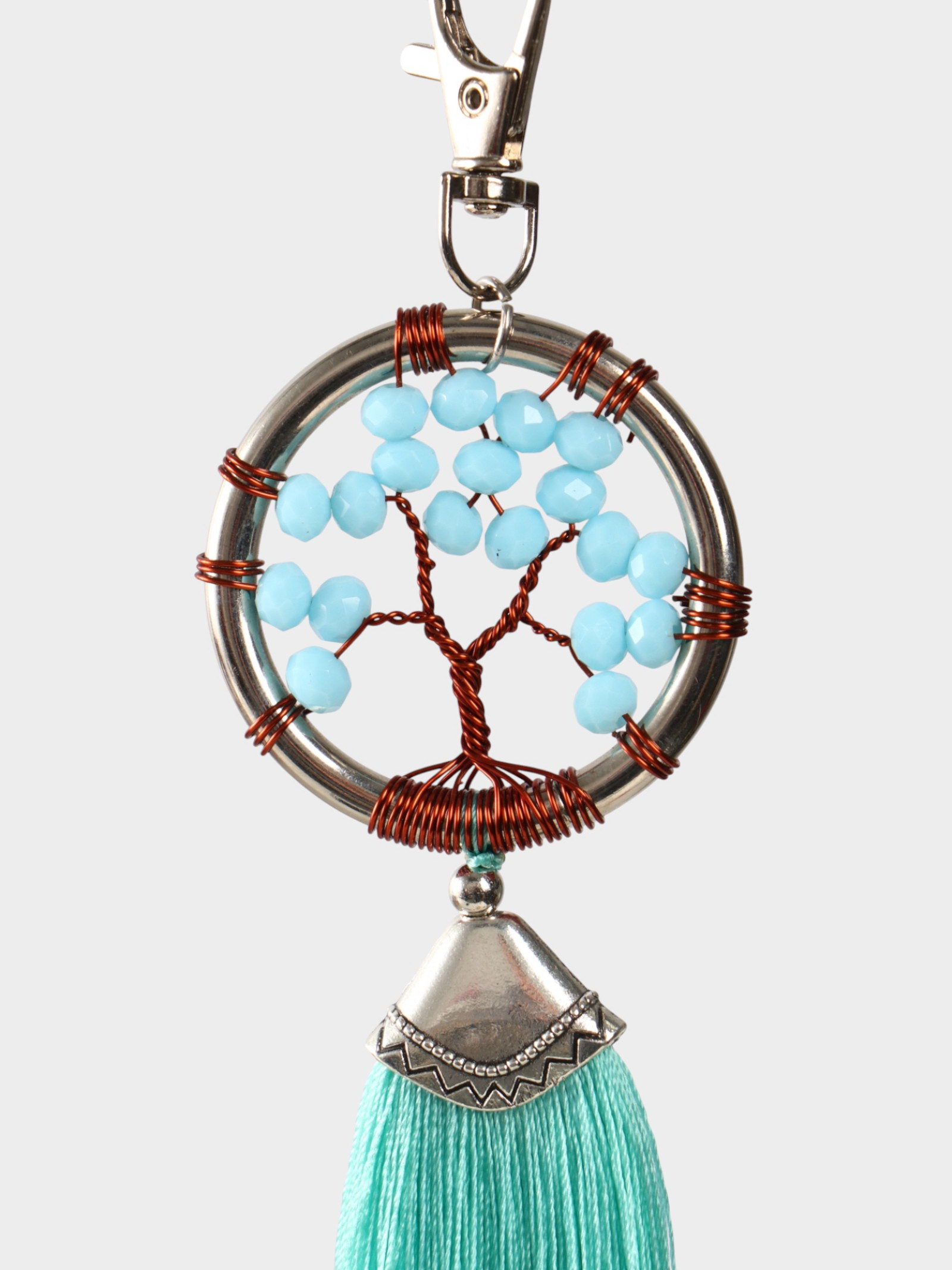 Брелок ловец снов "Древо жизни" 19 см, цв. бирюзовый, 5x9x2 см., Индонезия