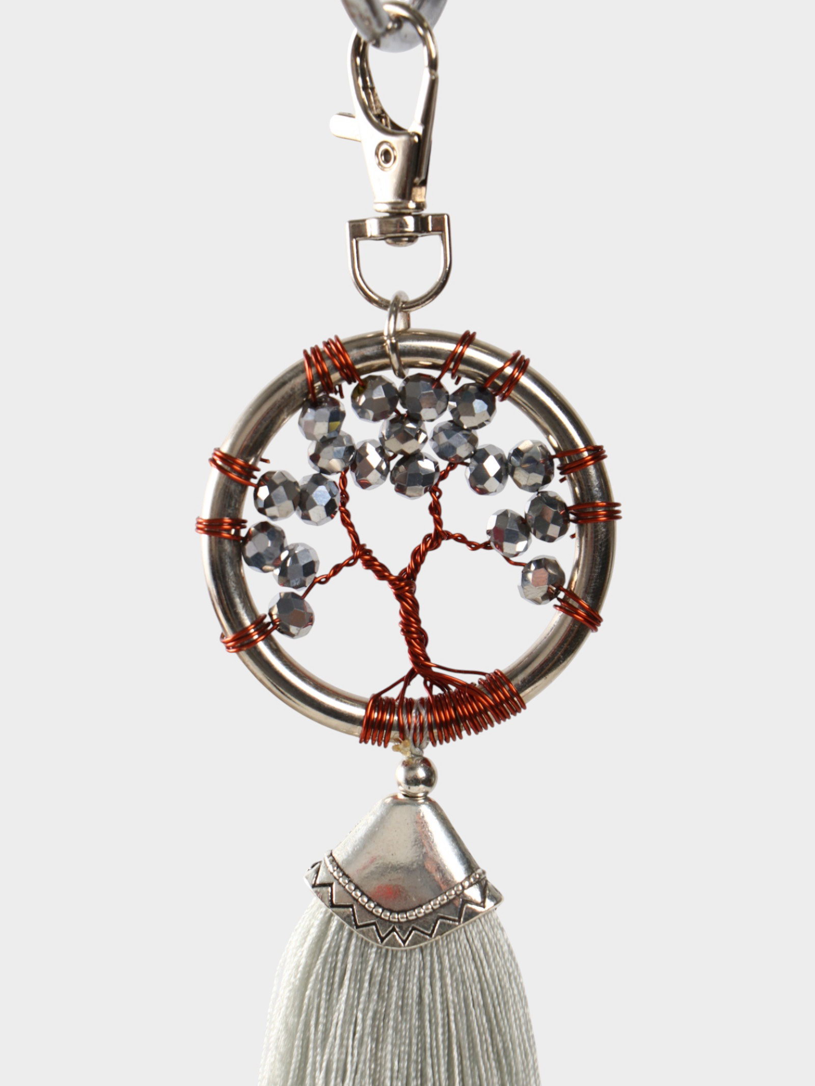 Брелок ловец снов "Древо жизни" 19 см, цв. серебристый, 5x9x2 см., Индонезия