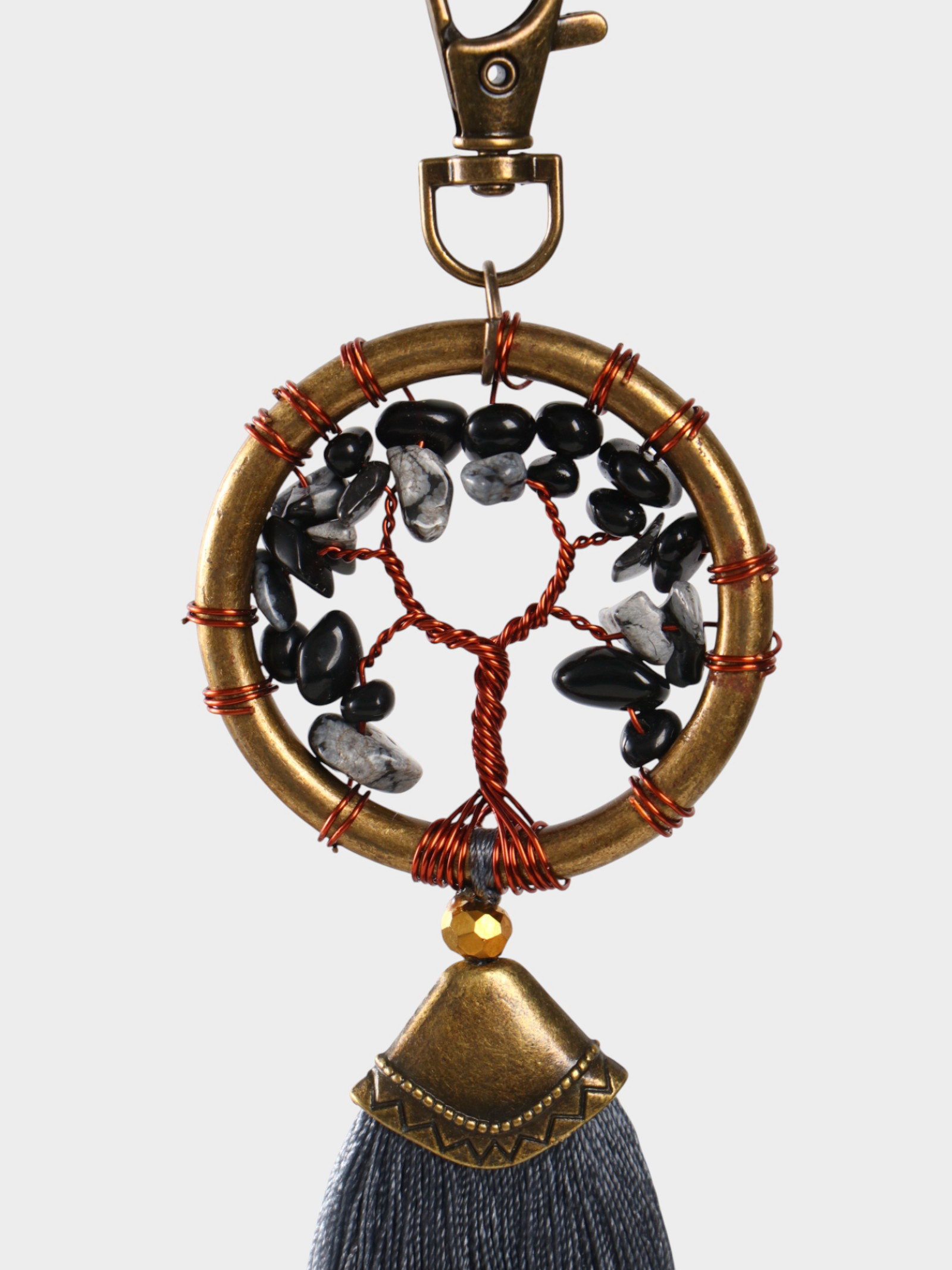 Брелок ловец снов "Великое древо" 19 см, цв. серый, 5x9x2 см., Индонезия