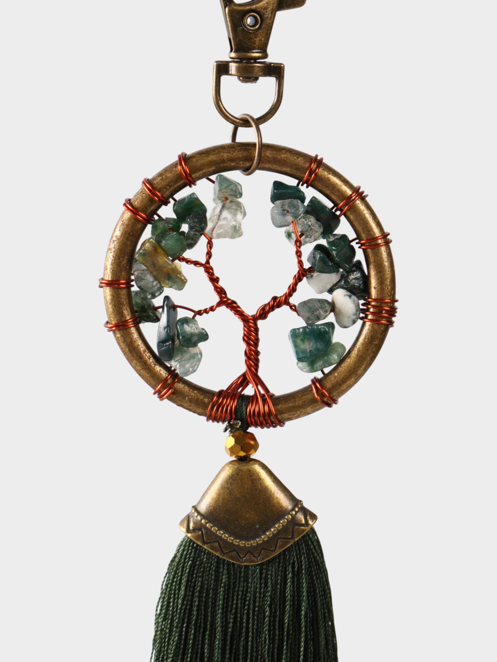Брелок ловец снов "Великое древо" 19 см, цв. тёмно-зелёный, 5x9x2 см., Индонезия