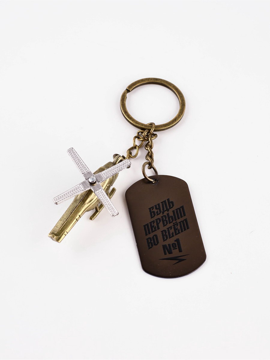 Брелок для ключей металлический на 23 февраля "Будь первым во всём", 6x16x1.5 см., Сима-ленд, Китай