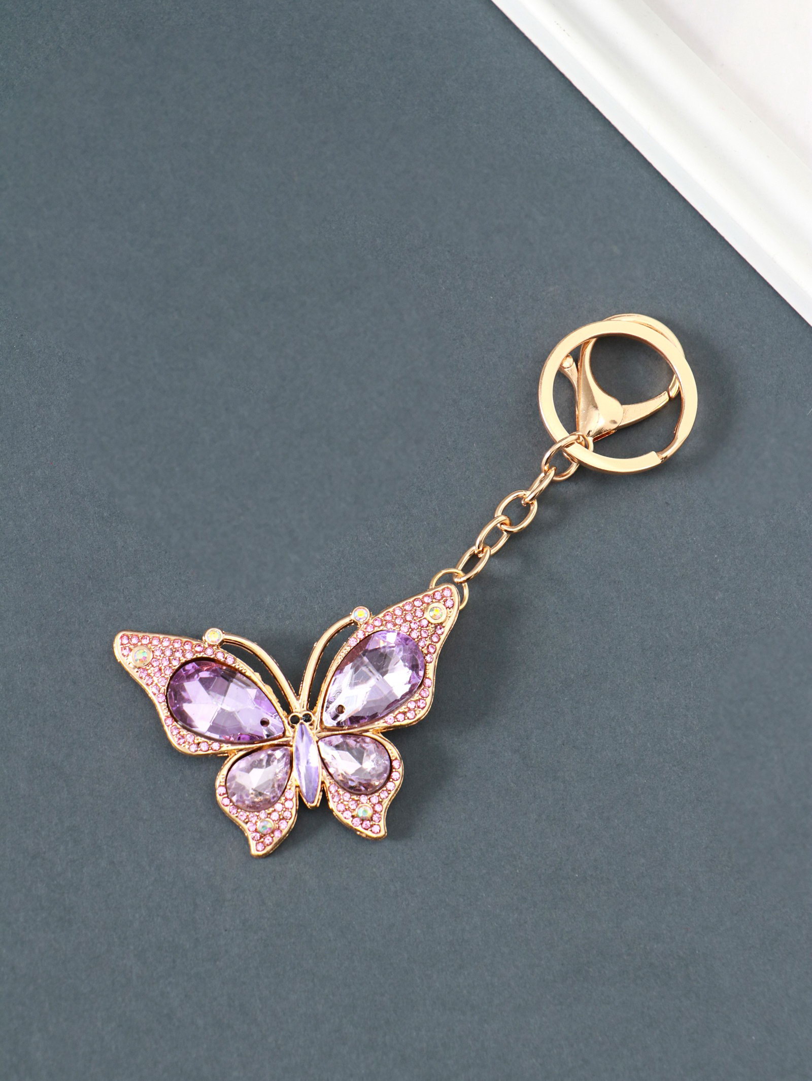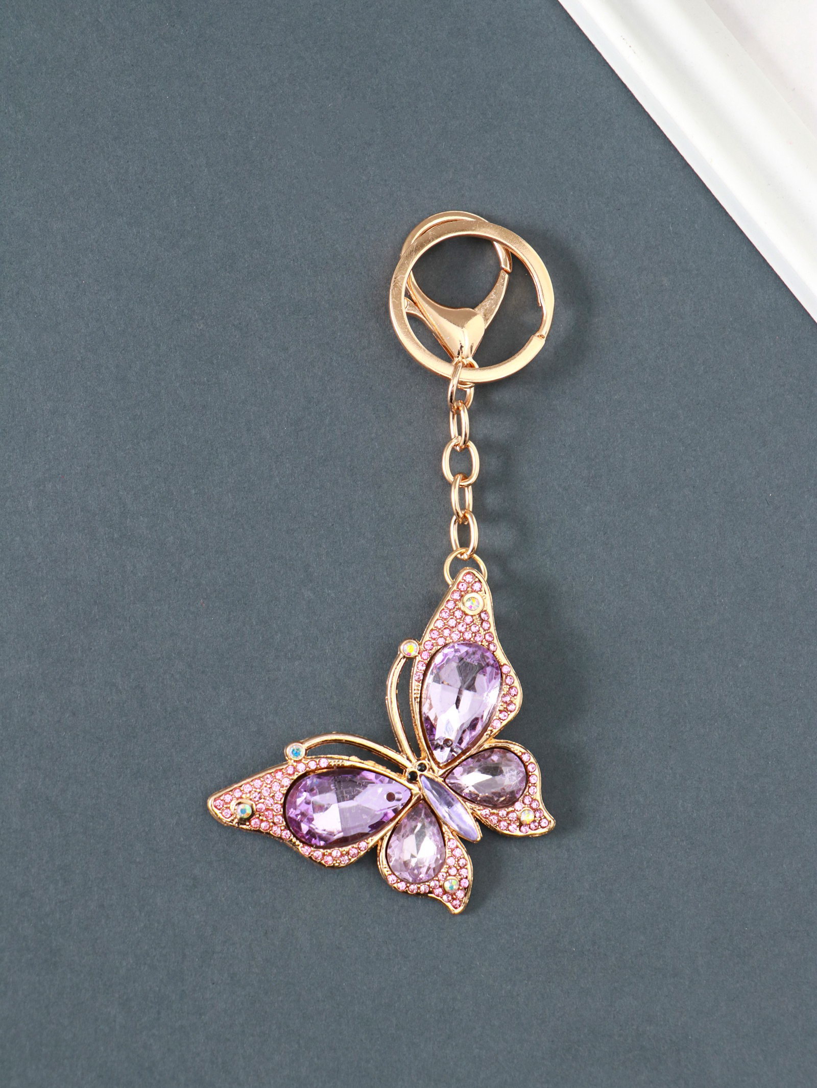 Брелок для ключей на кольце, карабине "Бабочка", розовый, металл, стразы, 4.7x6.4x0.8 см, 6.4x4.7x0.8 см., Китай