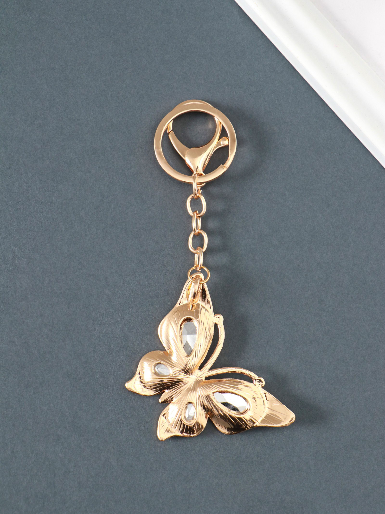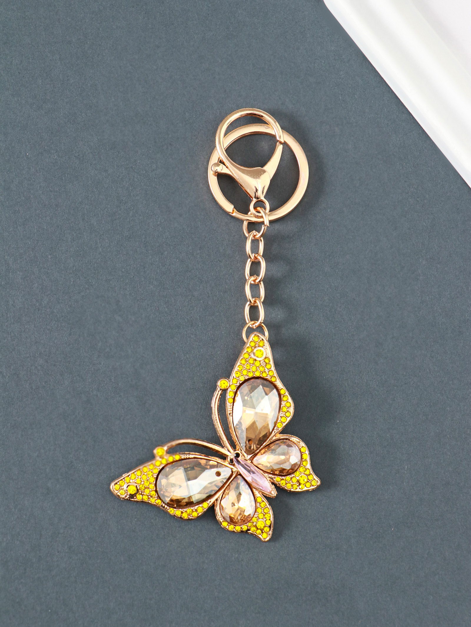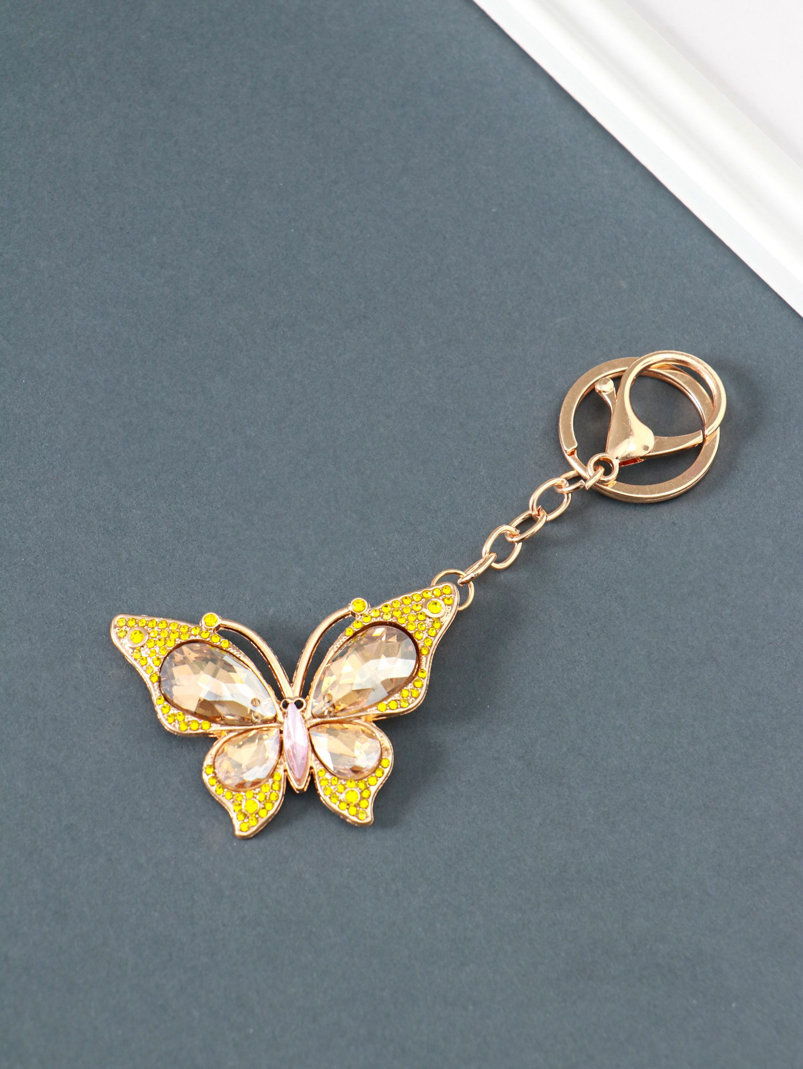 Брелок для ключей на кольце, карабине "Бабочка", жёлтый, металл, стразы, 4.7x6.4x0.8 см, 6.4x4.7x0.8 см., Китай