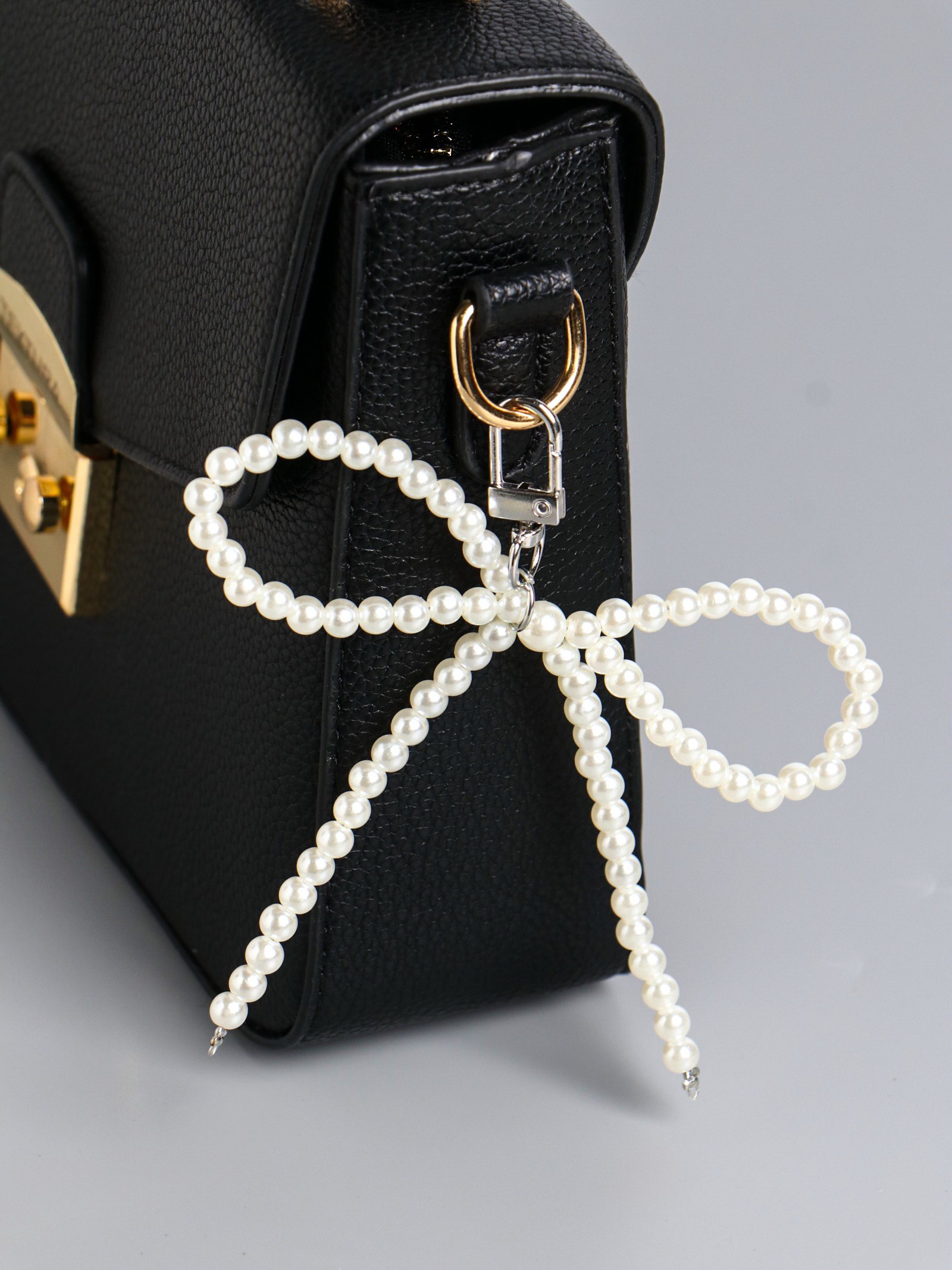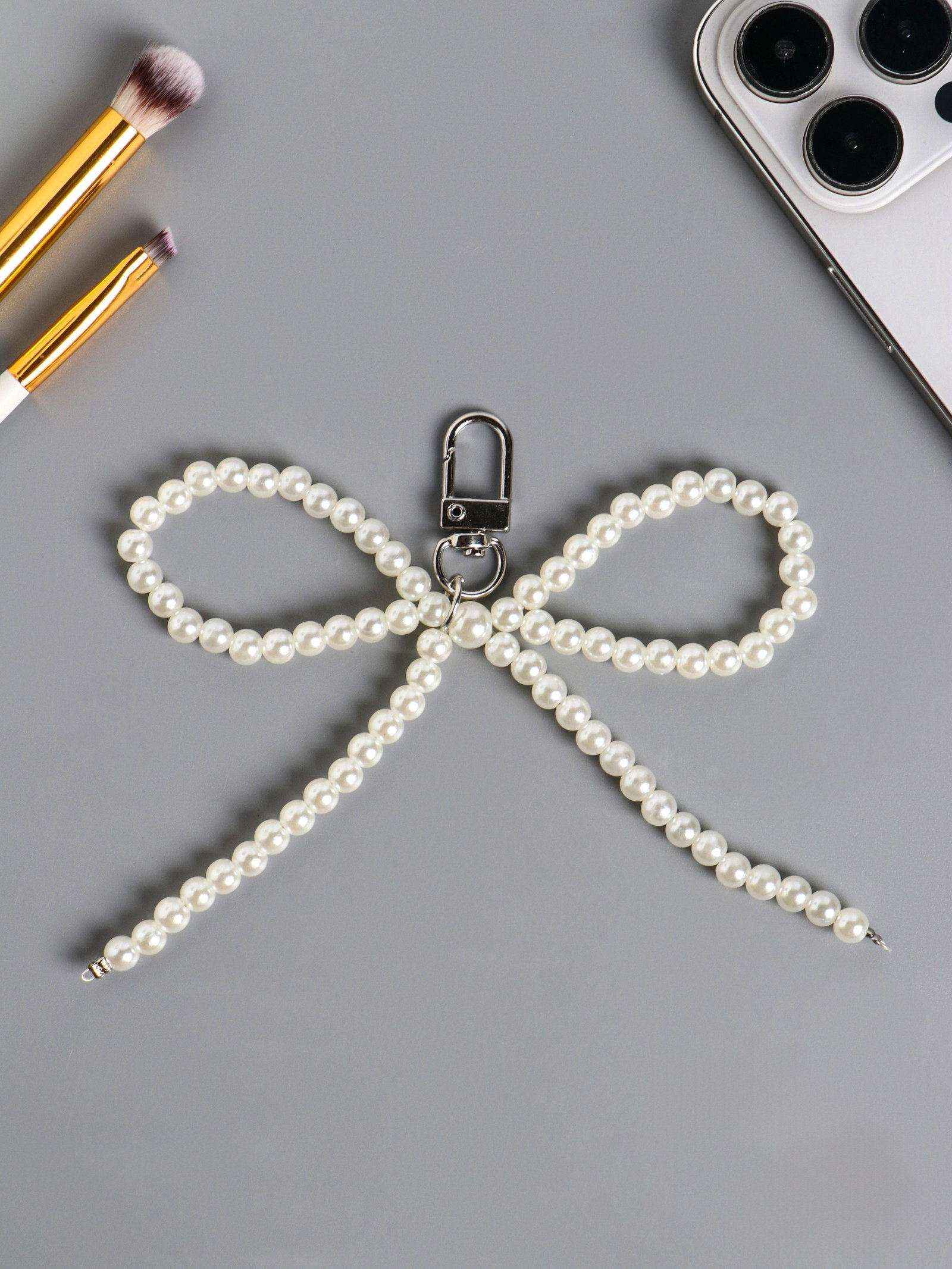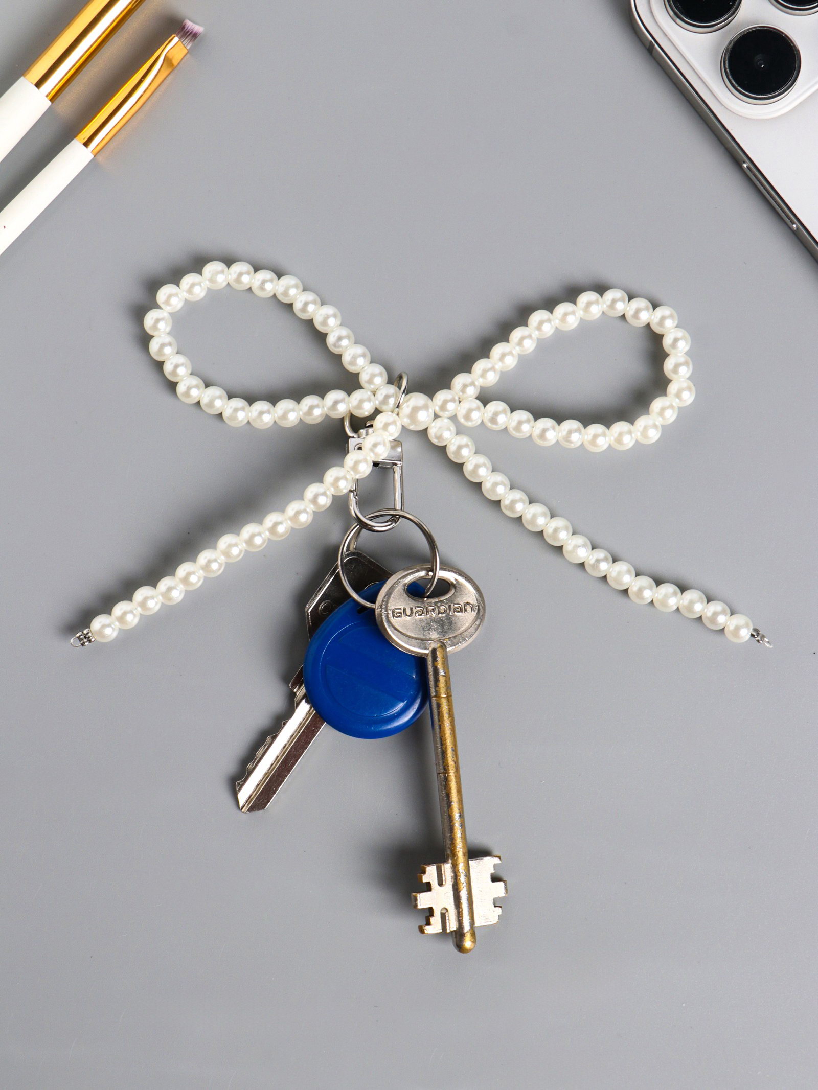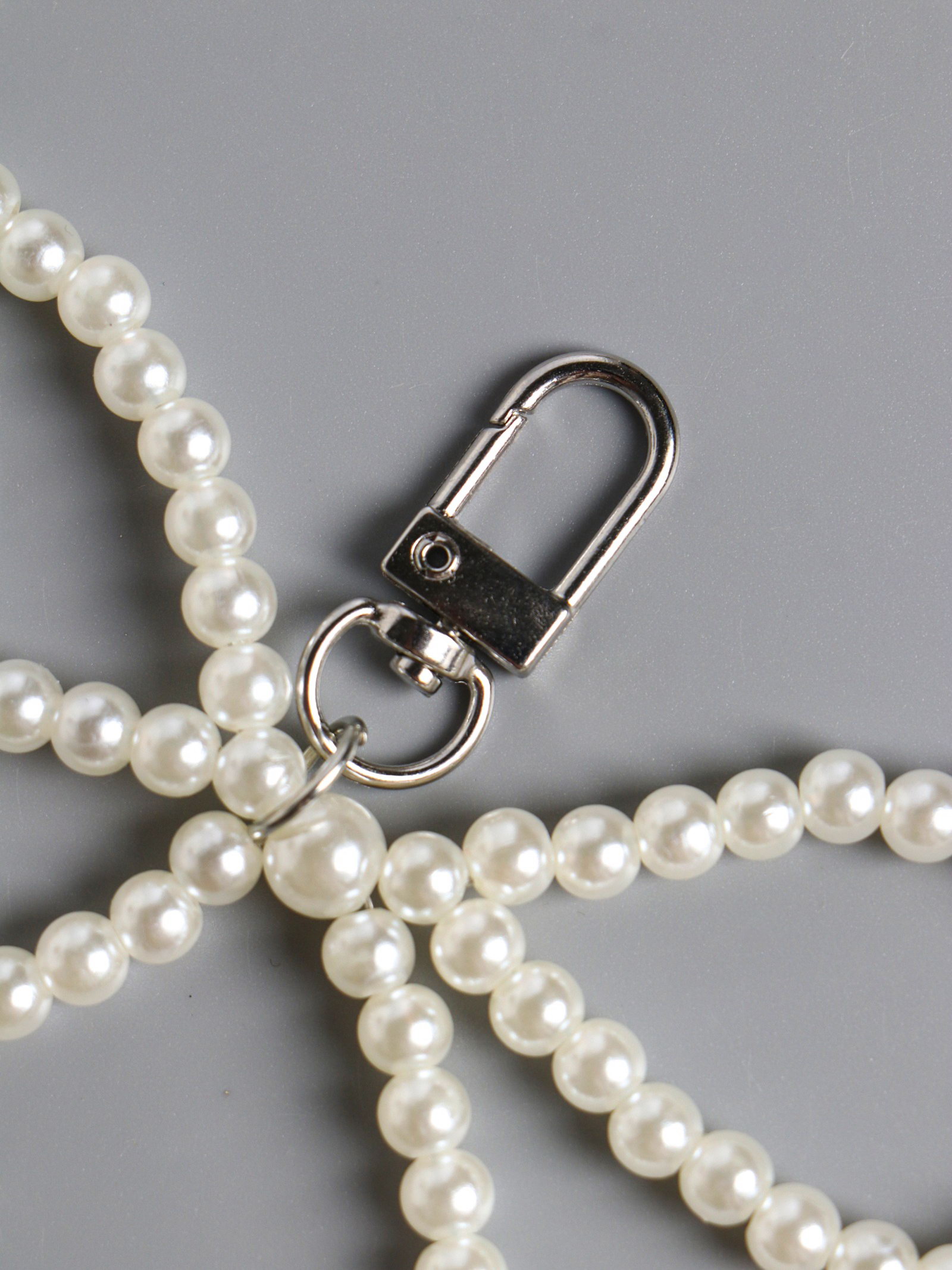 Брелок для ключей на карабине "Жемчужный бант", на сумку, рюкзак, бусины d=0.8 см, 9.5x11x1.6 см, 11x9.5x1.6 см., Китай
