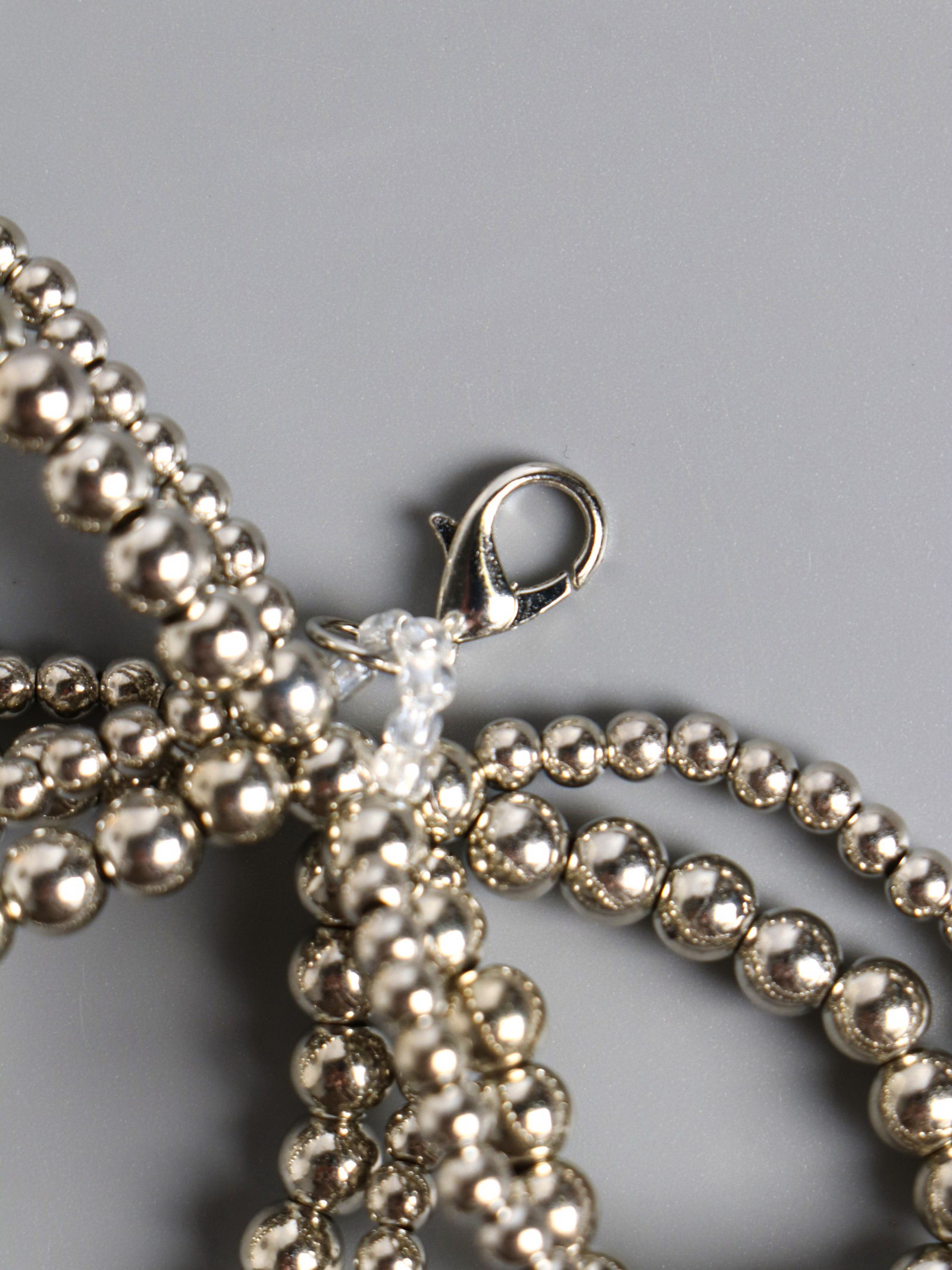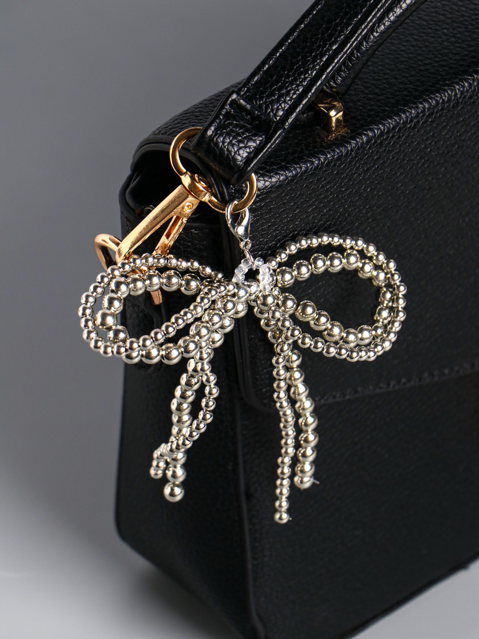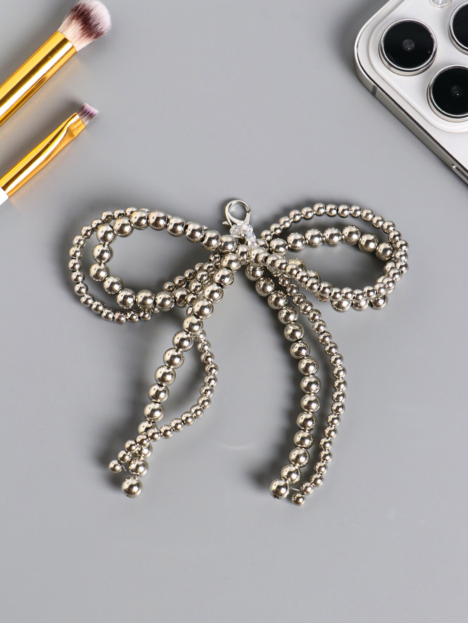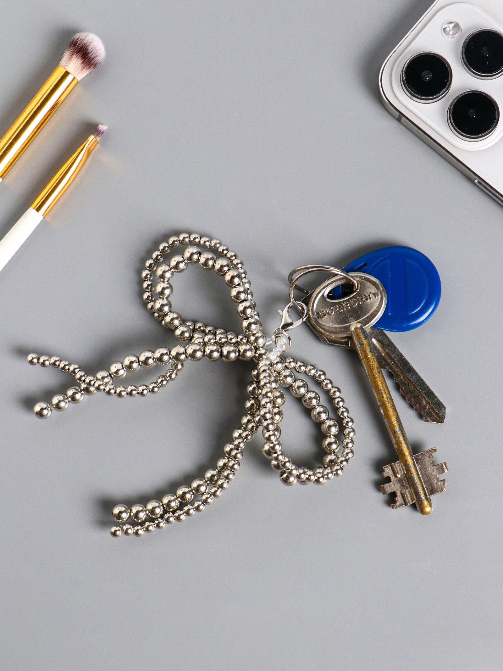 Брелок для ключей на карабине "Двойной бант", под серебро, на сумку, рюкзак, бусины d=0.4 и 0.5 см, 11.5x9.5x1 см, 9.5x11.5x1 см., Китай