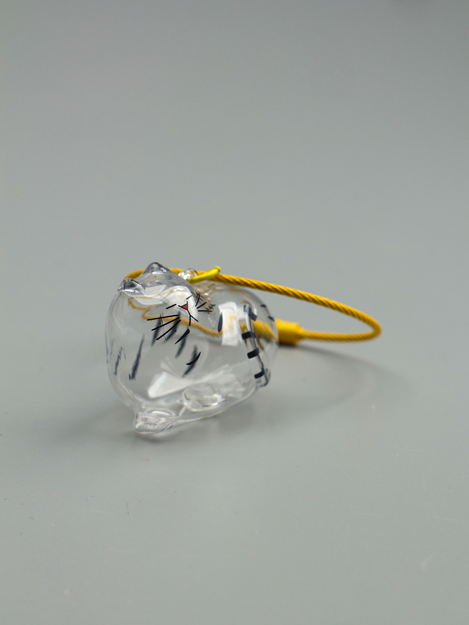 Брелок для шерсти кошачьей на тросе для ключей, рюкзака "Полосатый котик спит", капсула с секретом, трос d=5.2 см 2.5x3.8x3 см, 3.8x2.5x3 см., Китай