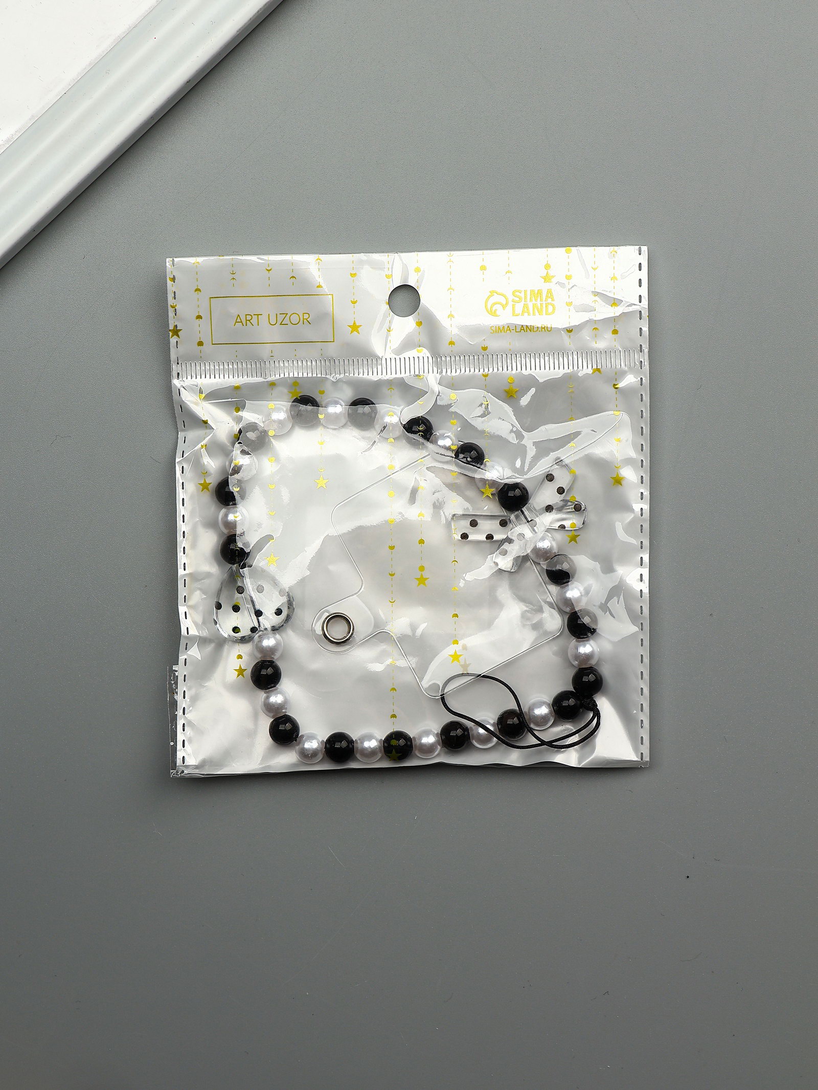Брелок на карабине "Бант и сердце" черно-белый 14.5 см, 14.5 см., Китай