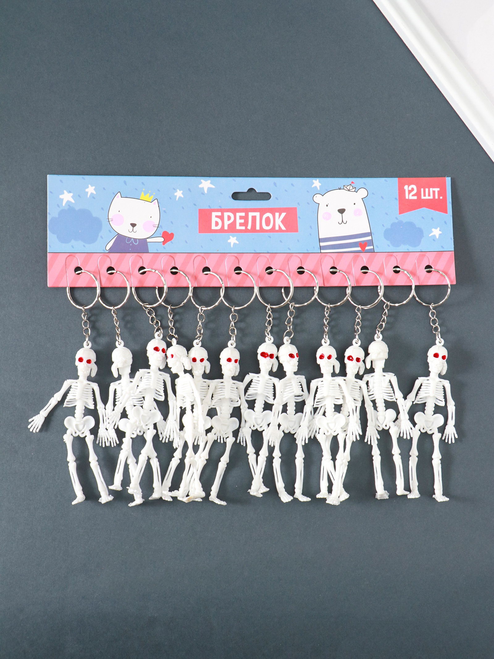 Брелок для ключей на кольце "Скелет в бандане", пластик, белый, 10x3.5x1 см, 5x10x1 см., Китай
