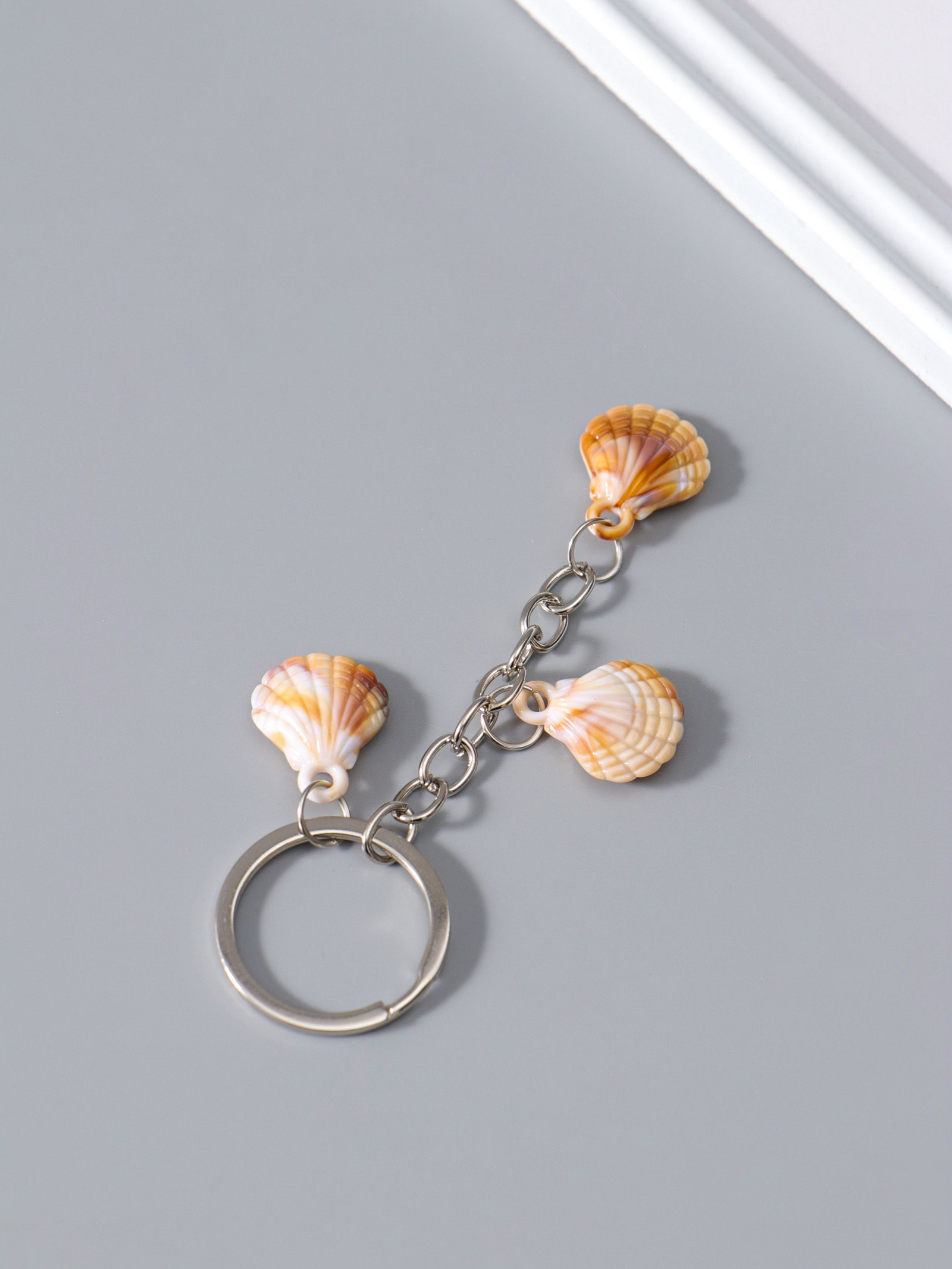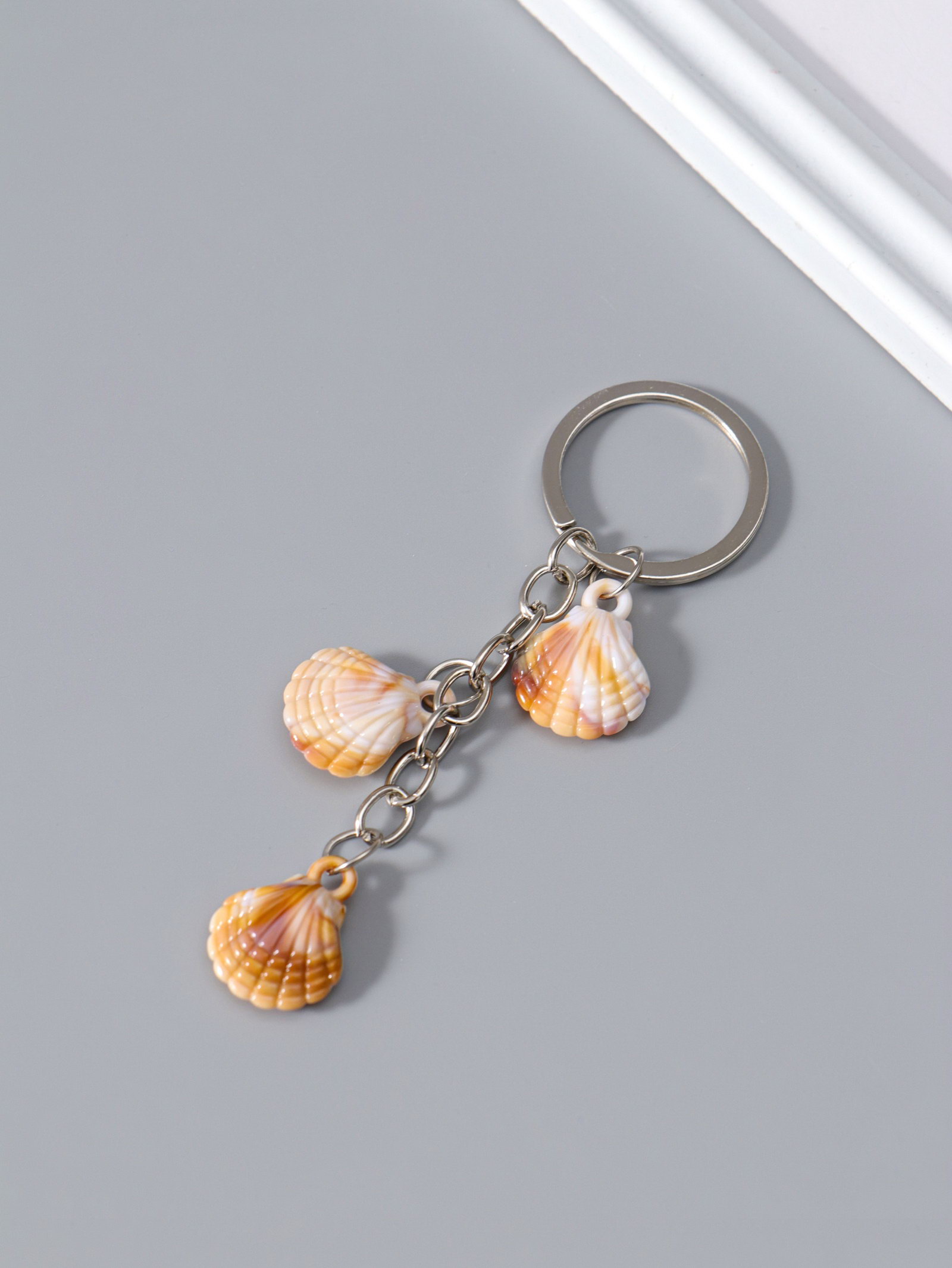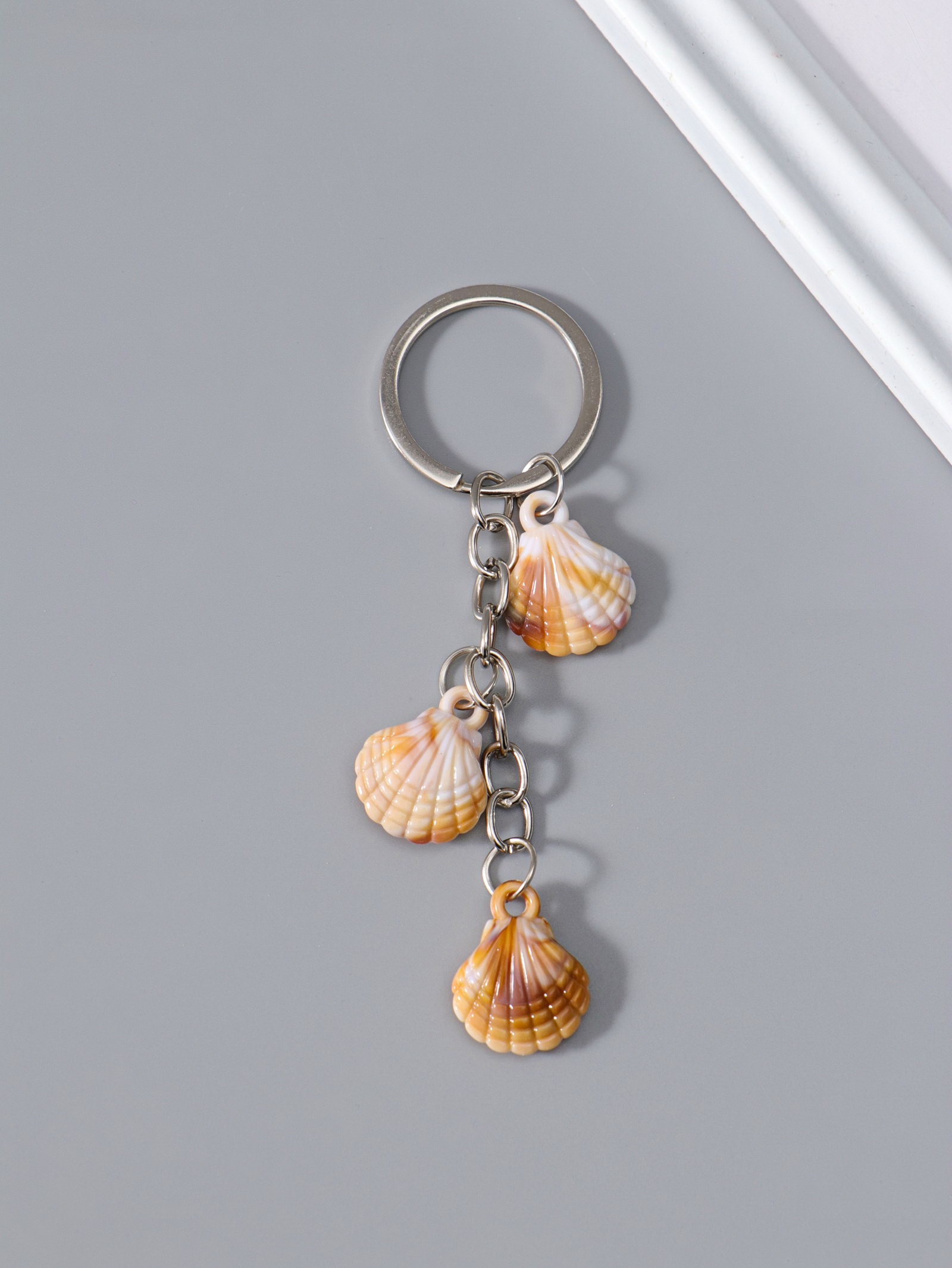 Брелок для ключей на кольце "Ракушки Гребешок", пластик, 3 ракушки, 2.4x1.8x7 см, 1.8x2.4x7 см., Китай