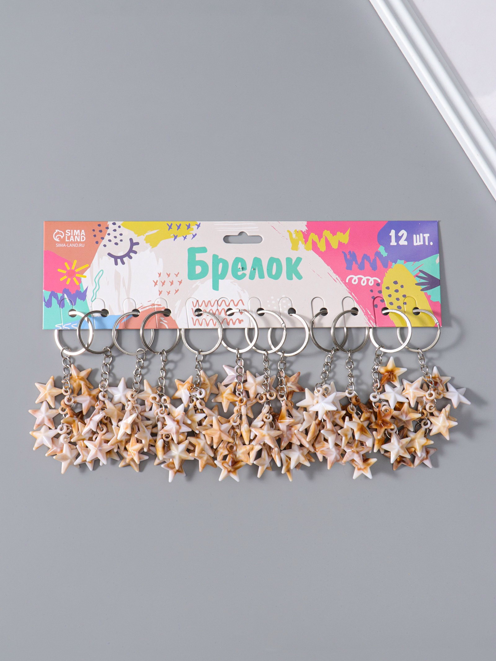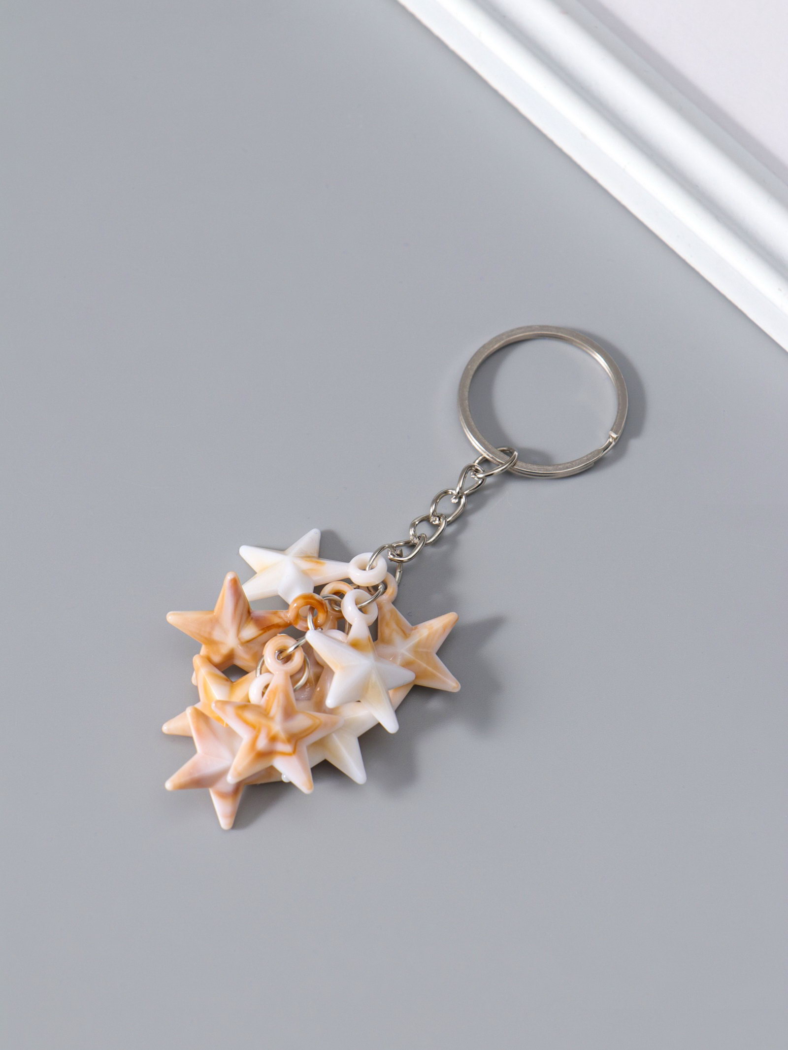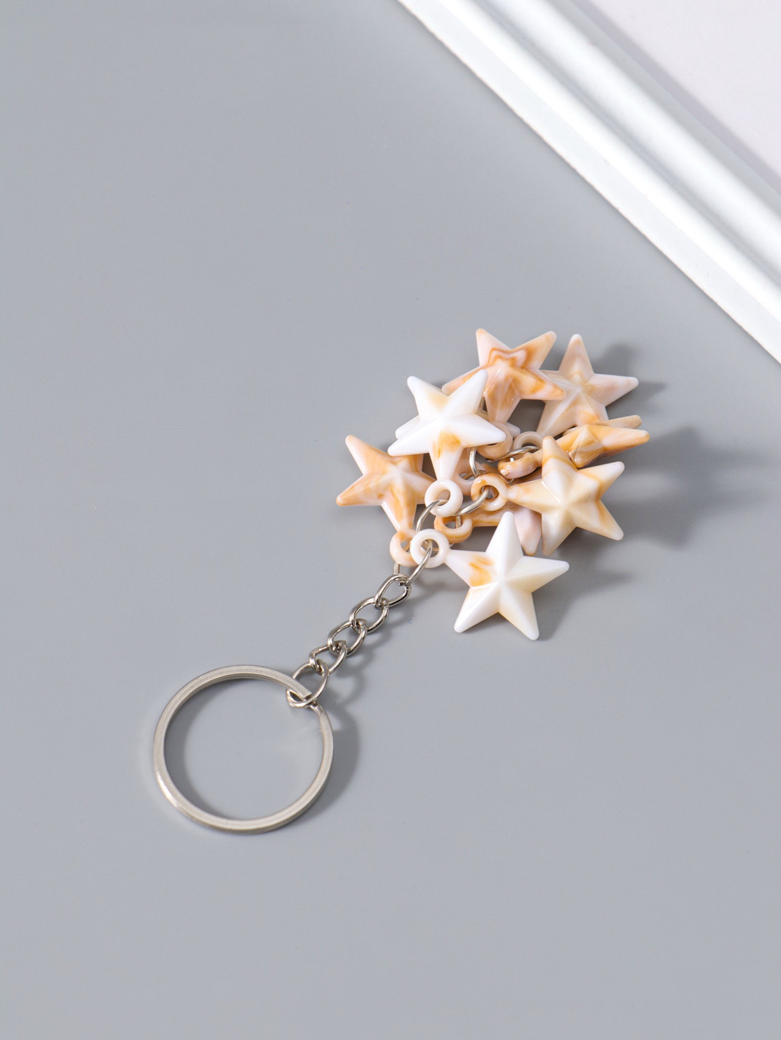 Брелок для ключей на кольце "Звёзды", пластик под песочный мрамор, 9 шт., 2x2.5x7 см, 2.5x2 см., Китай