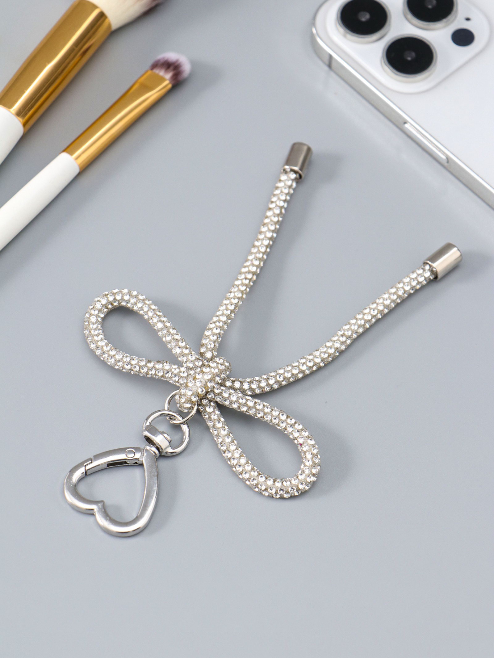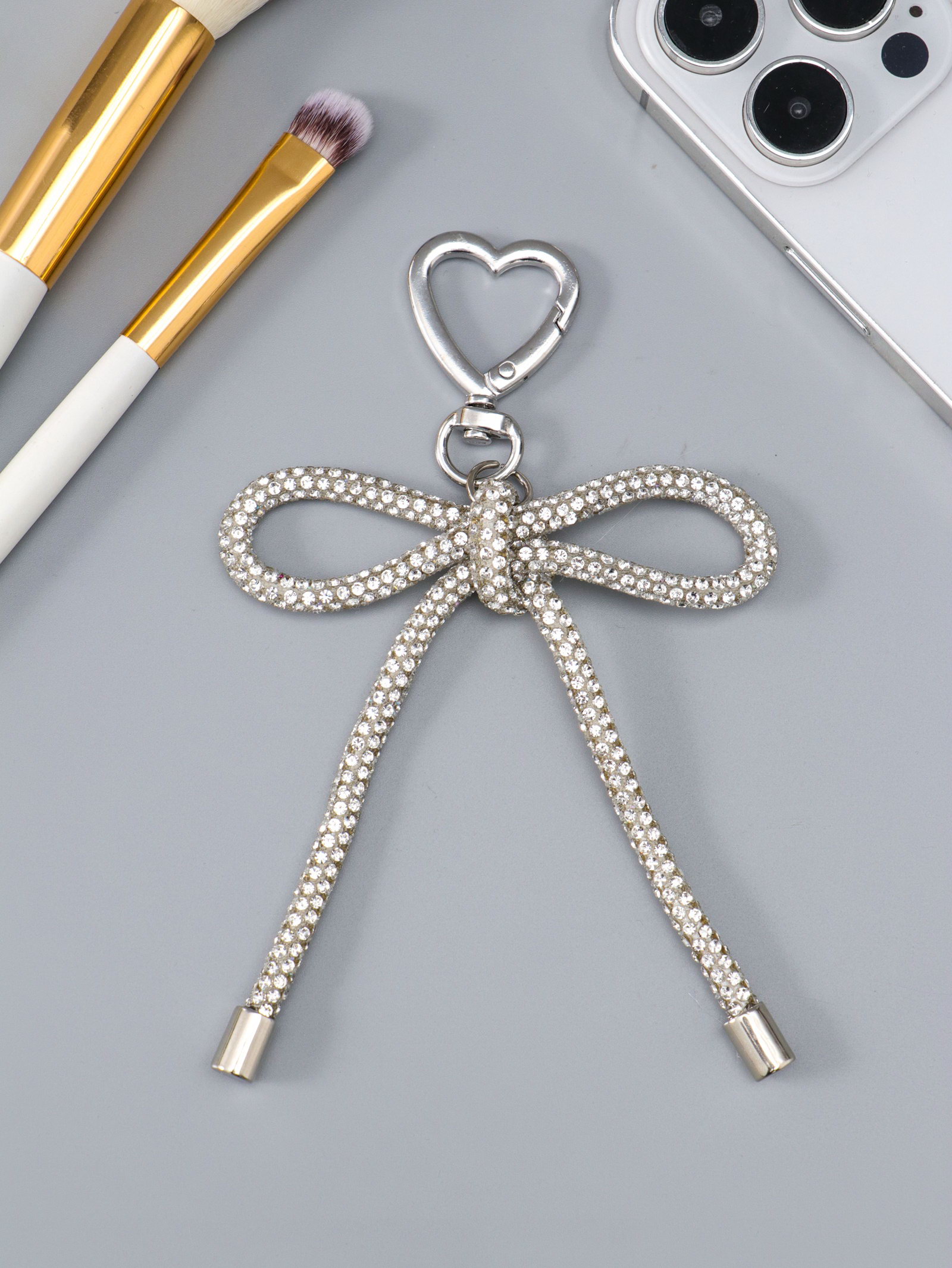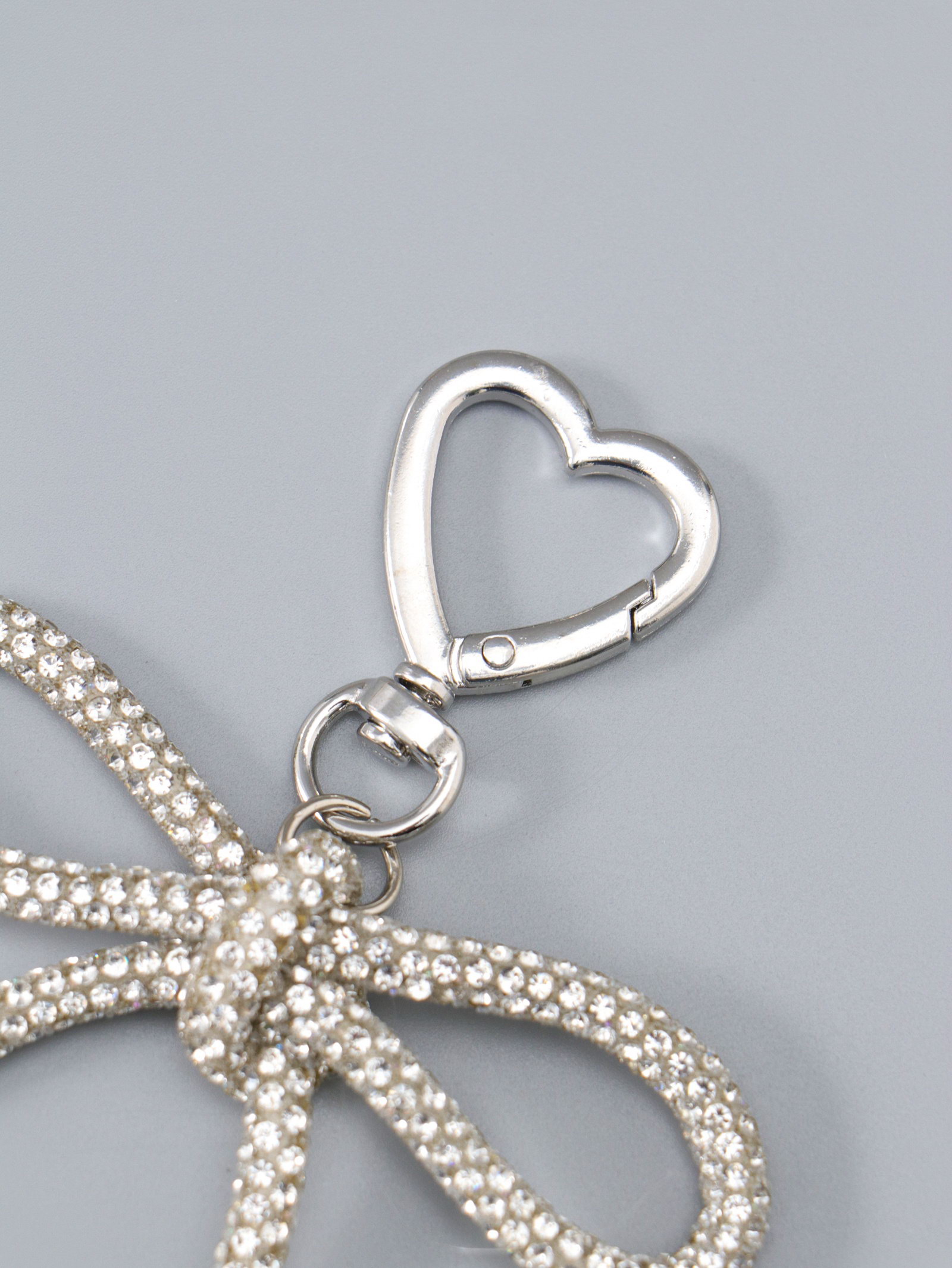 Брелок для ключей на карабине "Бант со стразами", на сумку, рюкзак, под серебро, 11x7.5x1.5 см, 7.5x11x1.5 см., Китай