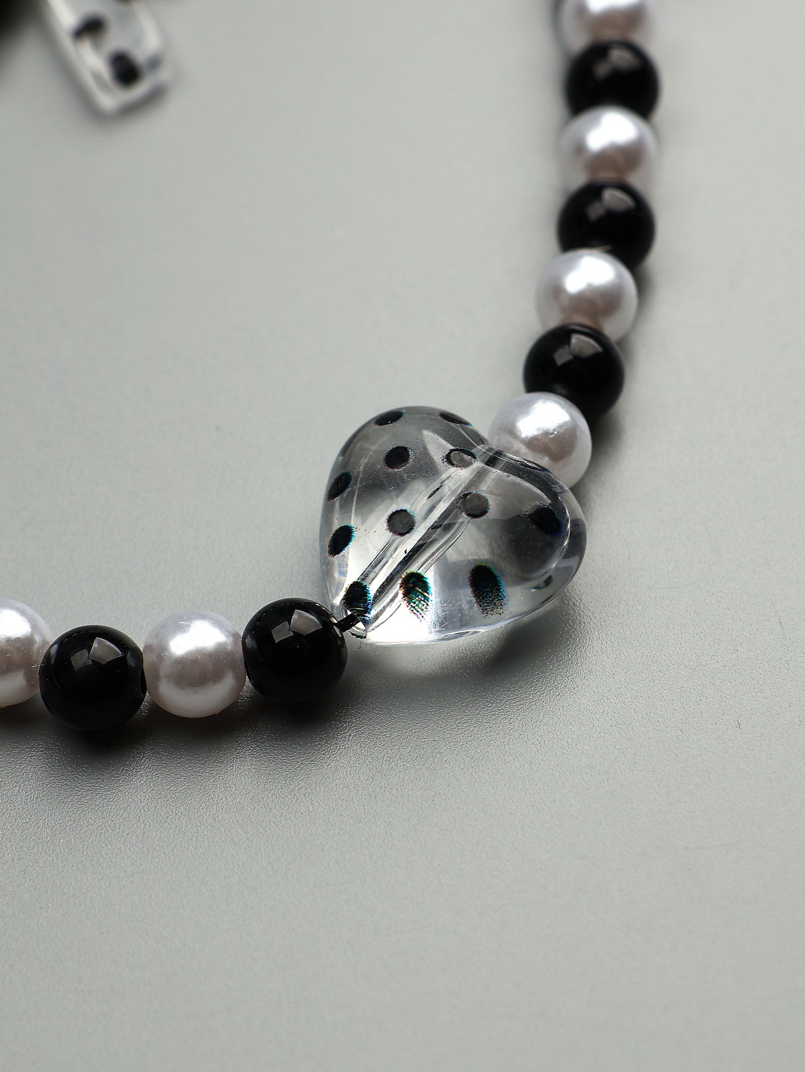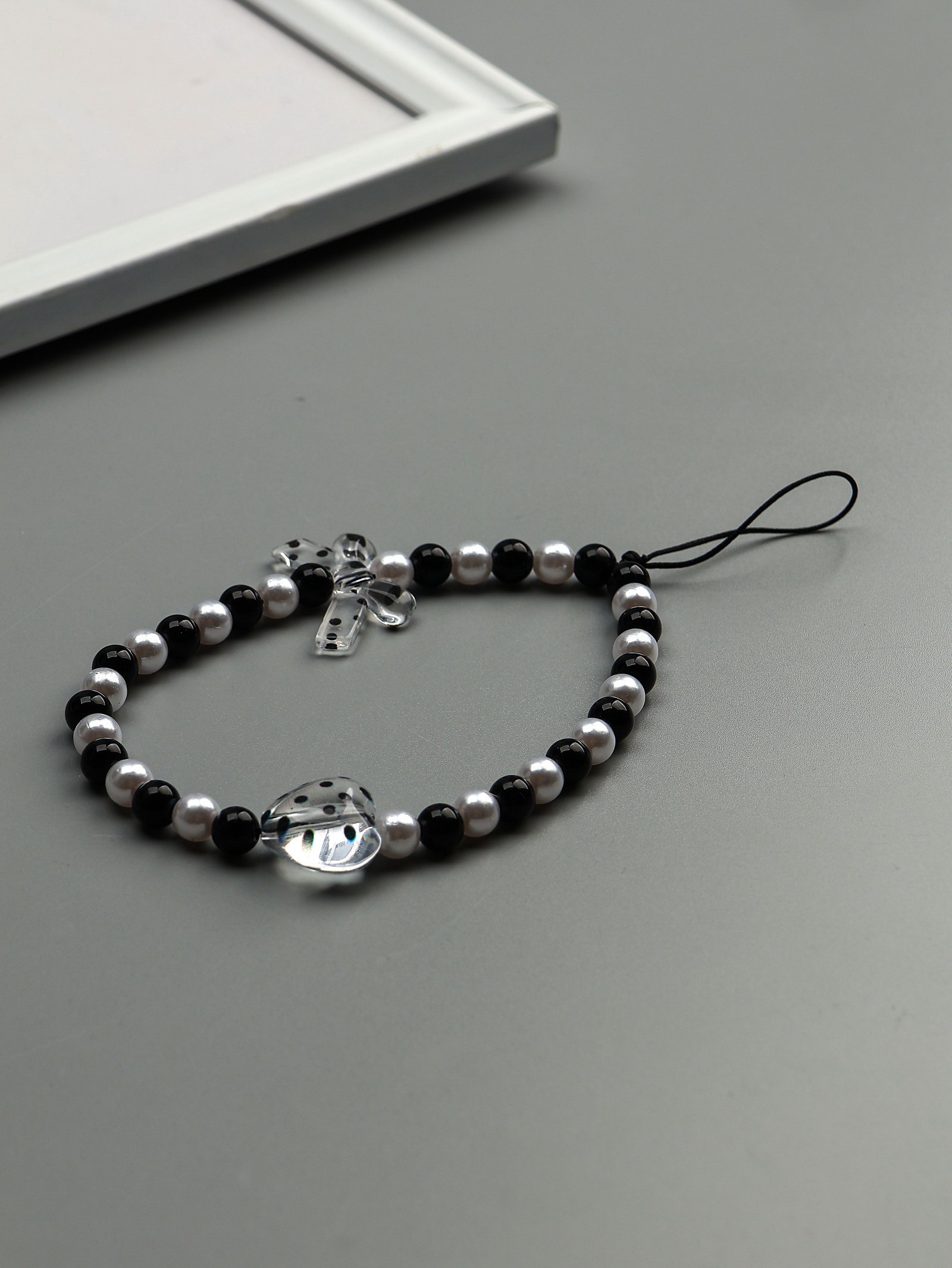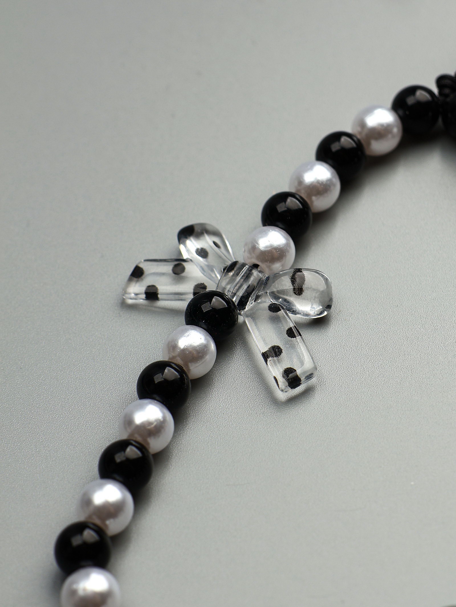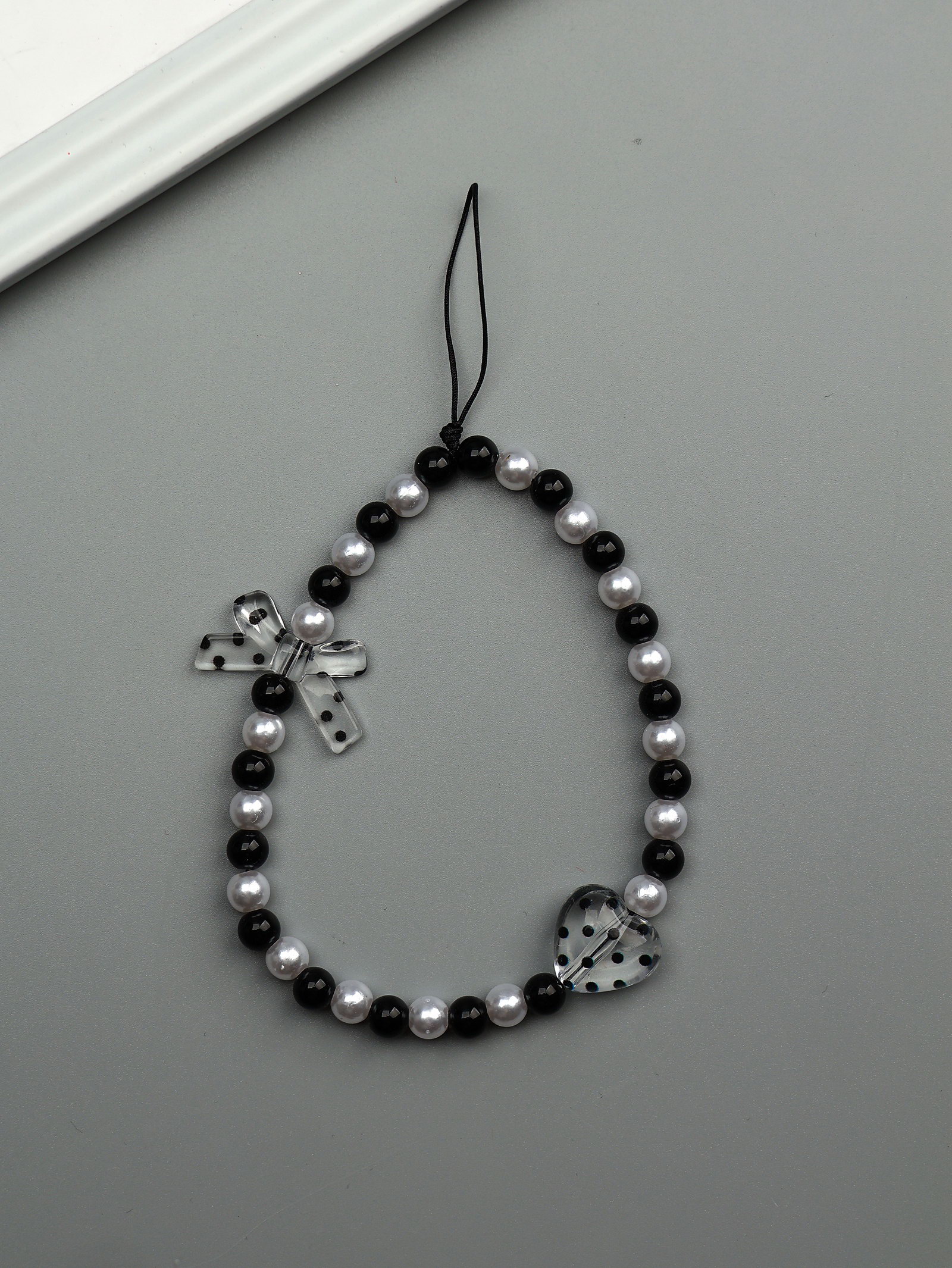 Брелок - подвеска для ключей "Бант и сердце", чёрно-белый, 14.5 см, 14.5 см., Китай