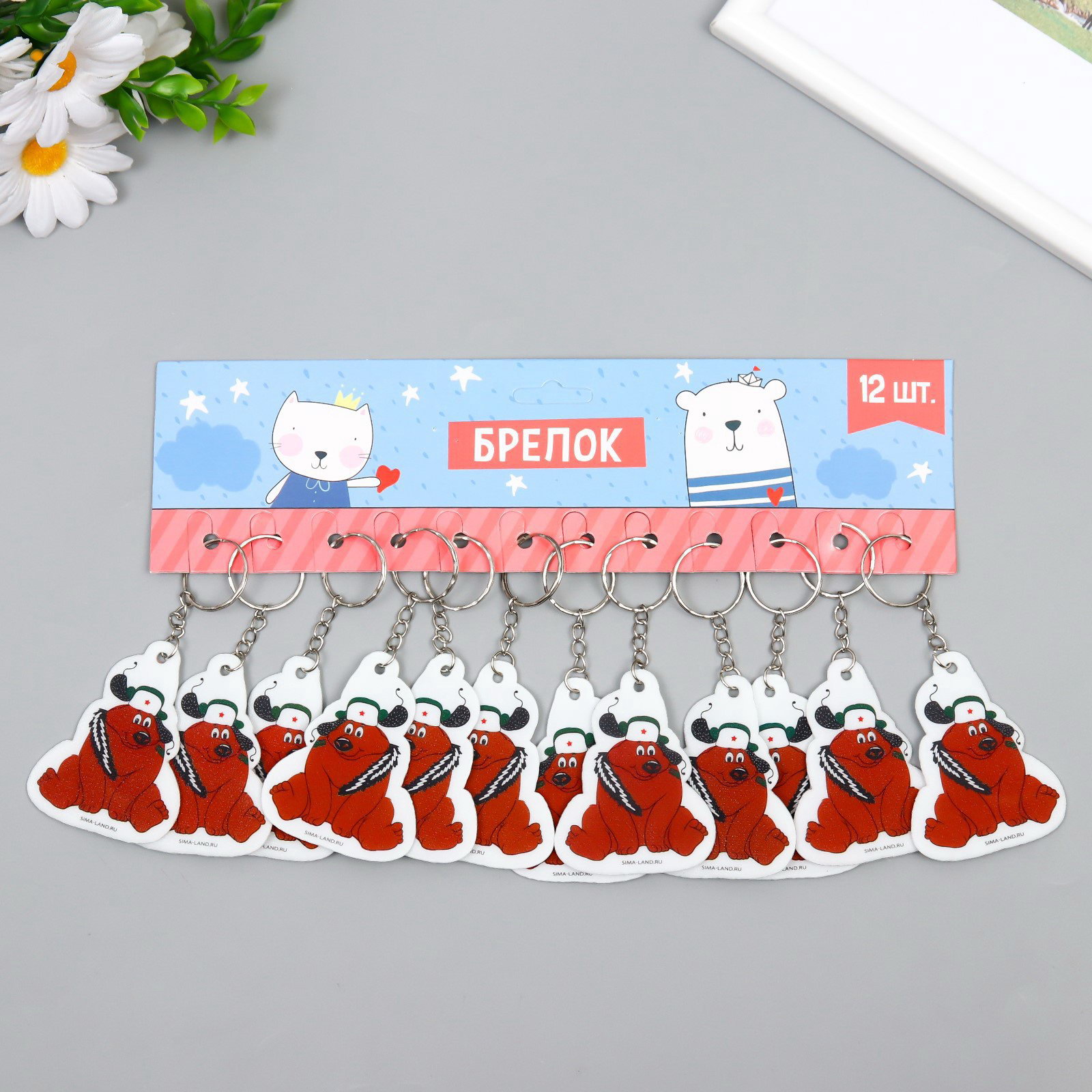 Брелок для ключей на кольце "Мишка в шапке ушанке со звездой", EVA, 5x6.5 см, 5x6.5 см., Сима-ленд, Китай