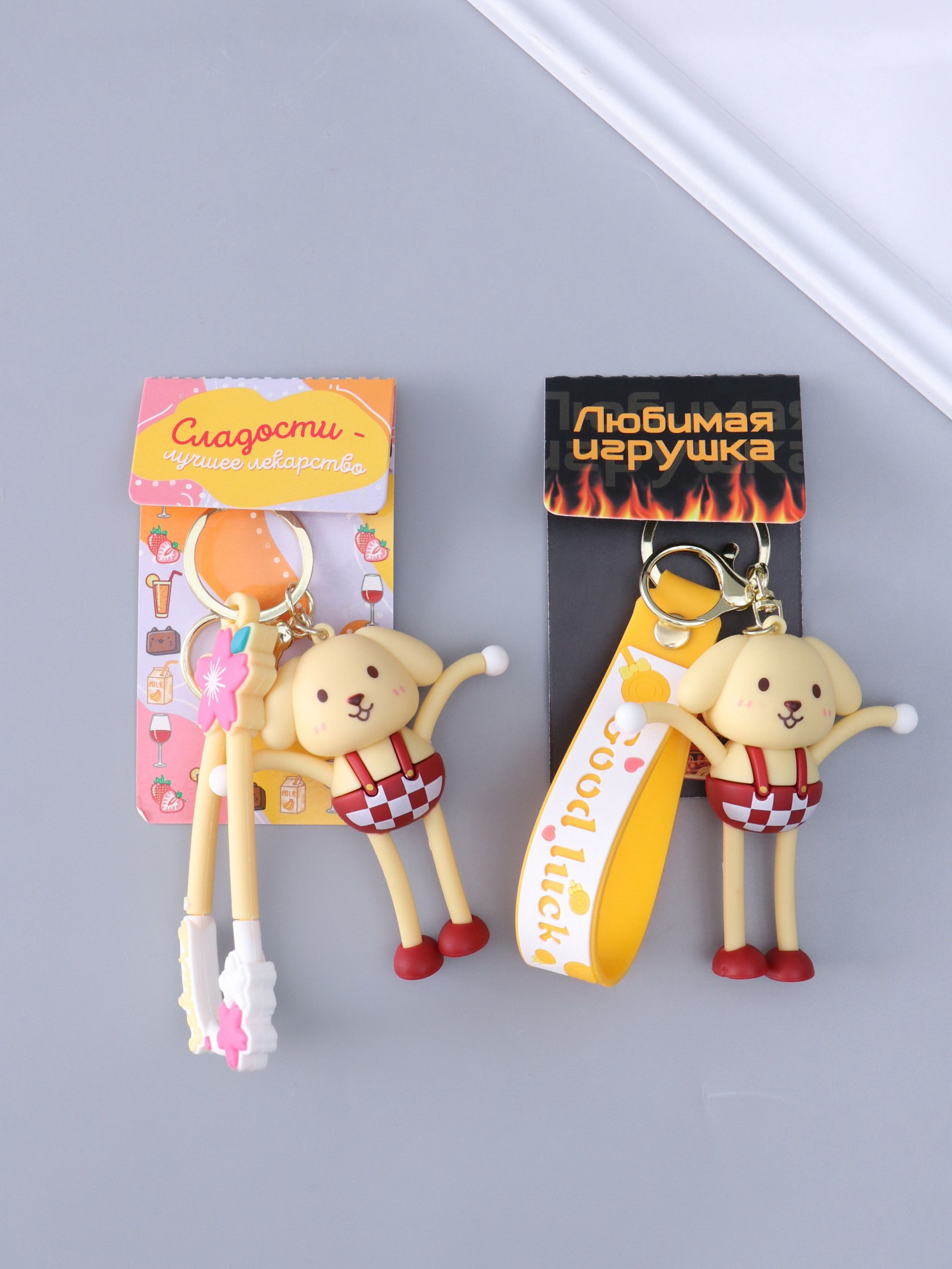Брелок для ключей на кольце с карабином, ремешком "Пёсик", резина, руки-ноги вытягиваются, 3x4.7x8.8 см, 4.7x3x8.8 см., Китай