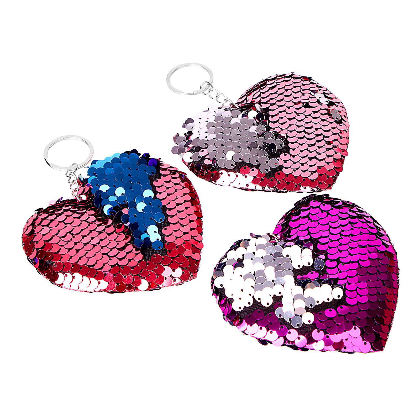 Брелок для ключей на кольце "Сердце", хамелеон с пайетками, МИКС, 9x9x1 см., Китай