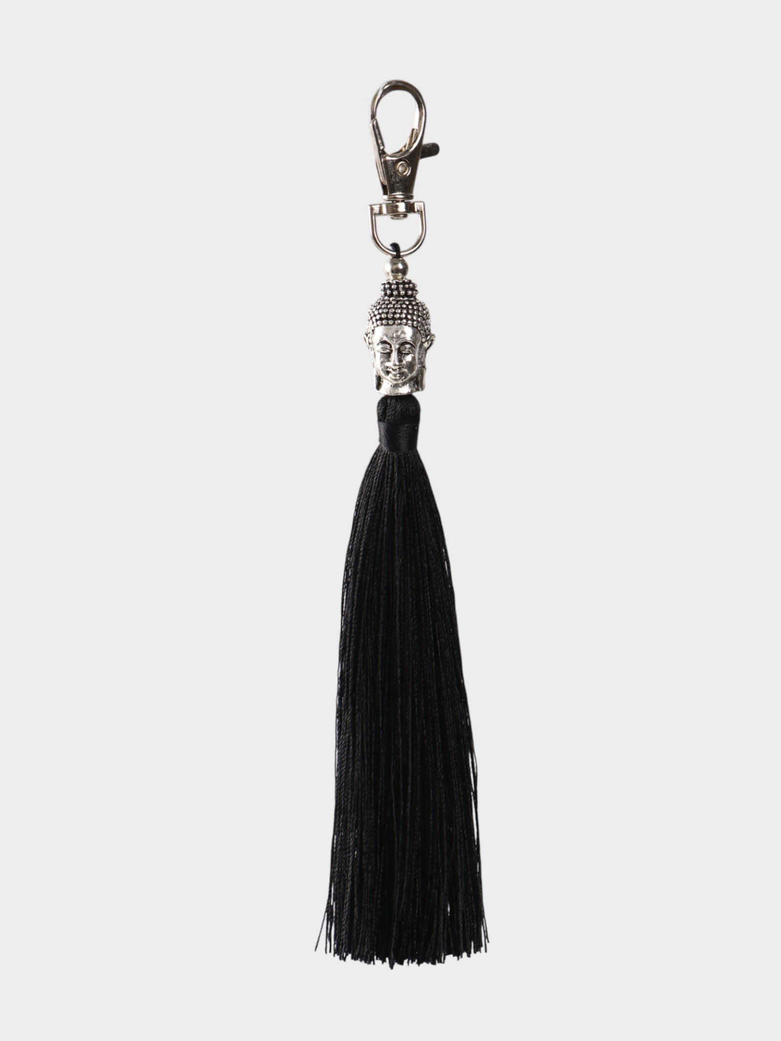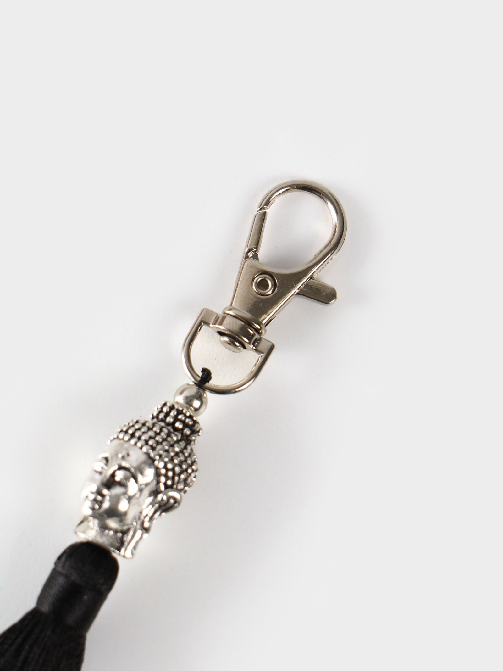 Брелок-кисточка "Будда" 17 см, цв. чёрный, серебристый, 1.5x17x1.5 см., Индонезия