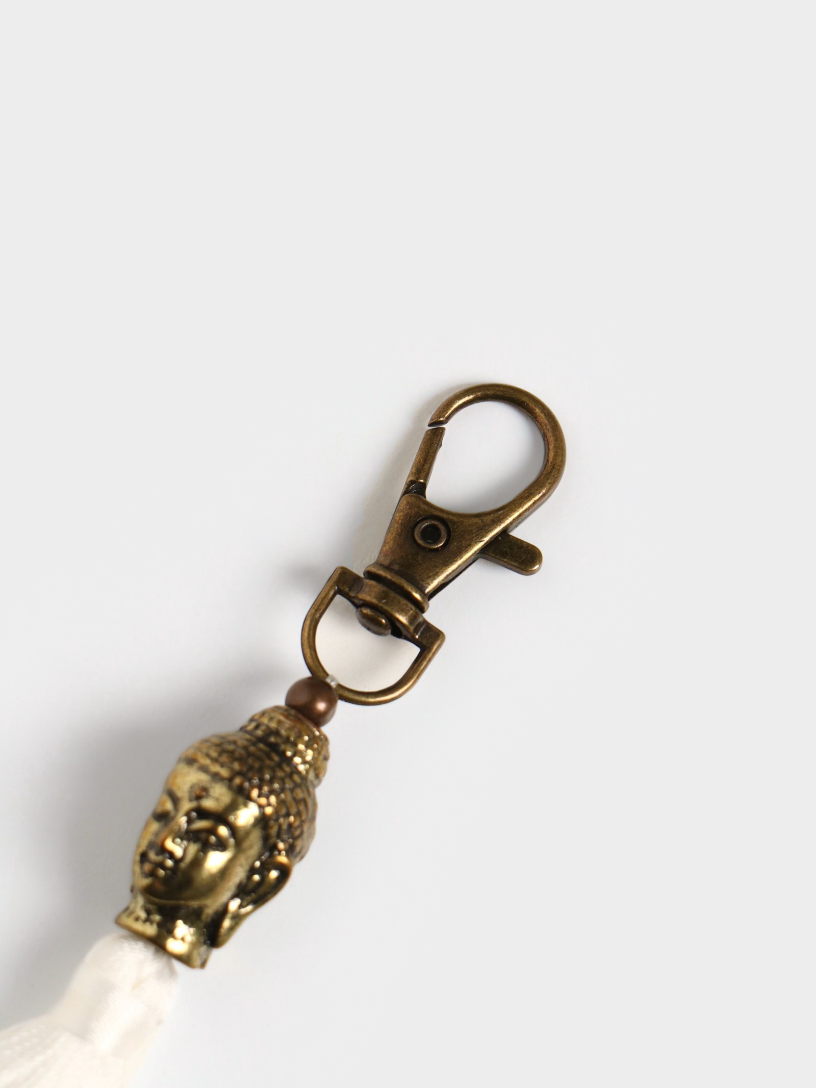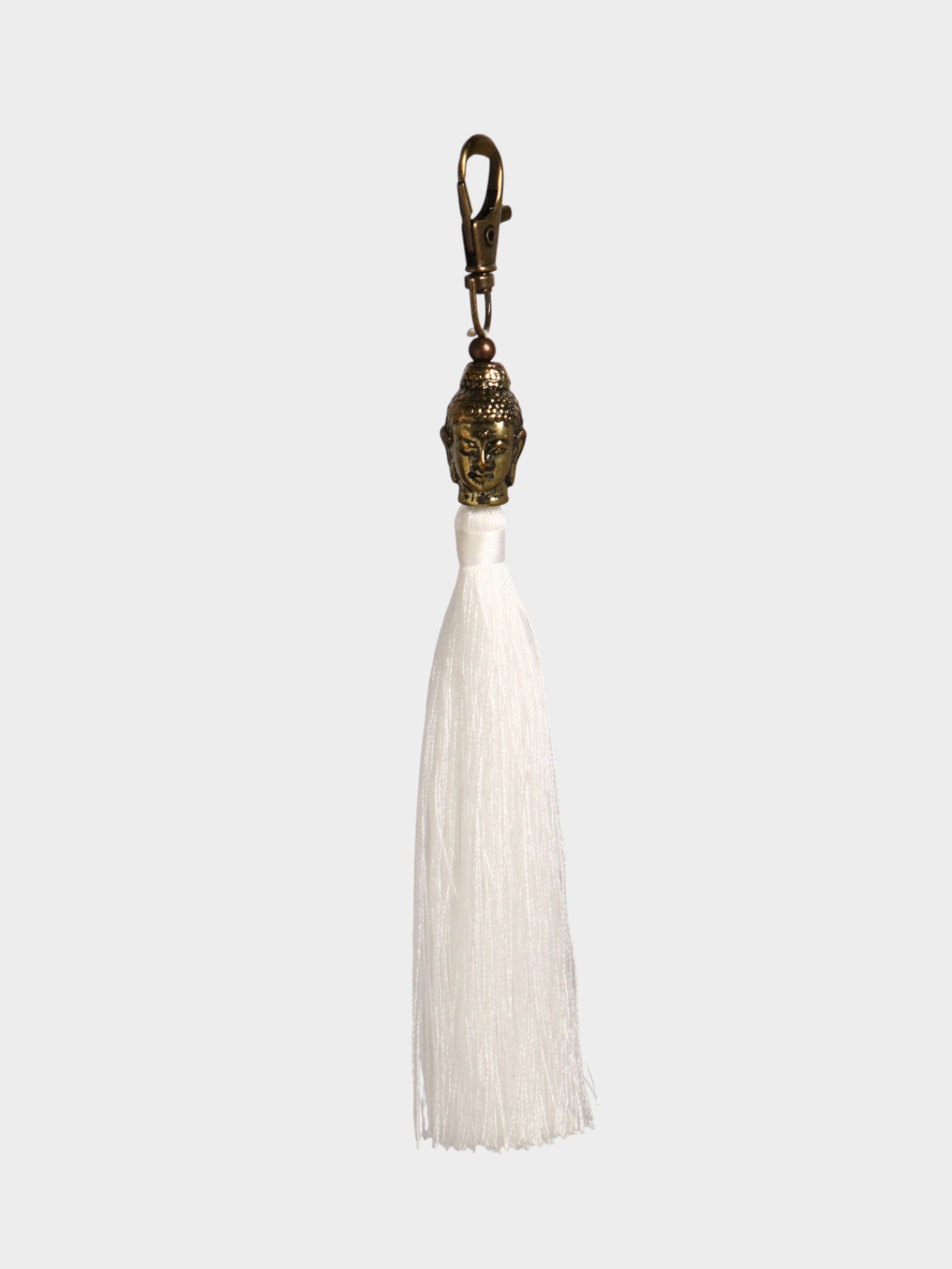 Брелок-кисточка "Будда" 17 см, цв. белый, золотистый, 1.5x17x1.5 см., Индонезия